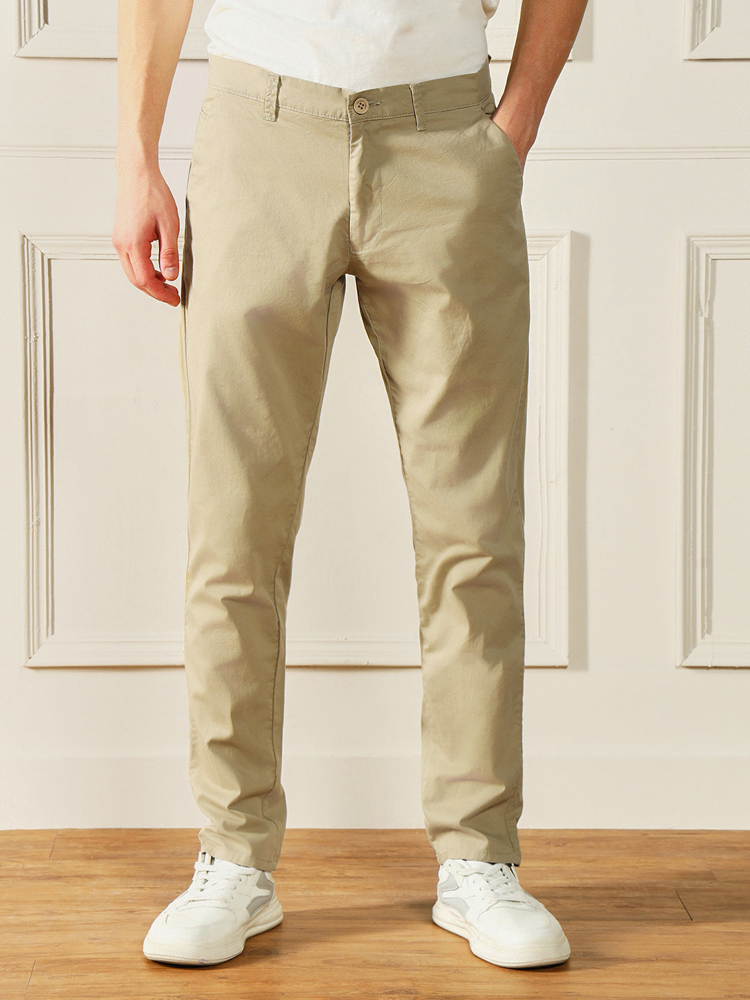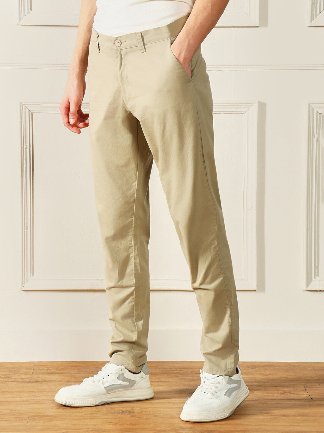 Men's Light Khaki Cotton Lycra Solid Stretchable Relaxed fit Cargo Trousers