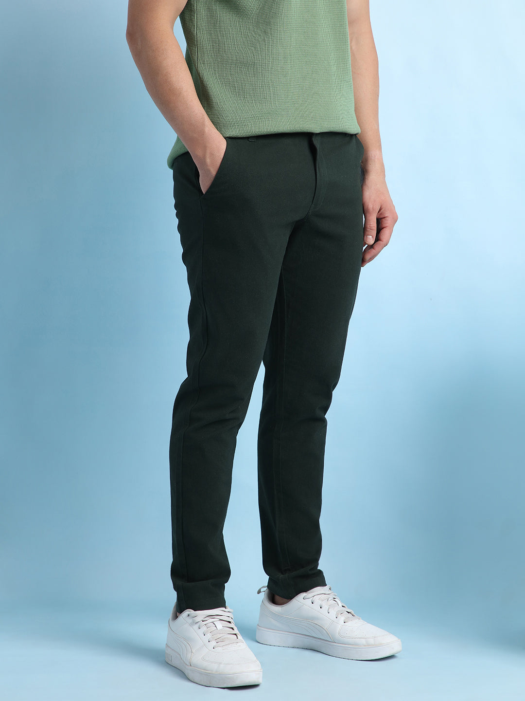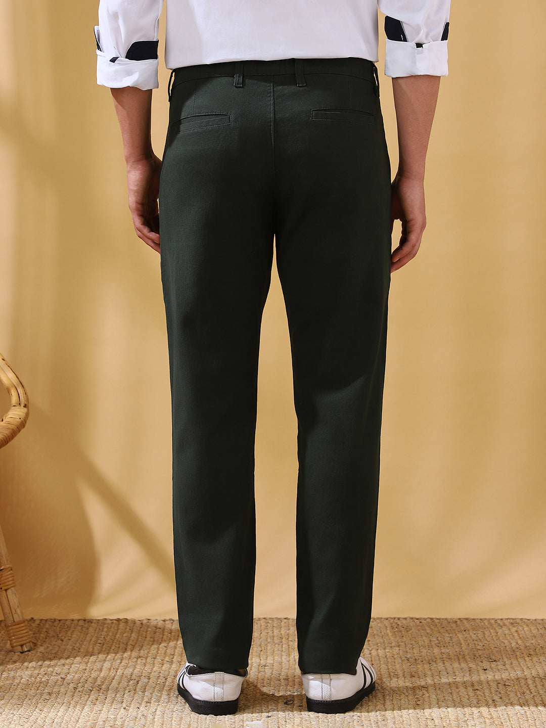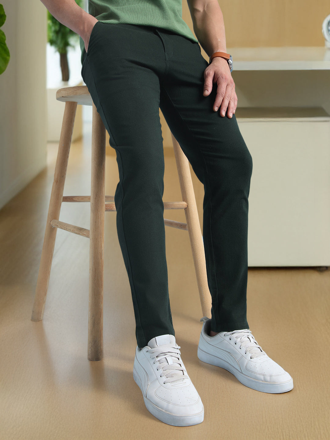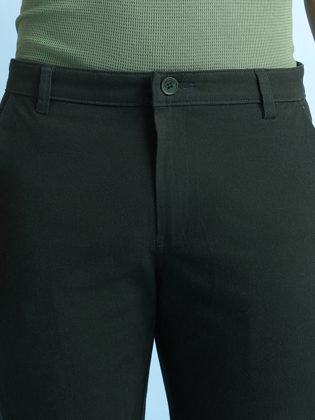 Men's Sage Green Cotton Lycra Solid Stretchable Relaxed fit Cargo Trousers