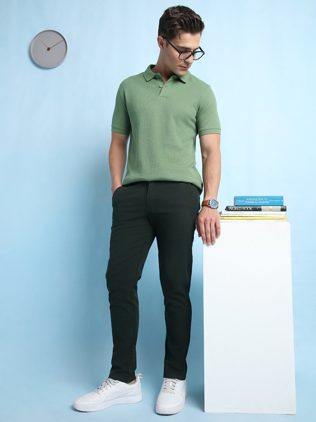 Men's Solid Dusty Green Slim Fit Casual Shirt With Spread Collar