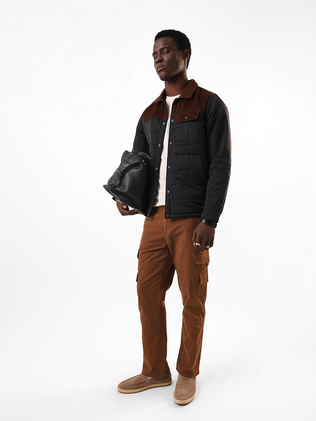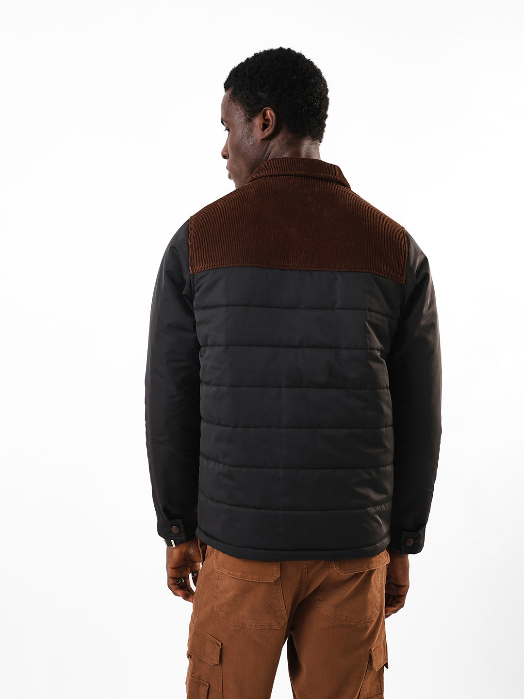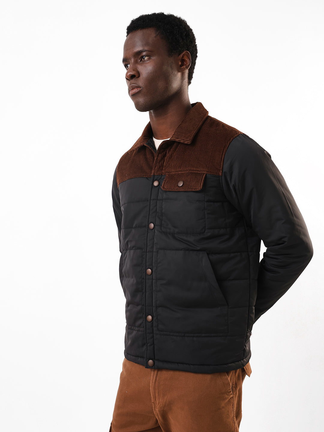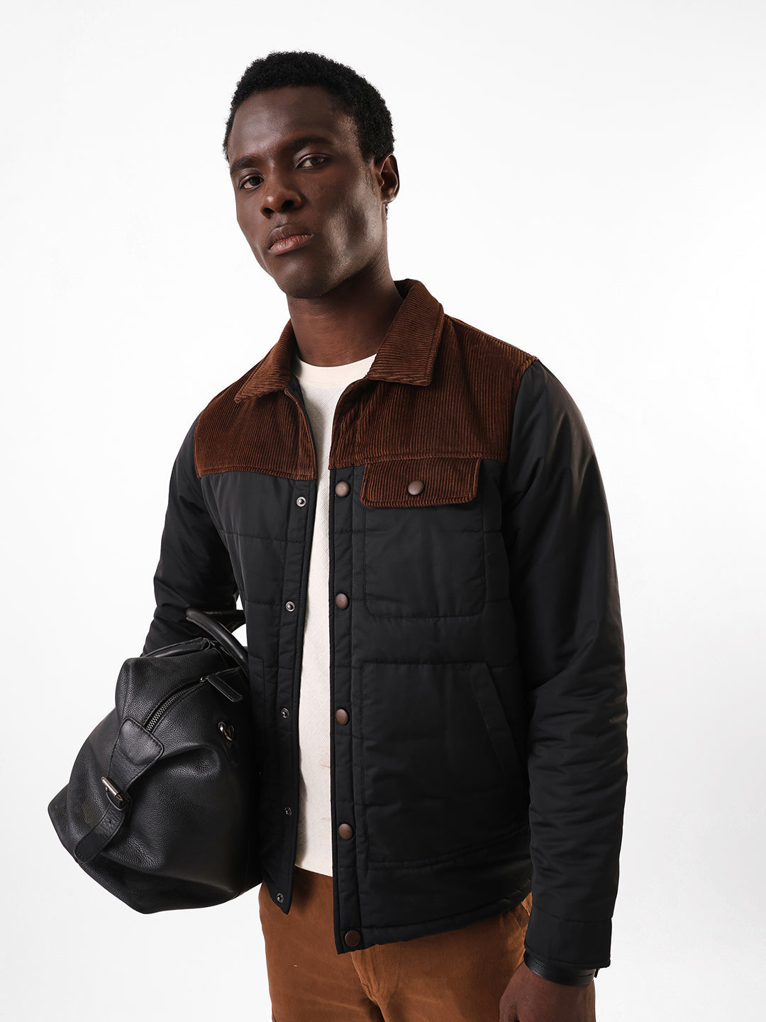 Men's Black & Brown Colourblocked Spread Collar Full Sleeves Puffer Jacket