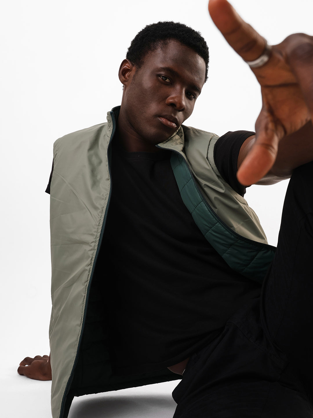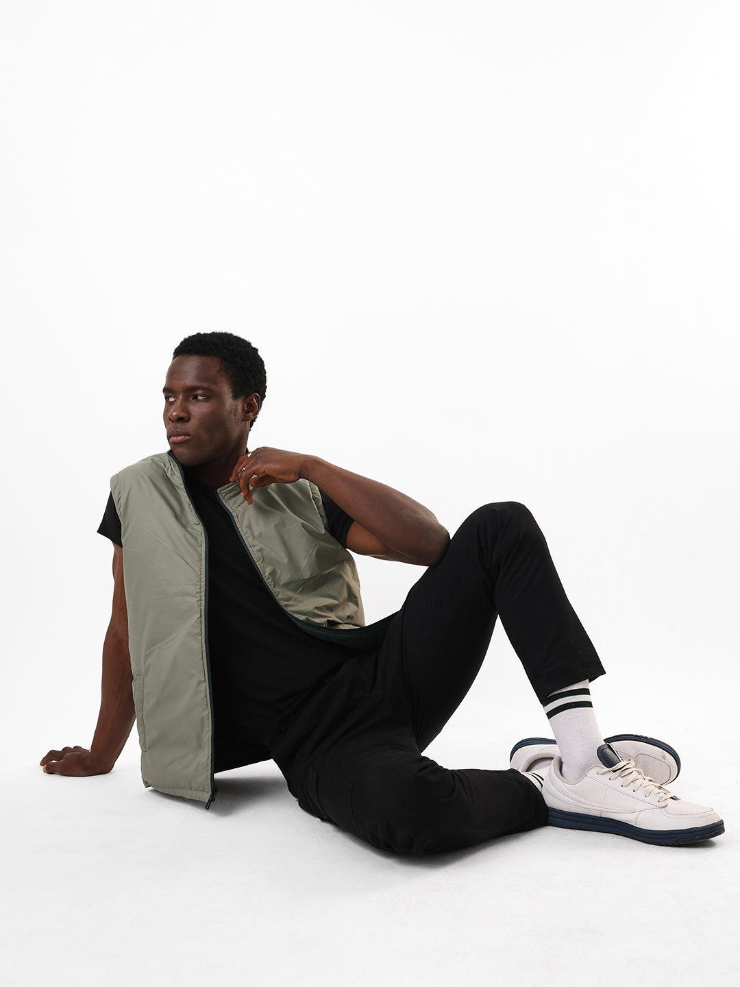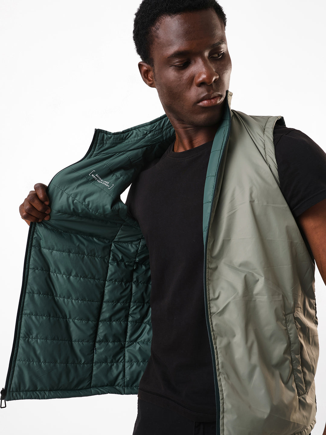 Men's Solid Mock Neck Sleeveless Reversible Gilet Jacket