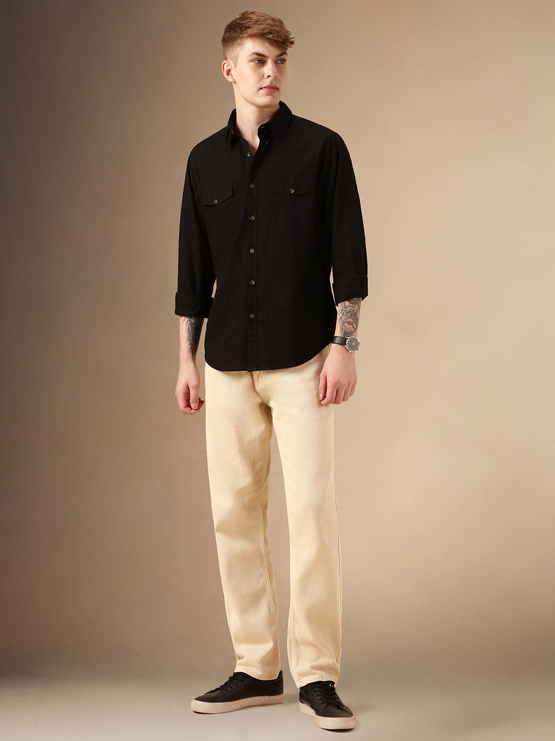 Men's Black Solid Spread Collar Full Sleeves Shirt