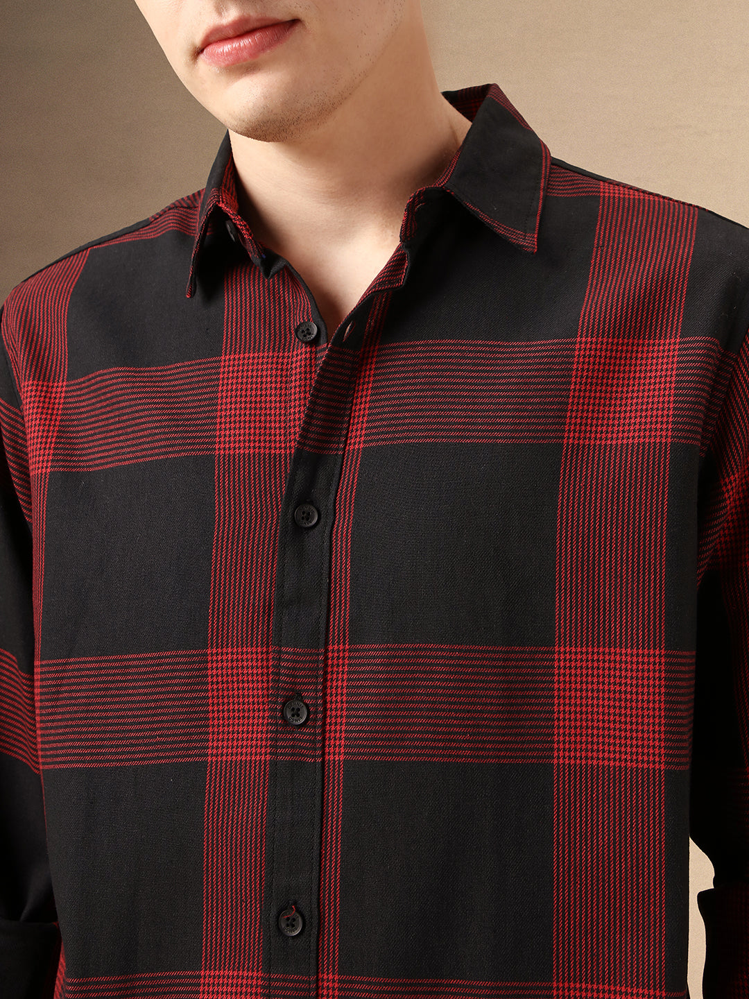 Men's Black Checks Spread Collar Full Sleeves Relaxed Fit Shirt