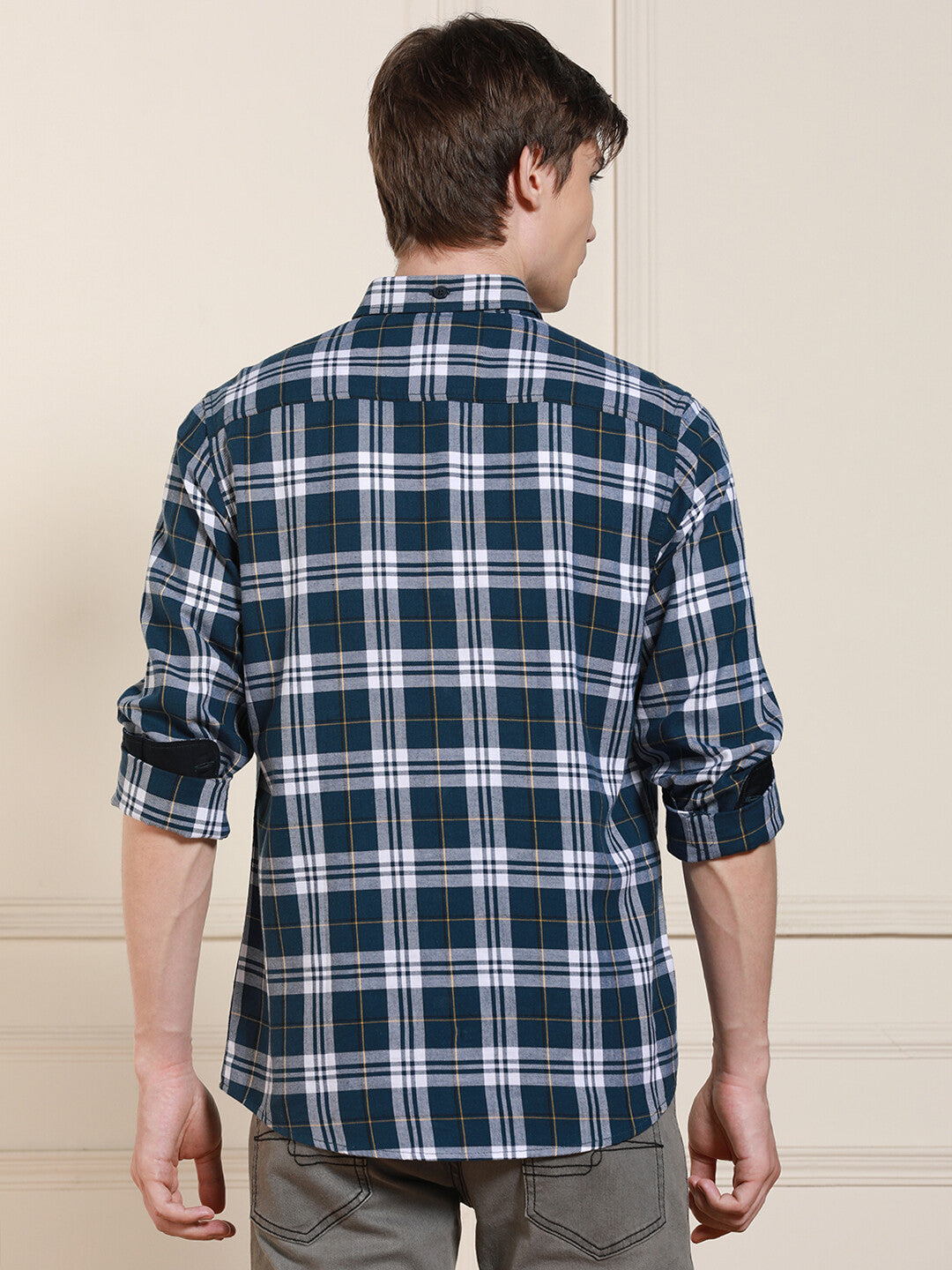 Men's Spread Collar Slim Fit Tartan checks Opaque Cotton Casual Shirt