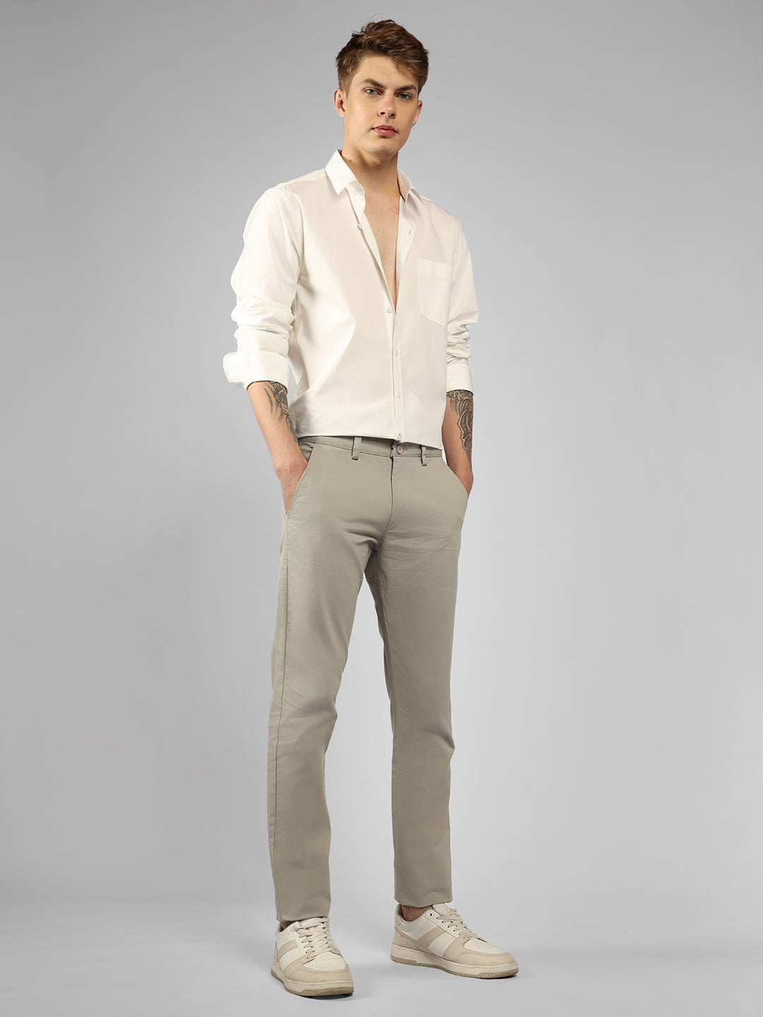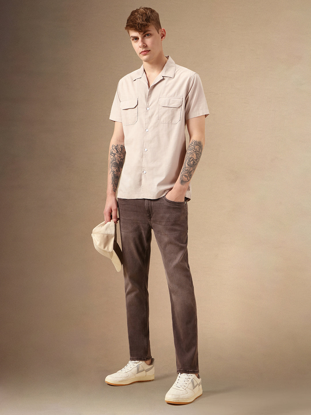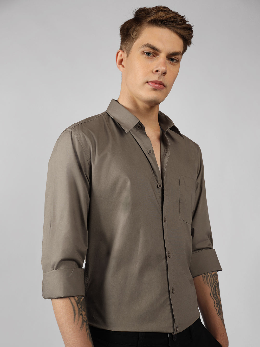Men's Taupe Solid Spread Collar Full Sleeve Regular Fit Shirt