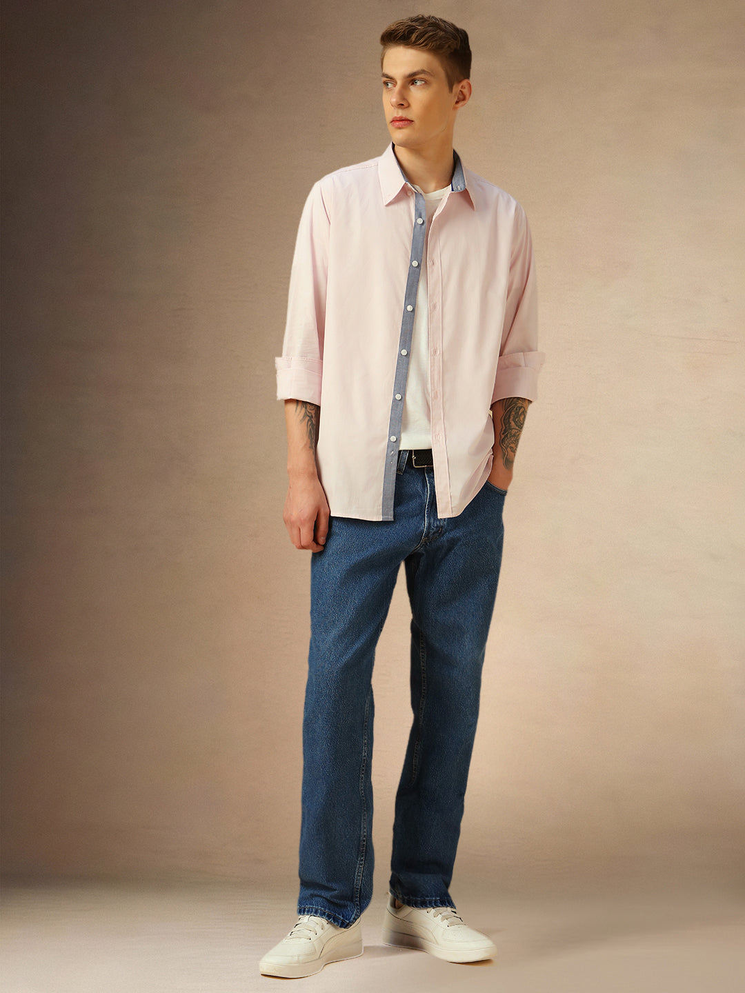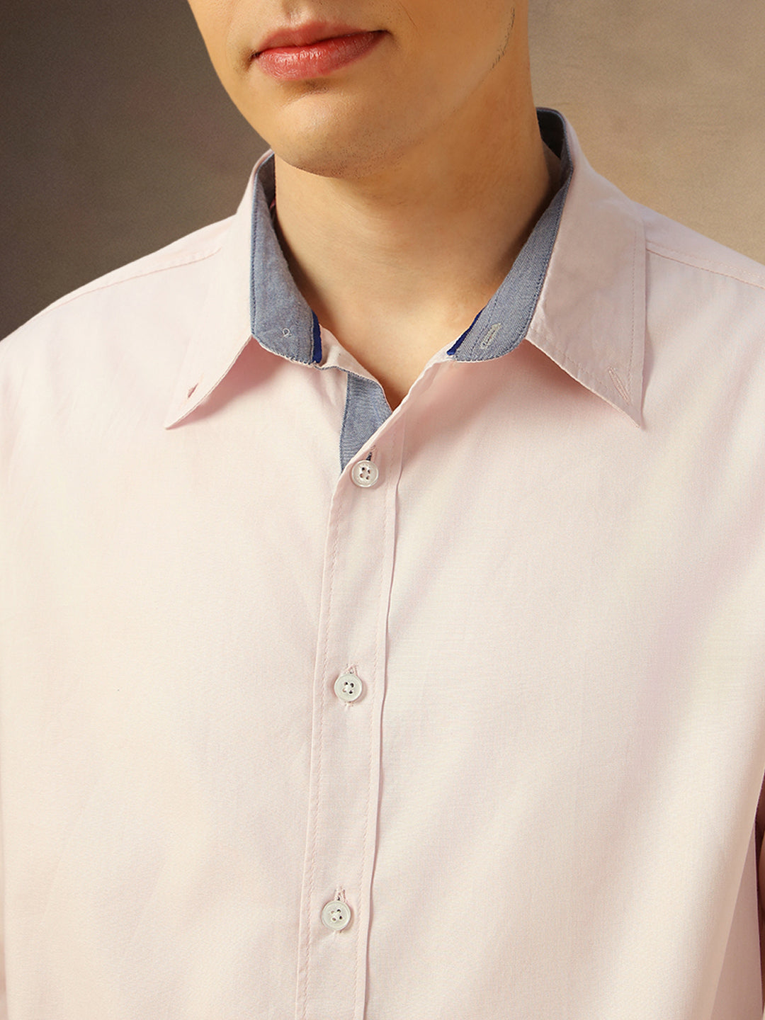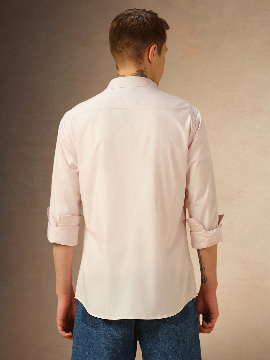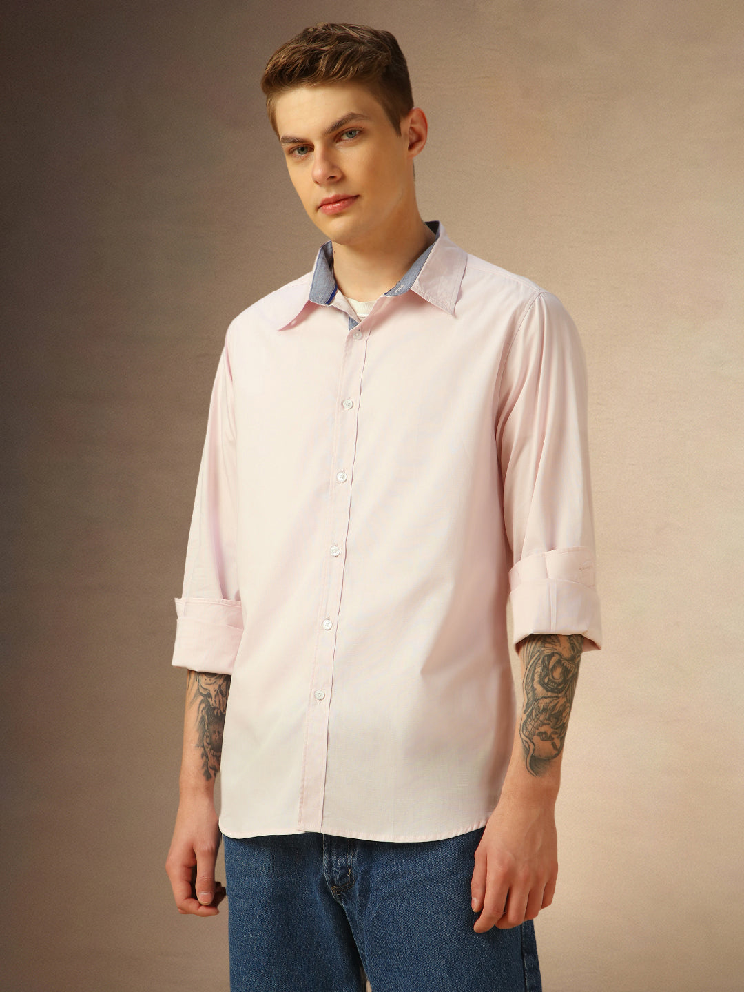 Men's Fresh Pink Solid Button Down Collar Full Sleeves Shirt