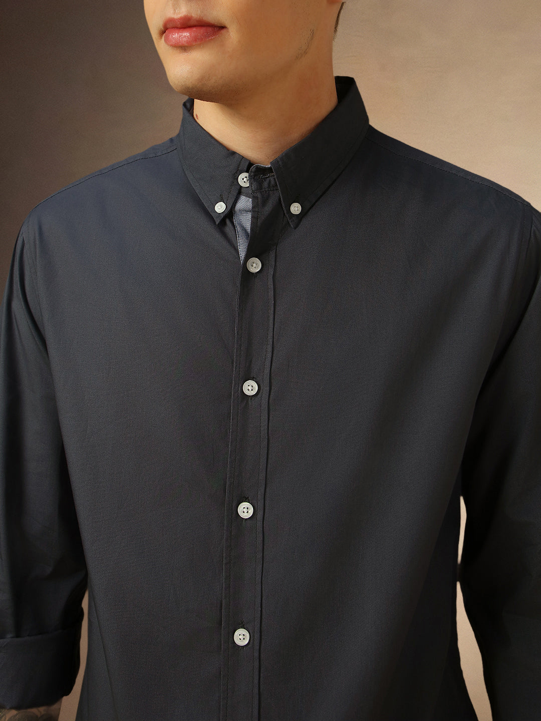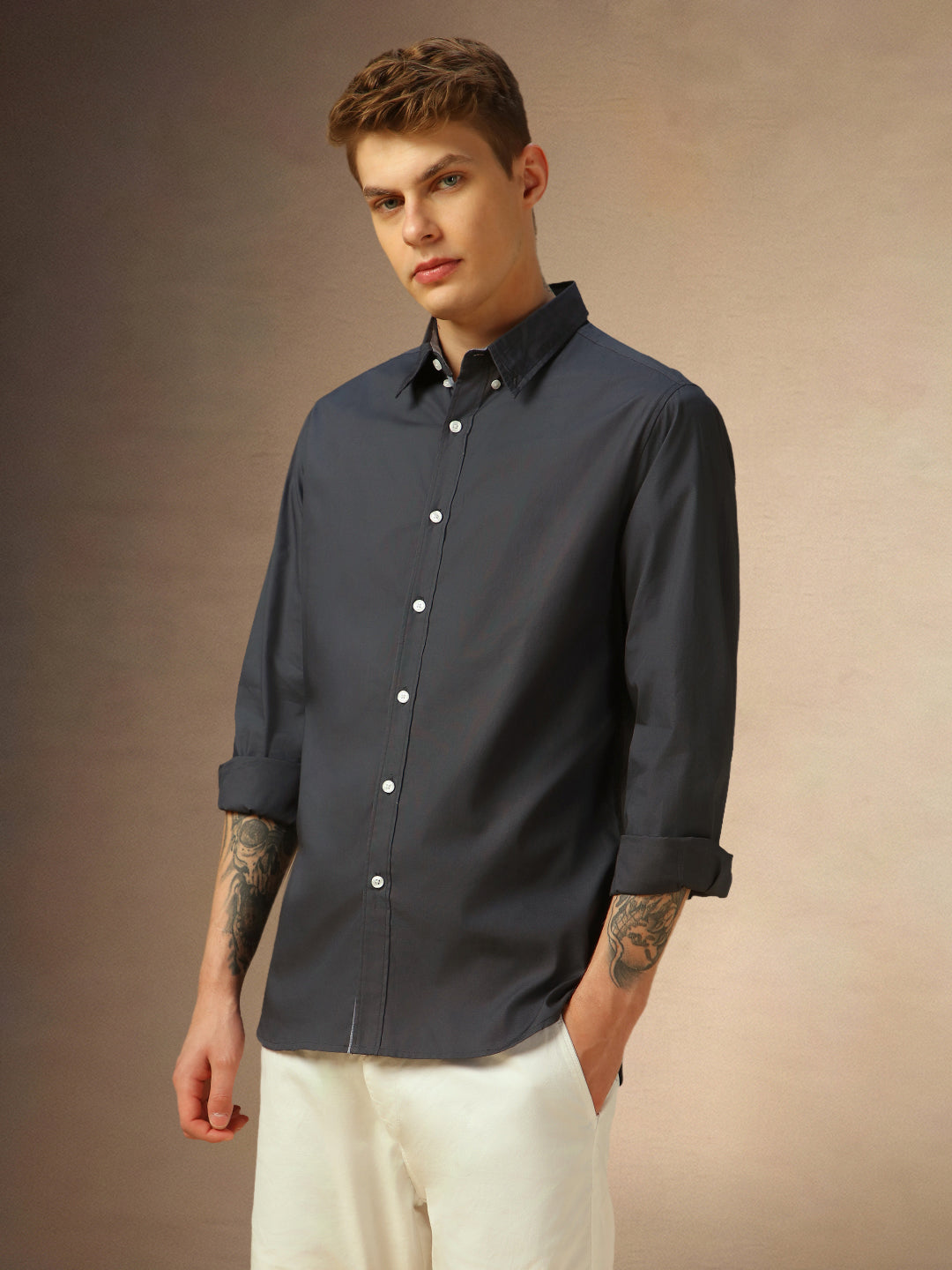 Men's Grey Solid Button Down Collar Full Sleeves Shirt