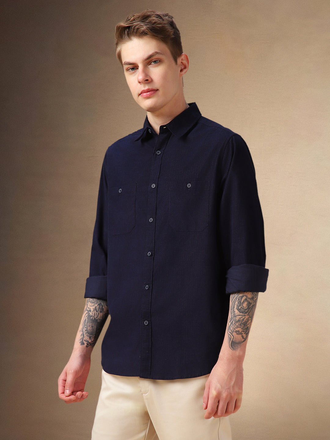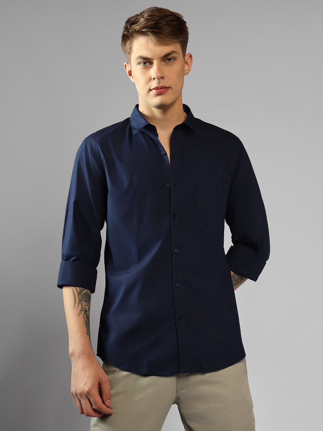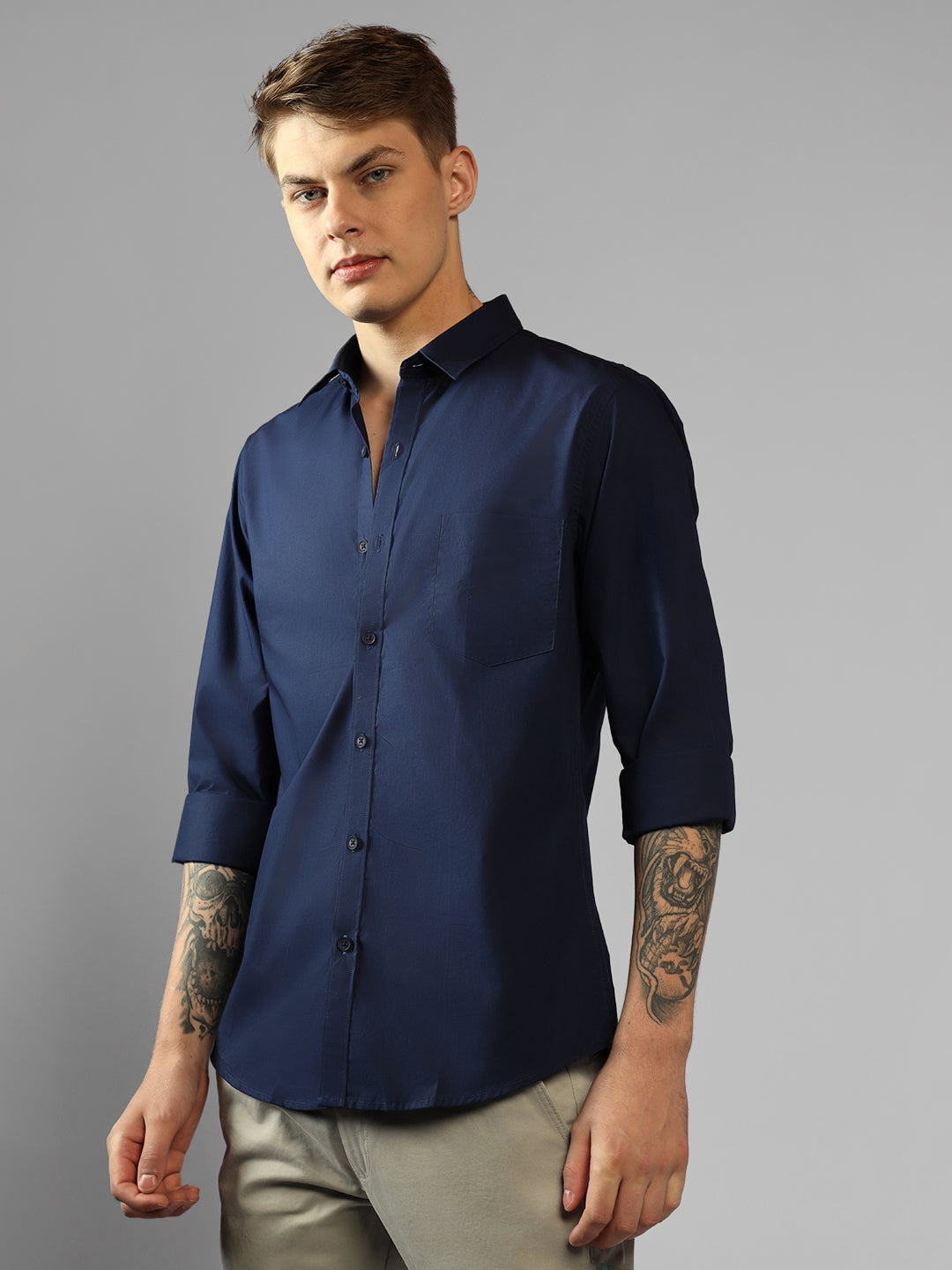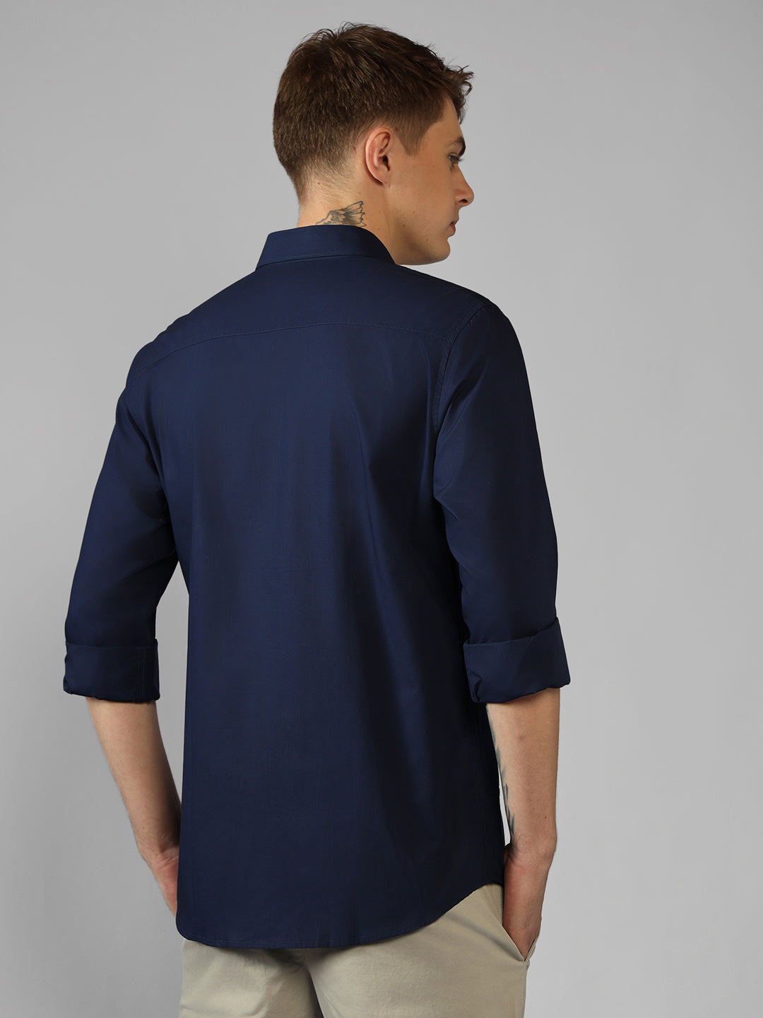 Men's Navy Solid Spread Collar Full Sleeve Regular Fit Shirt
