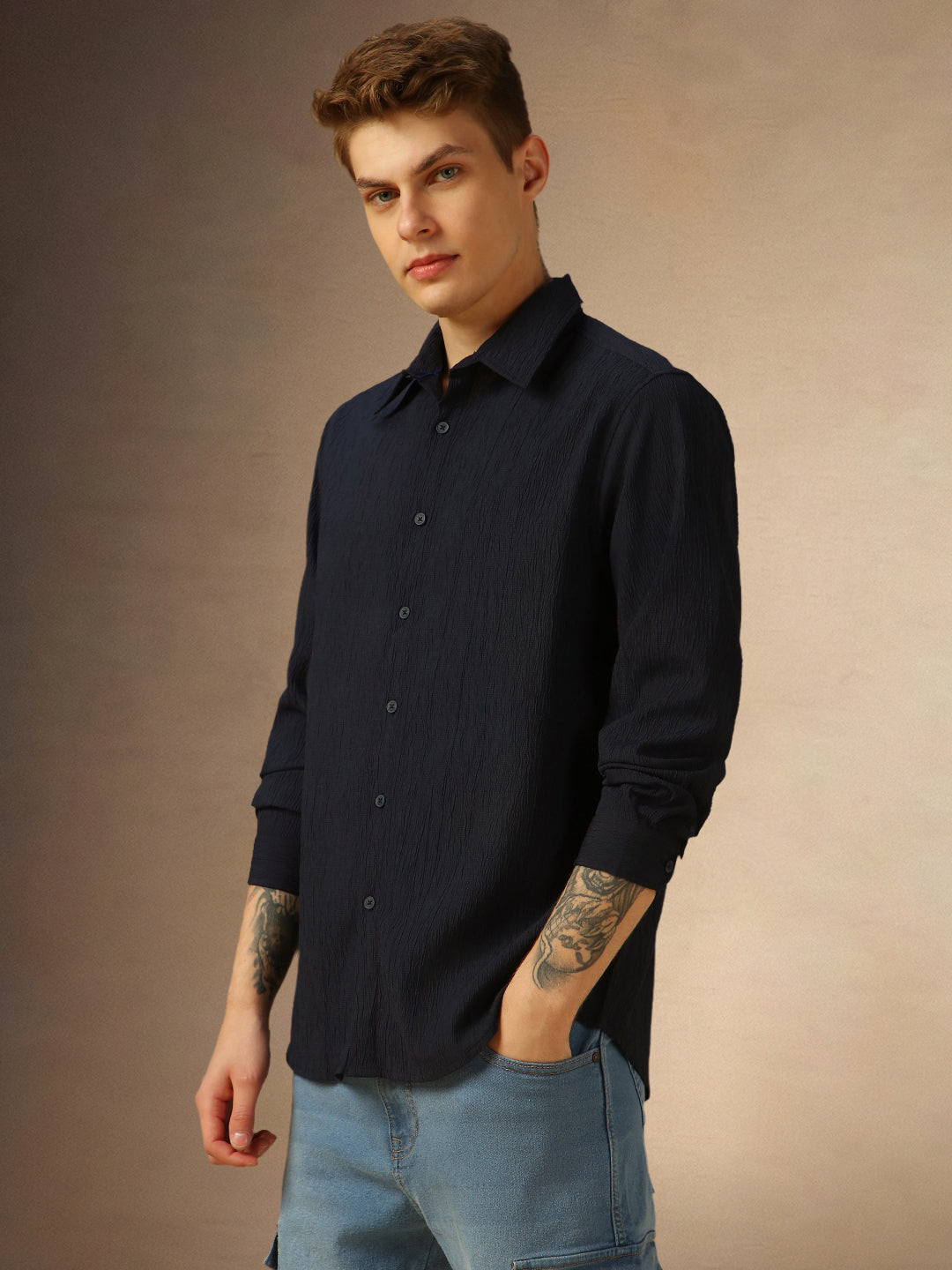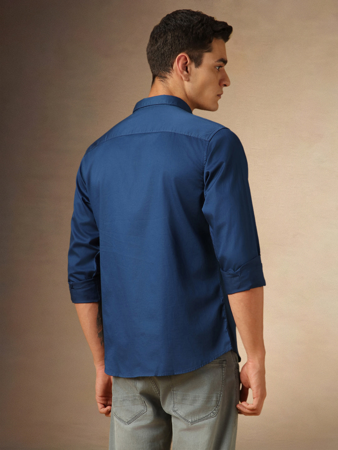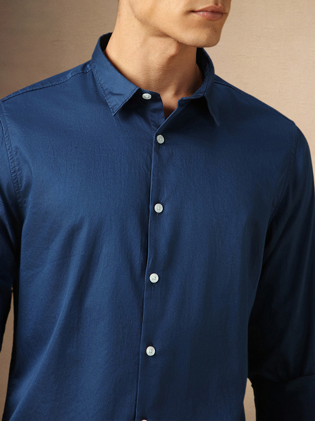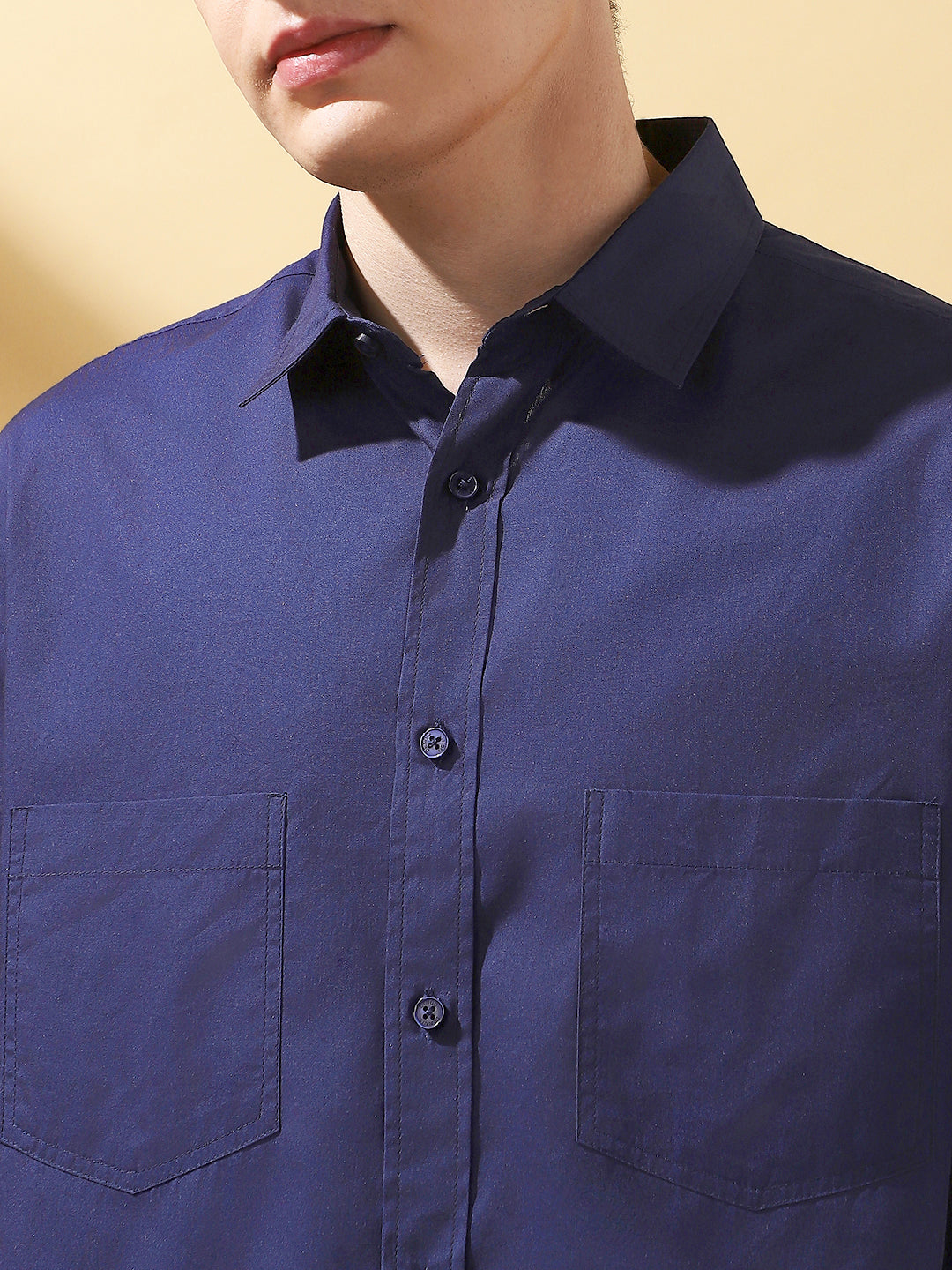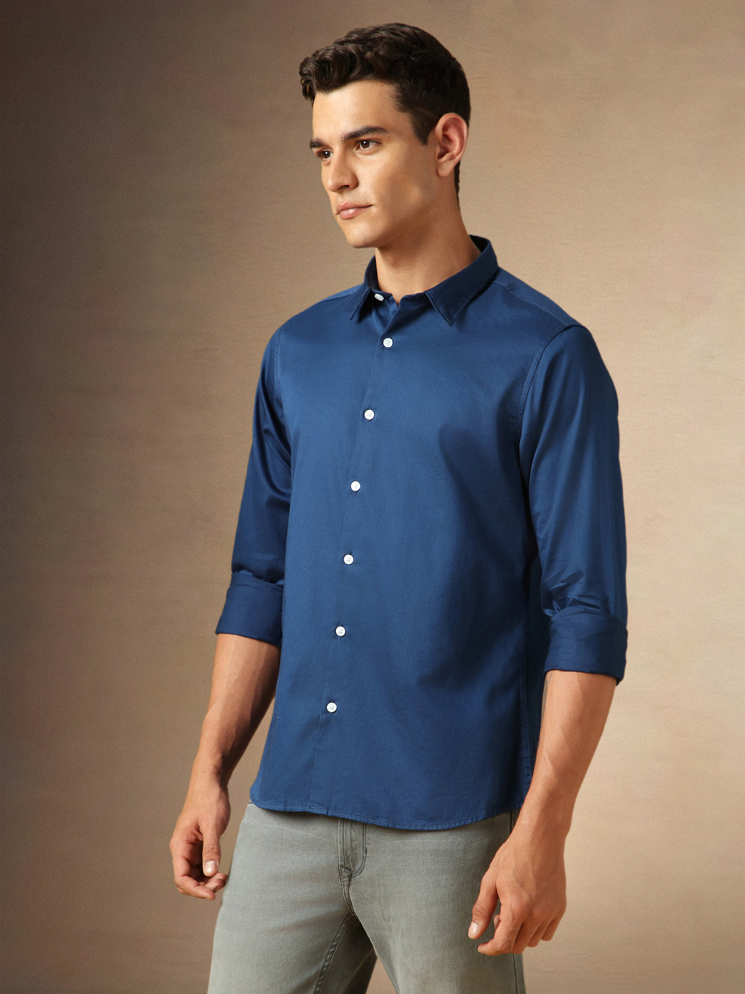 Men's Navy Solid Spread Collar Full Sleeve Regular Fit Shirt