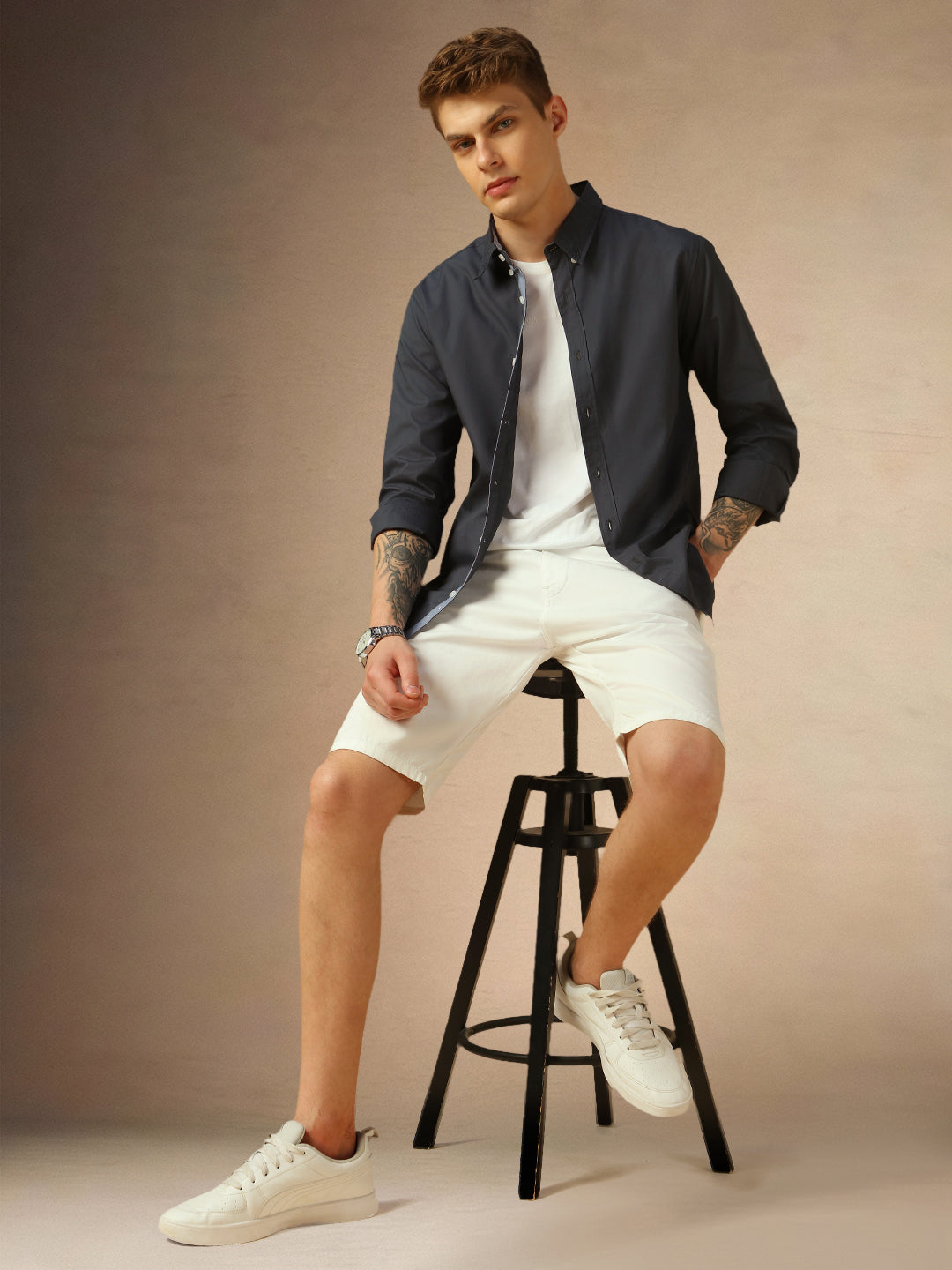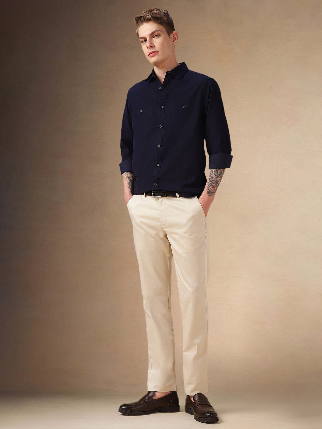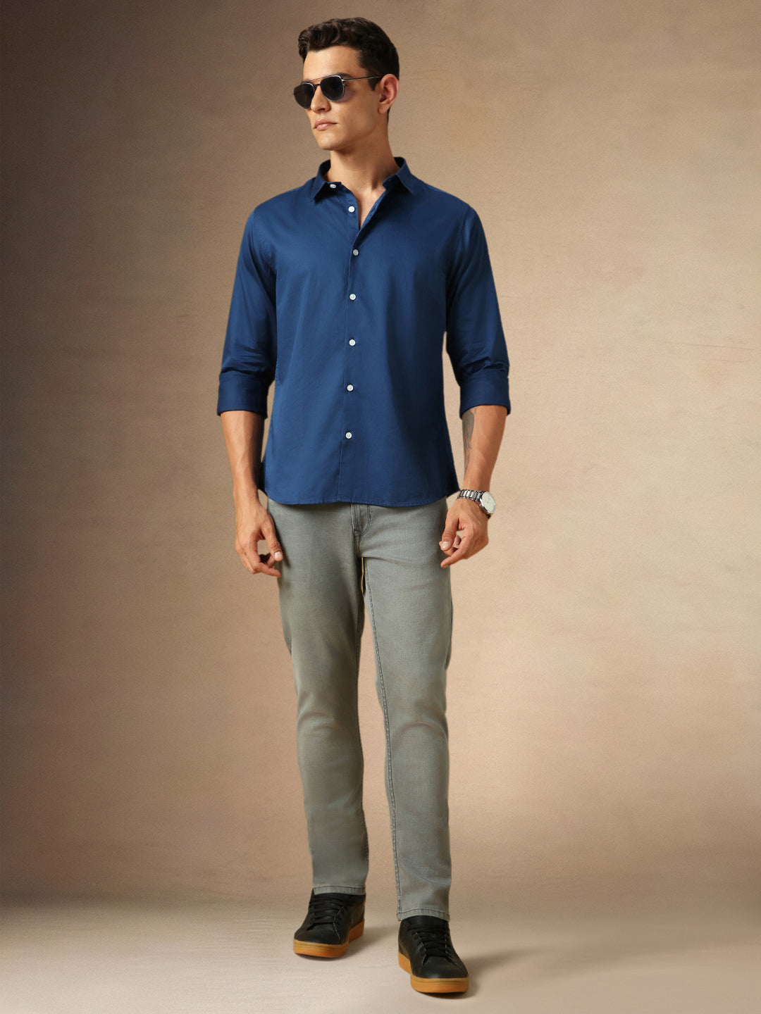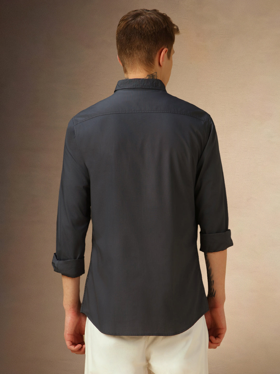 Men's Navy Solid Spread Collar Full Sleeve Regular Fit Shirt