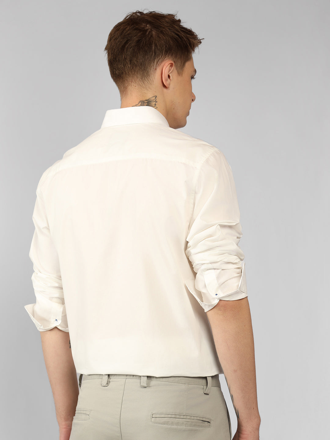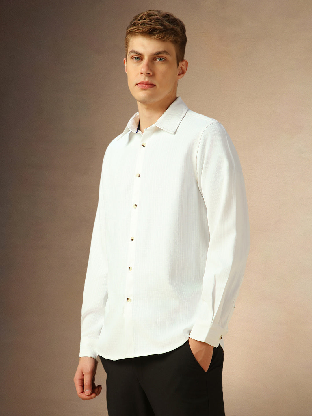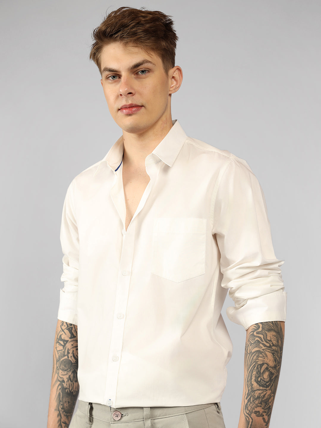 Men's White Solid Spread Collar Full Sleeves Shirt