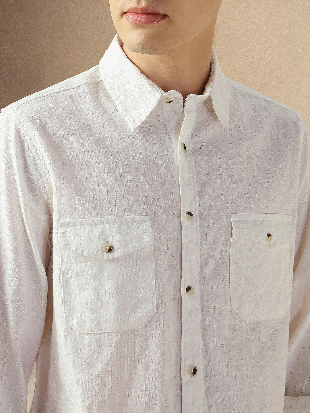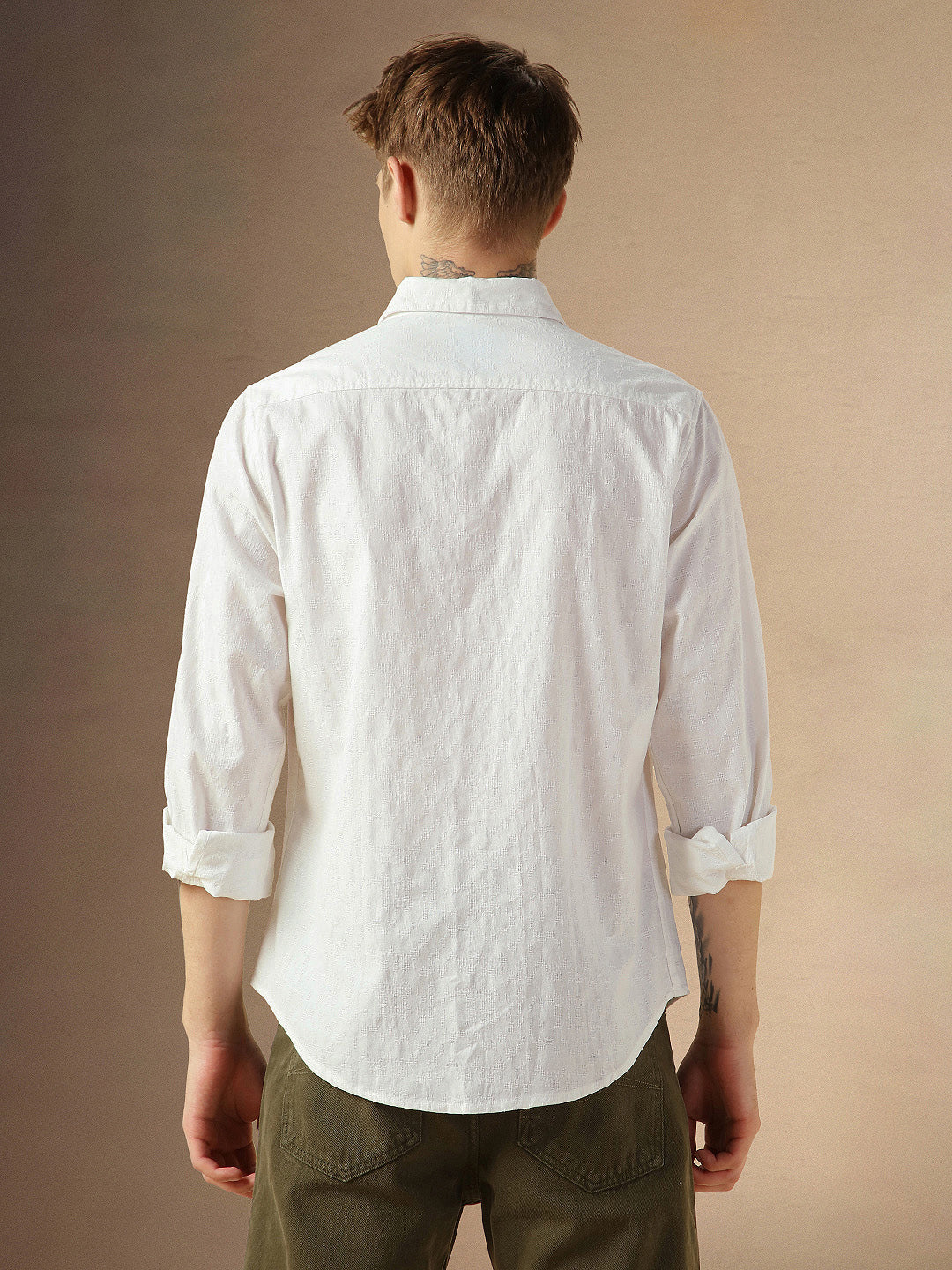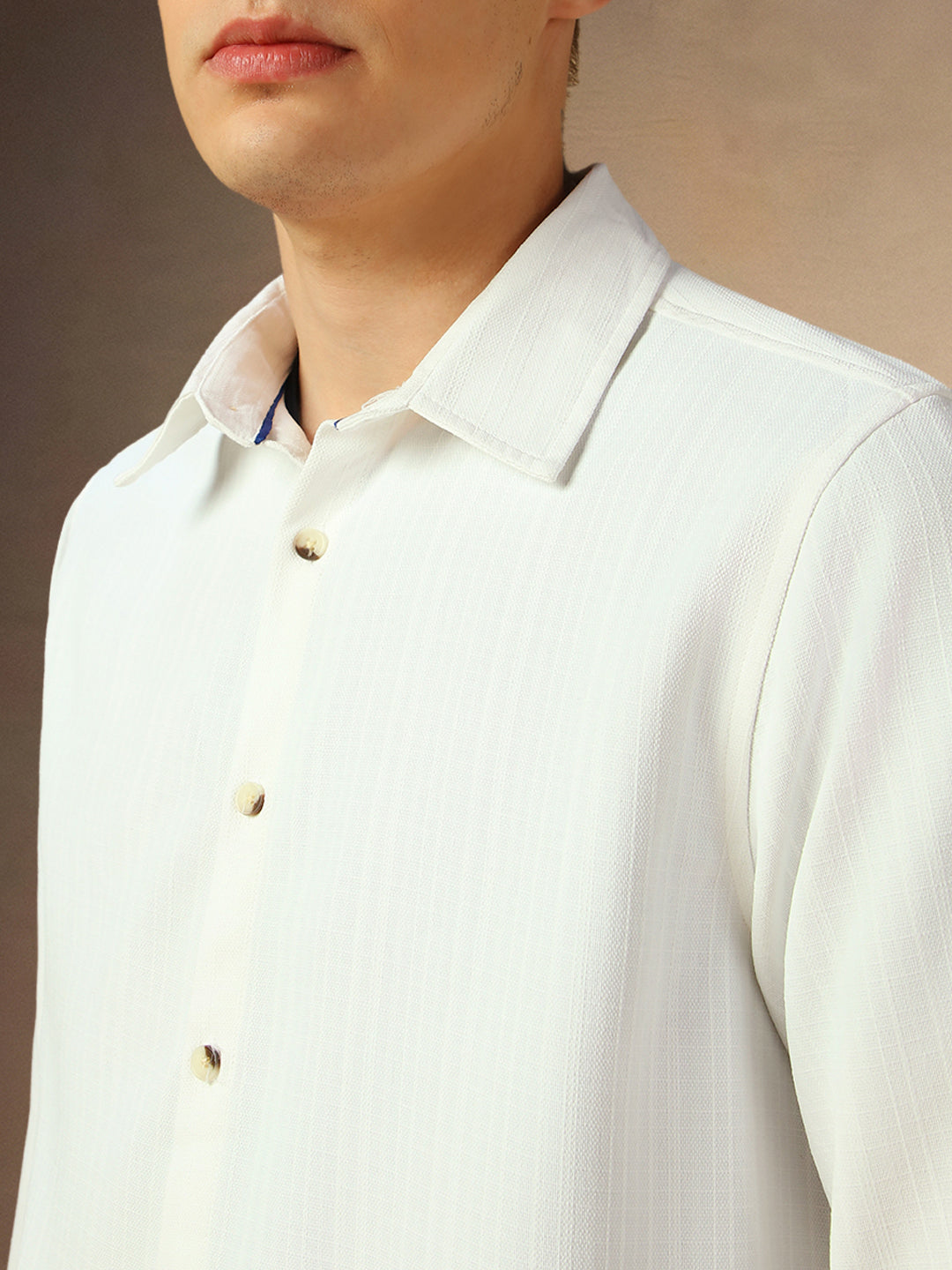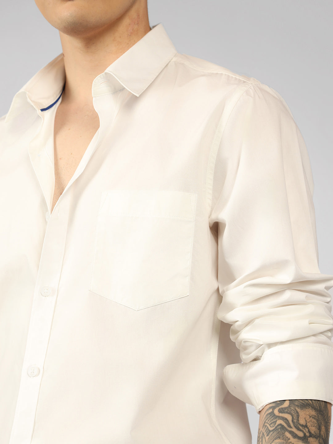 Men's White Solid Spread Collar Full Sleeves Shirt