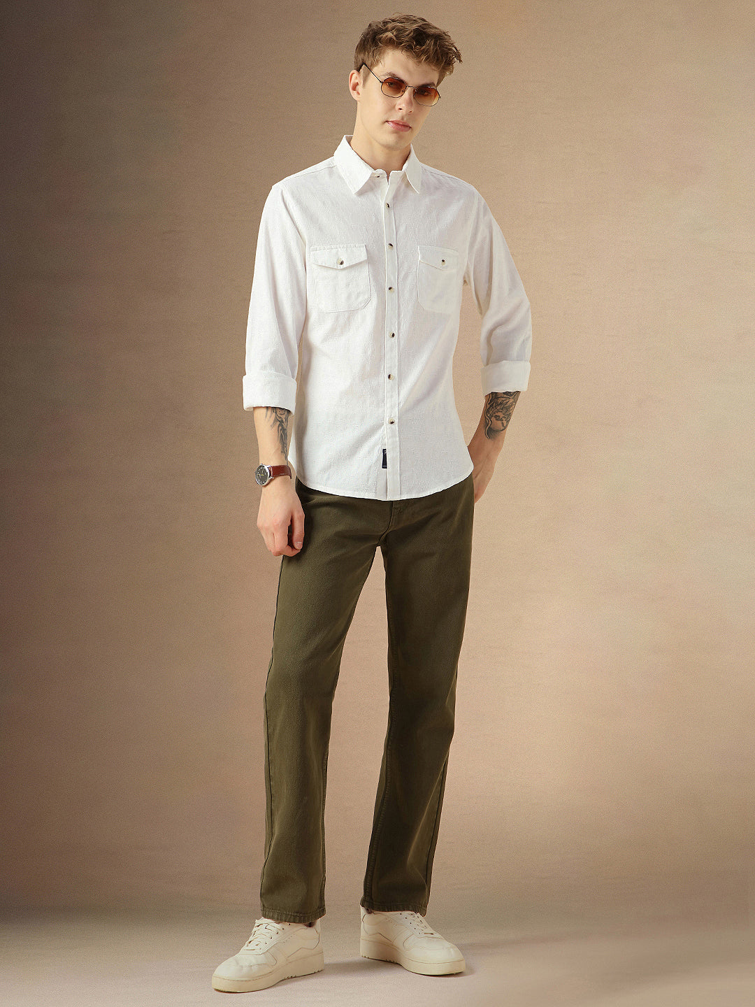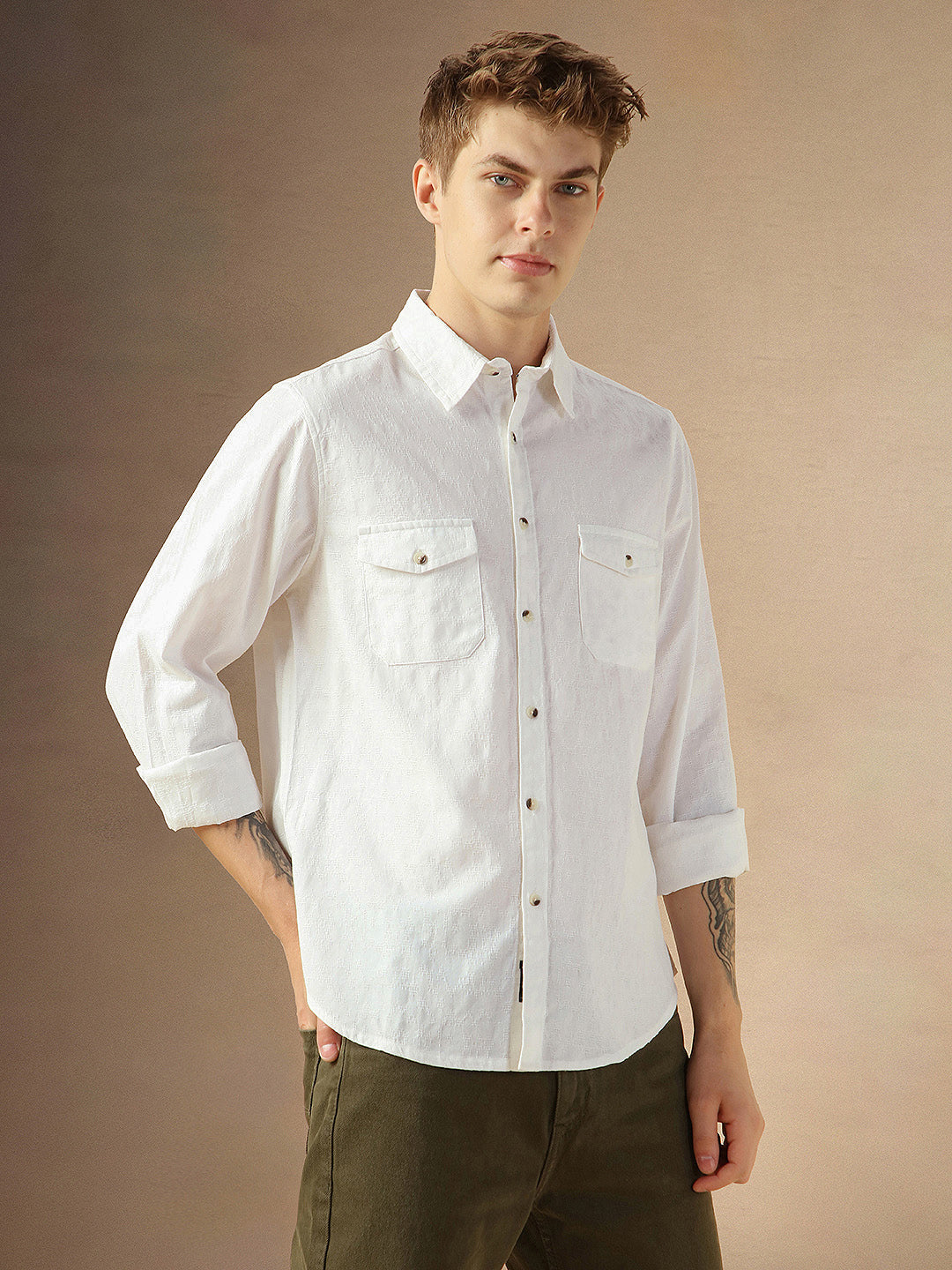 Men's White Solid Spread Collar Full Sleeve Regular Fit Shirt