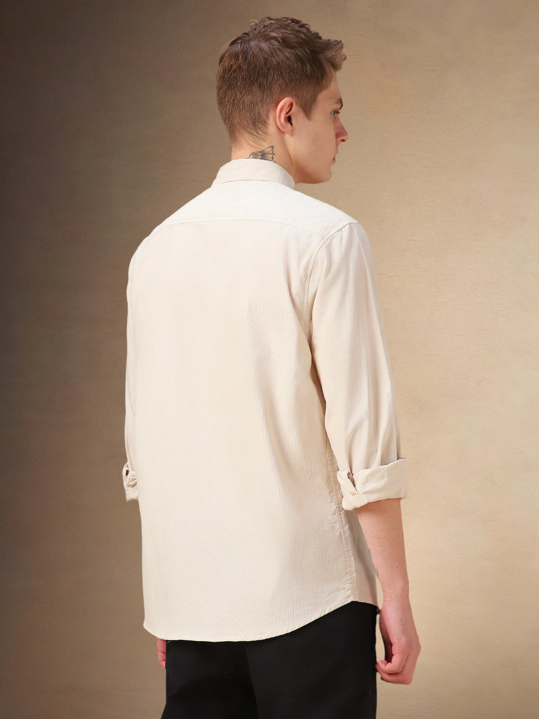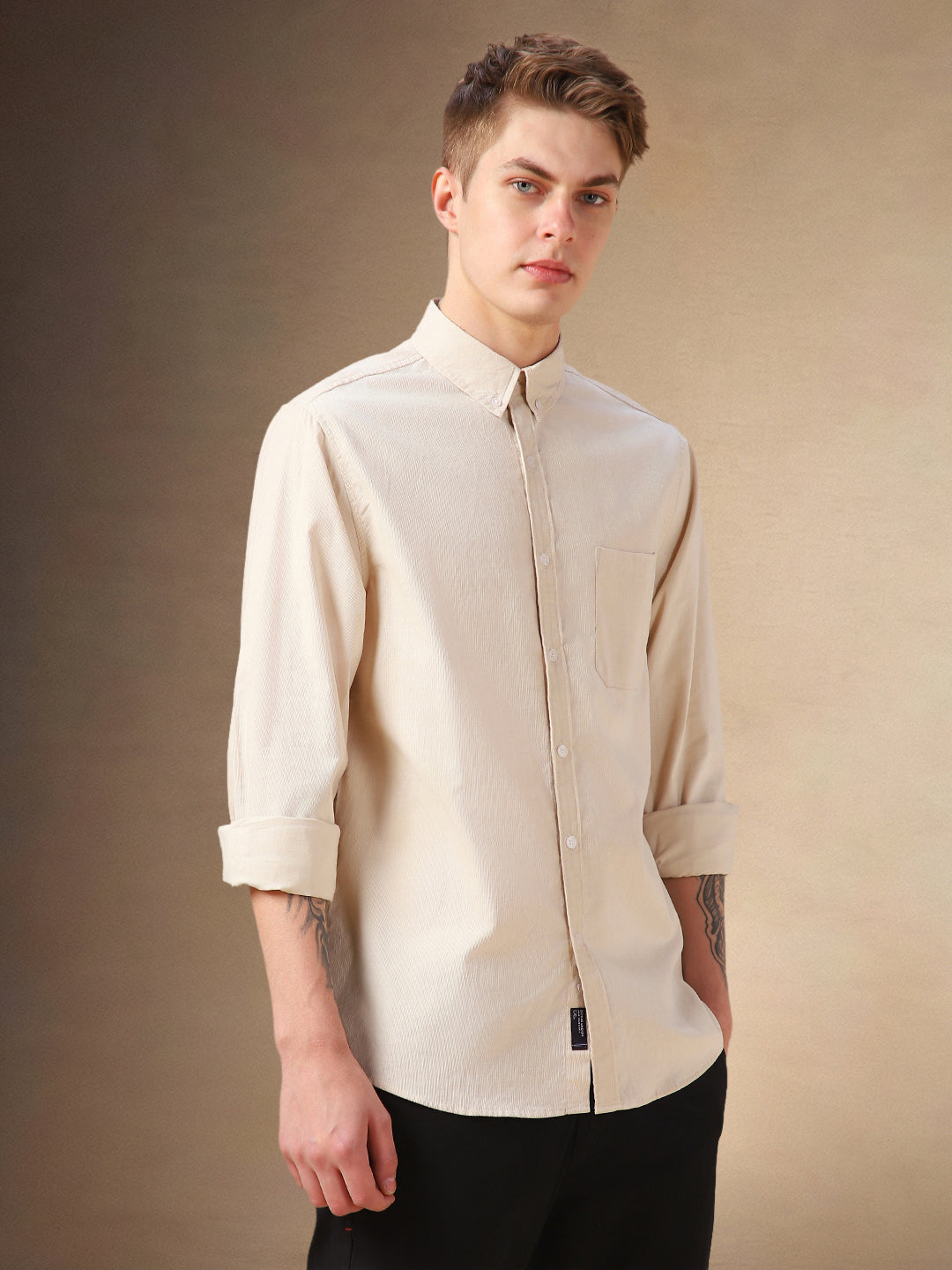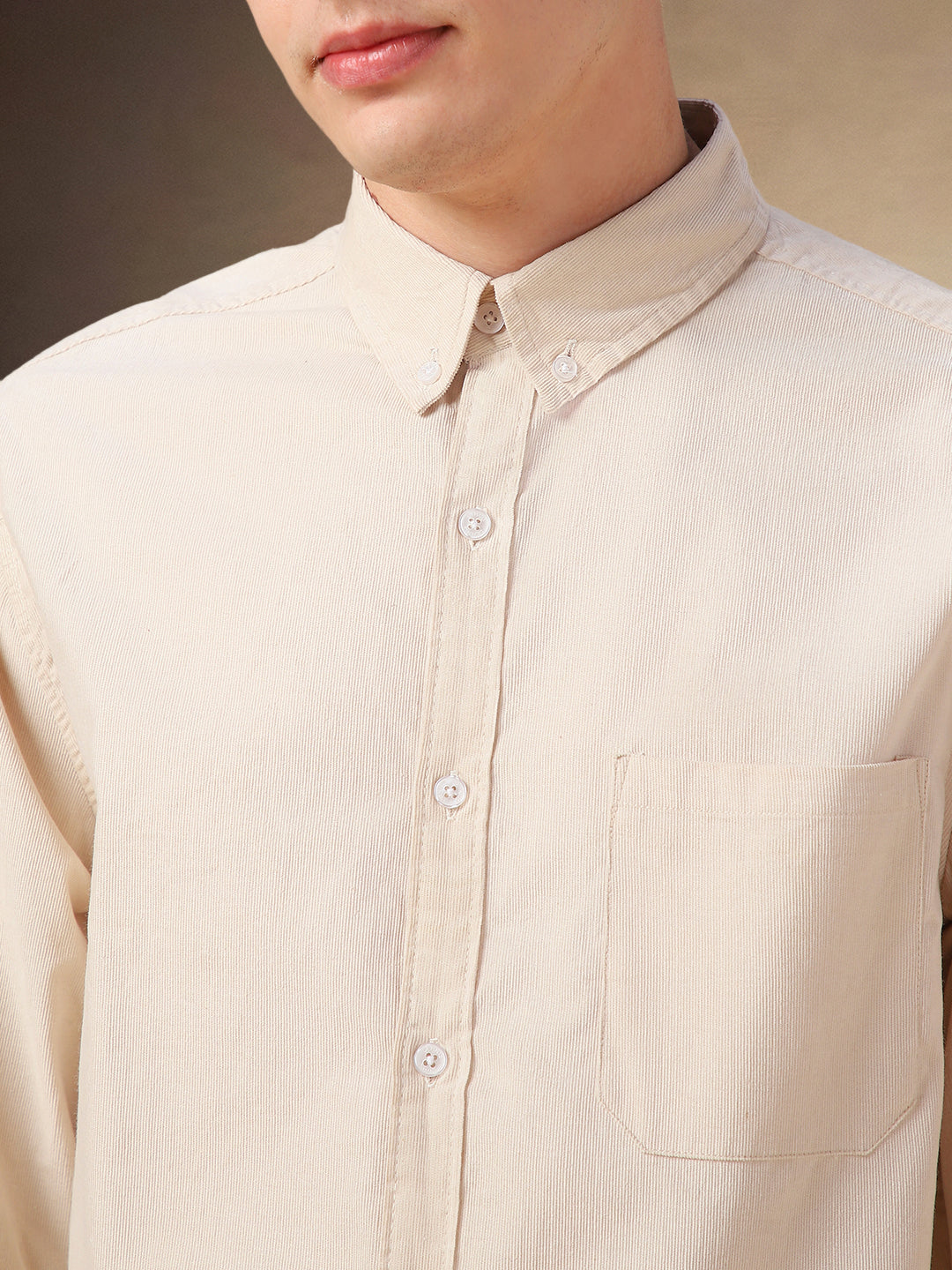 Men's Beige Solid Button Down Collar Full Sleeves Relaxed fit Corduroy Shirt