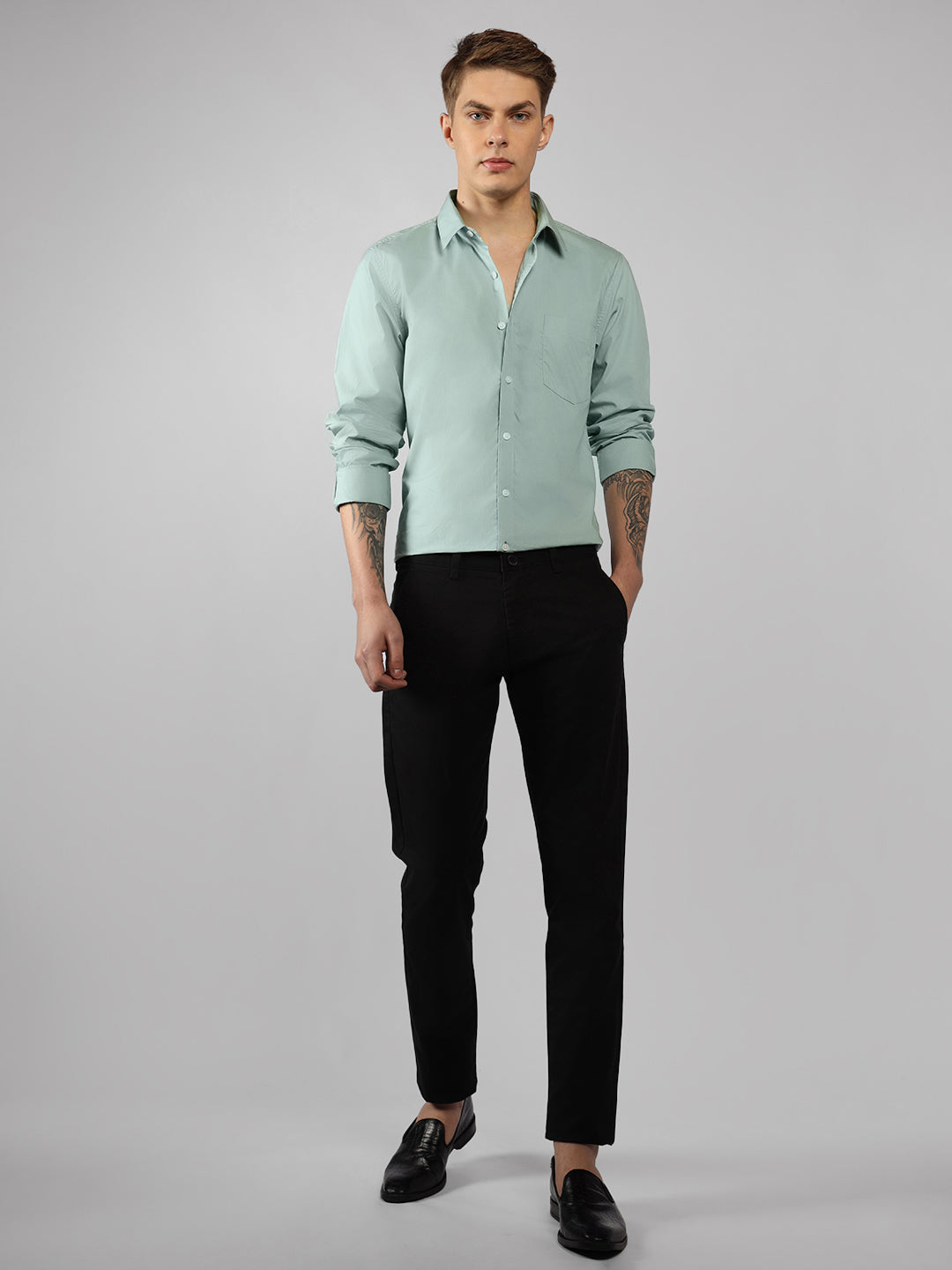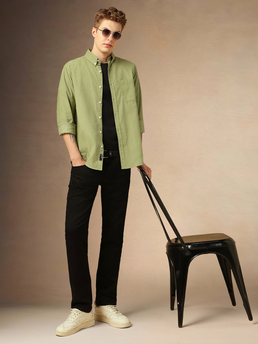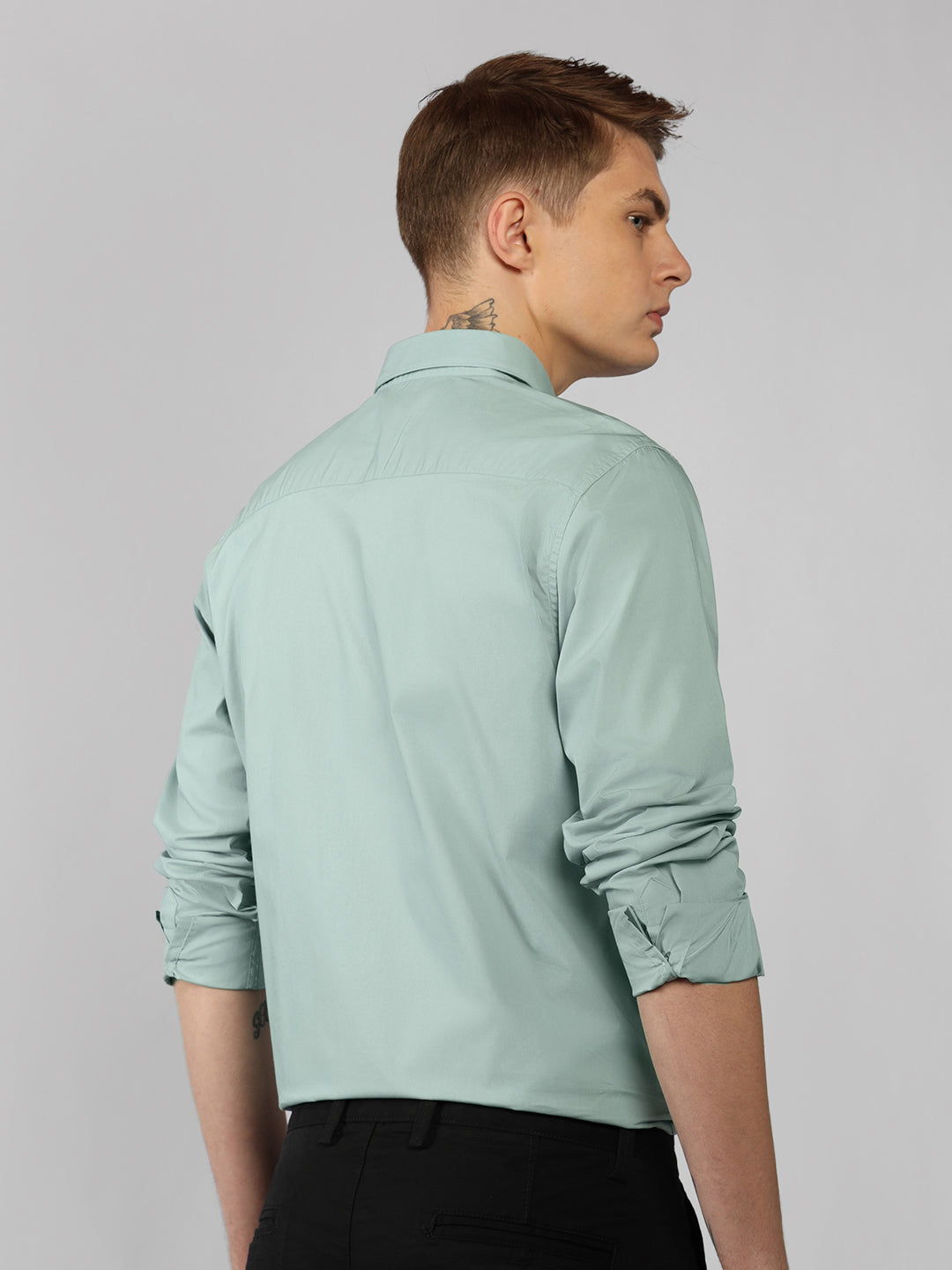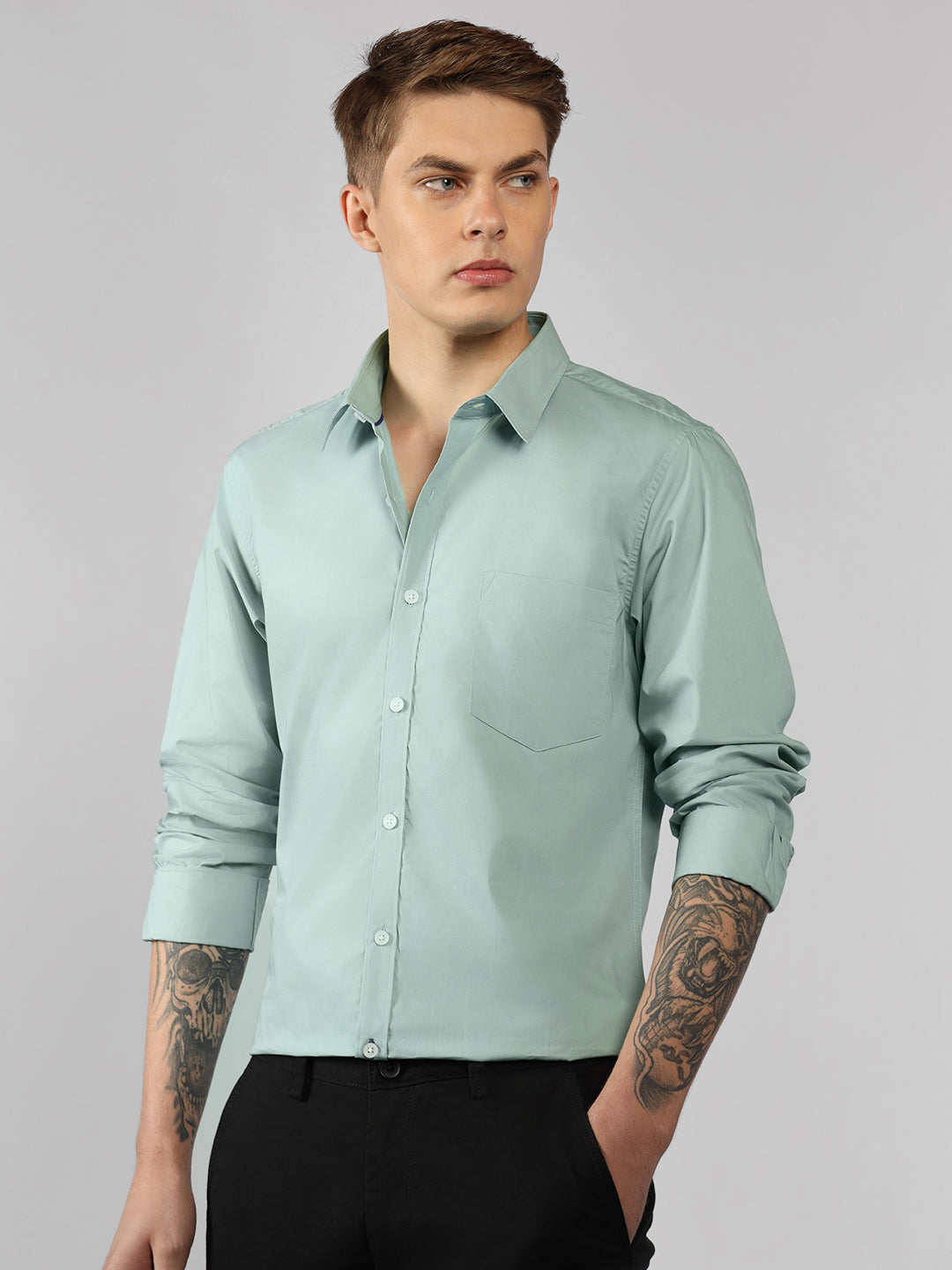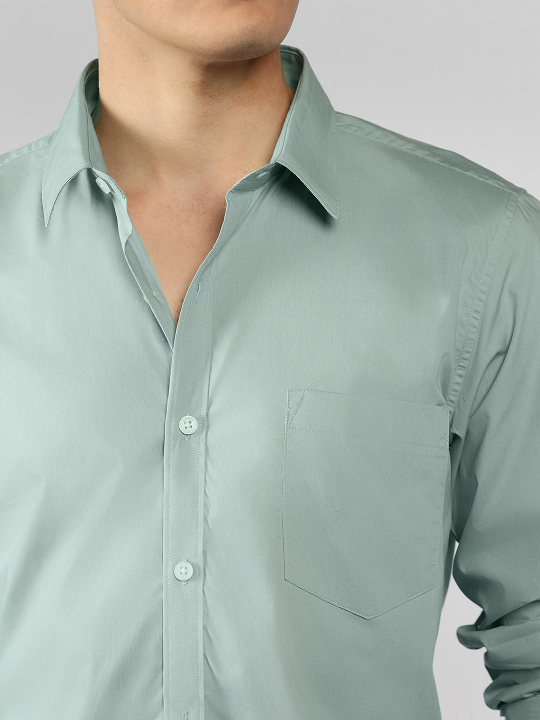 Men's Sage Green Solid Spread Collar Full Sleeve Regular Fit Shirt