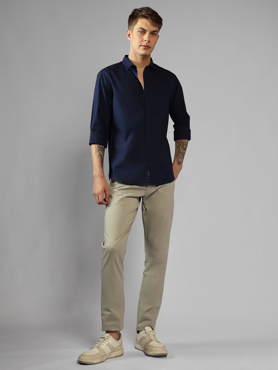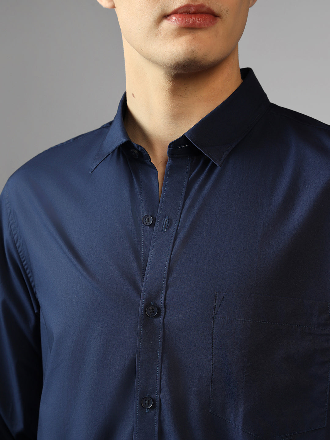 Men's Navy Blue Solid Spread Collar Full Sleeves Shirt