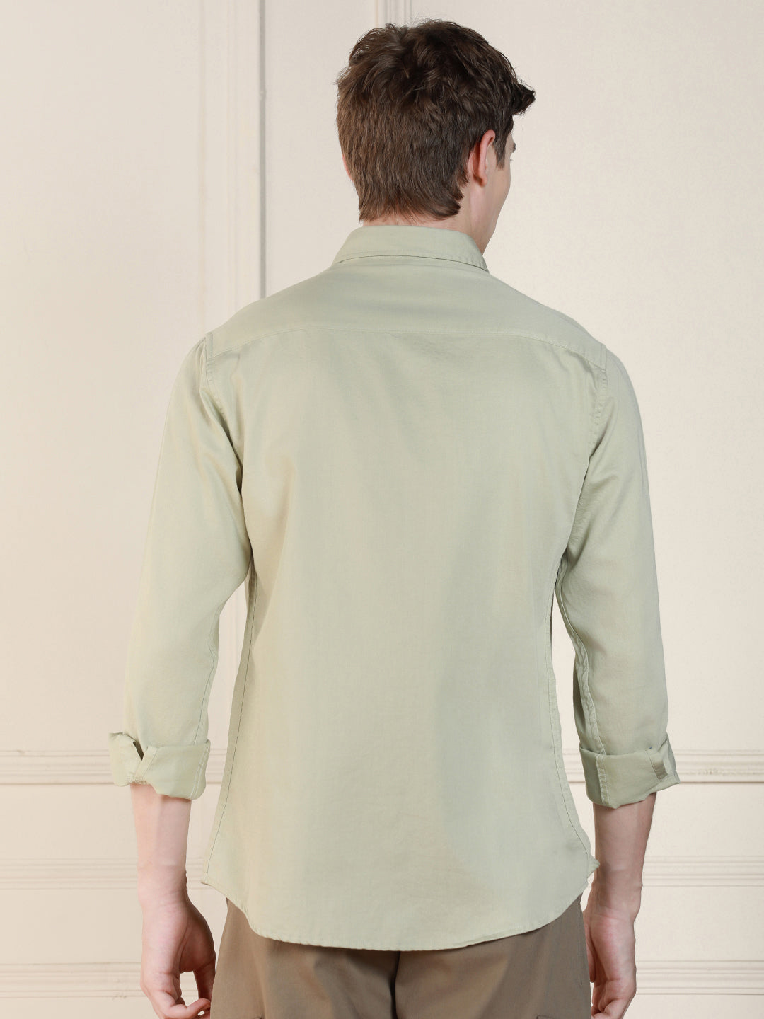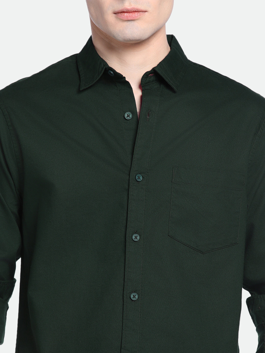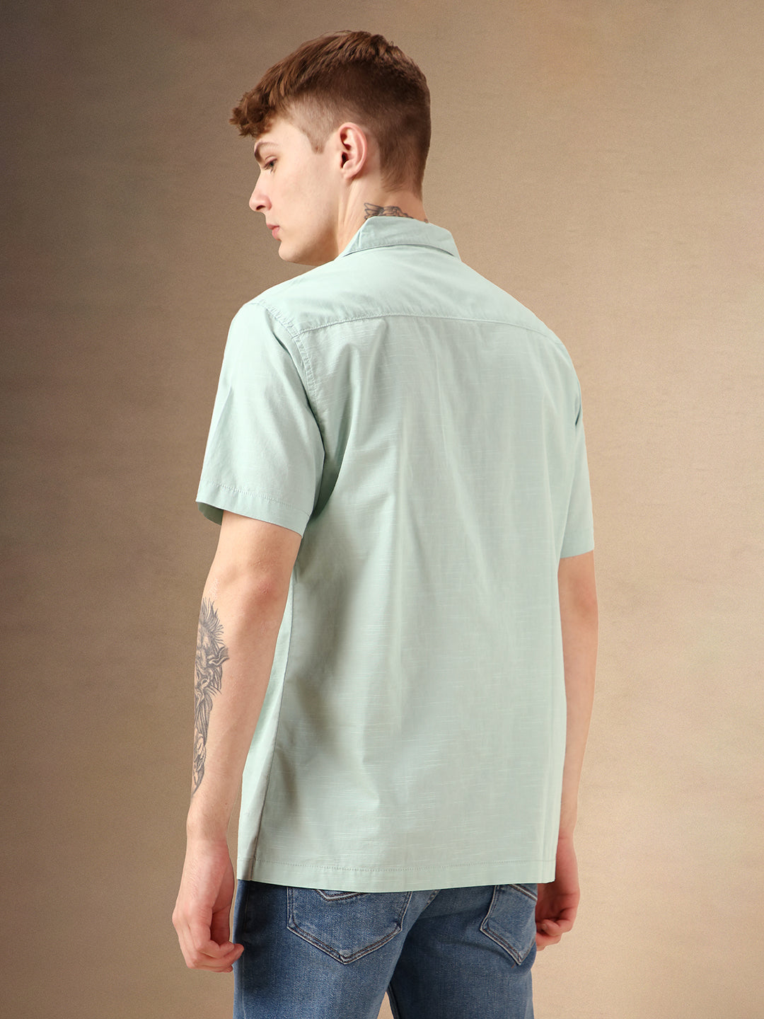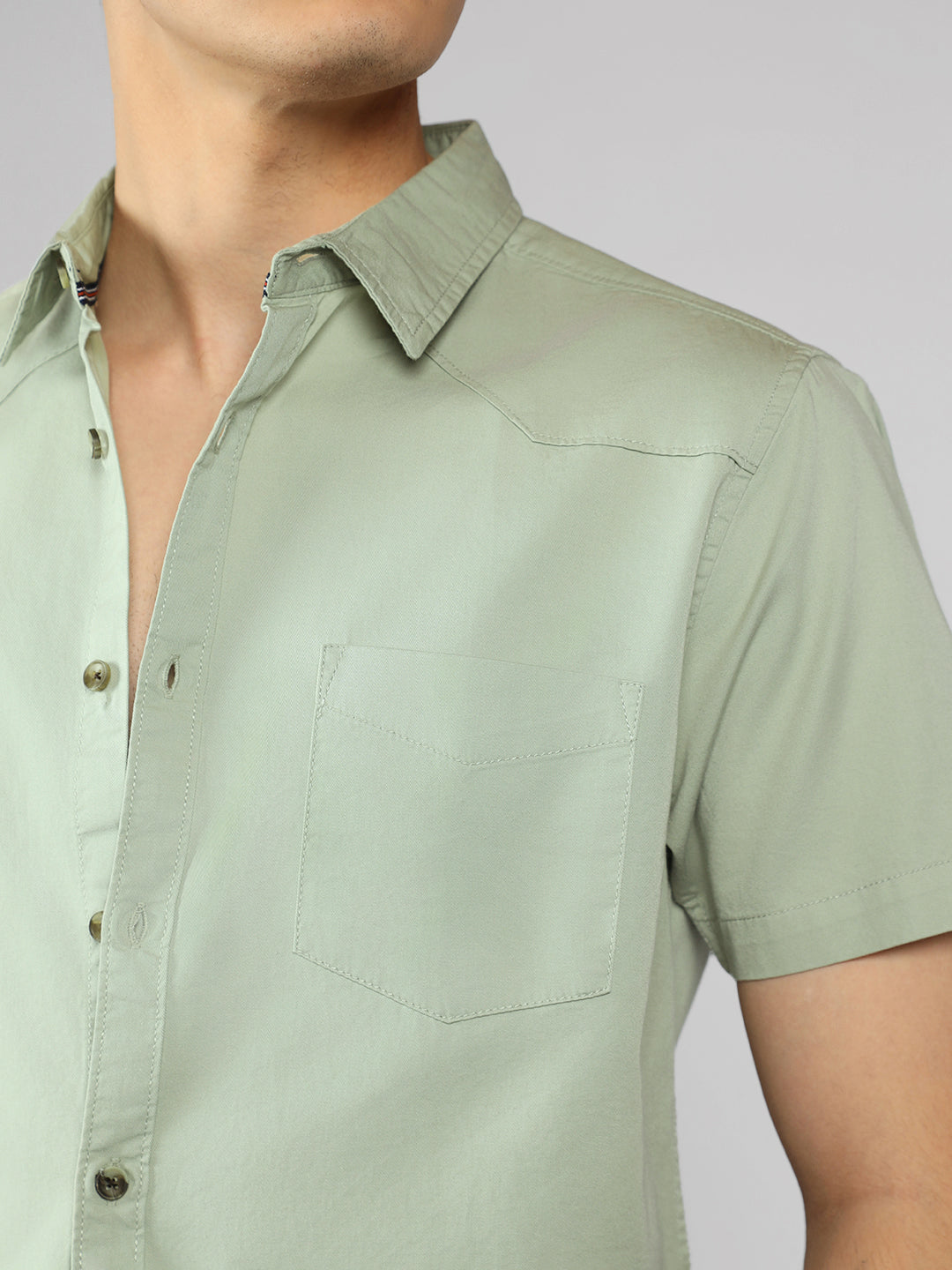 Men's Green Cotton Solid Spread Collar Casual Shirt