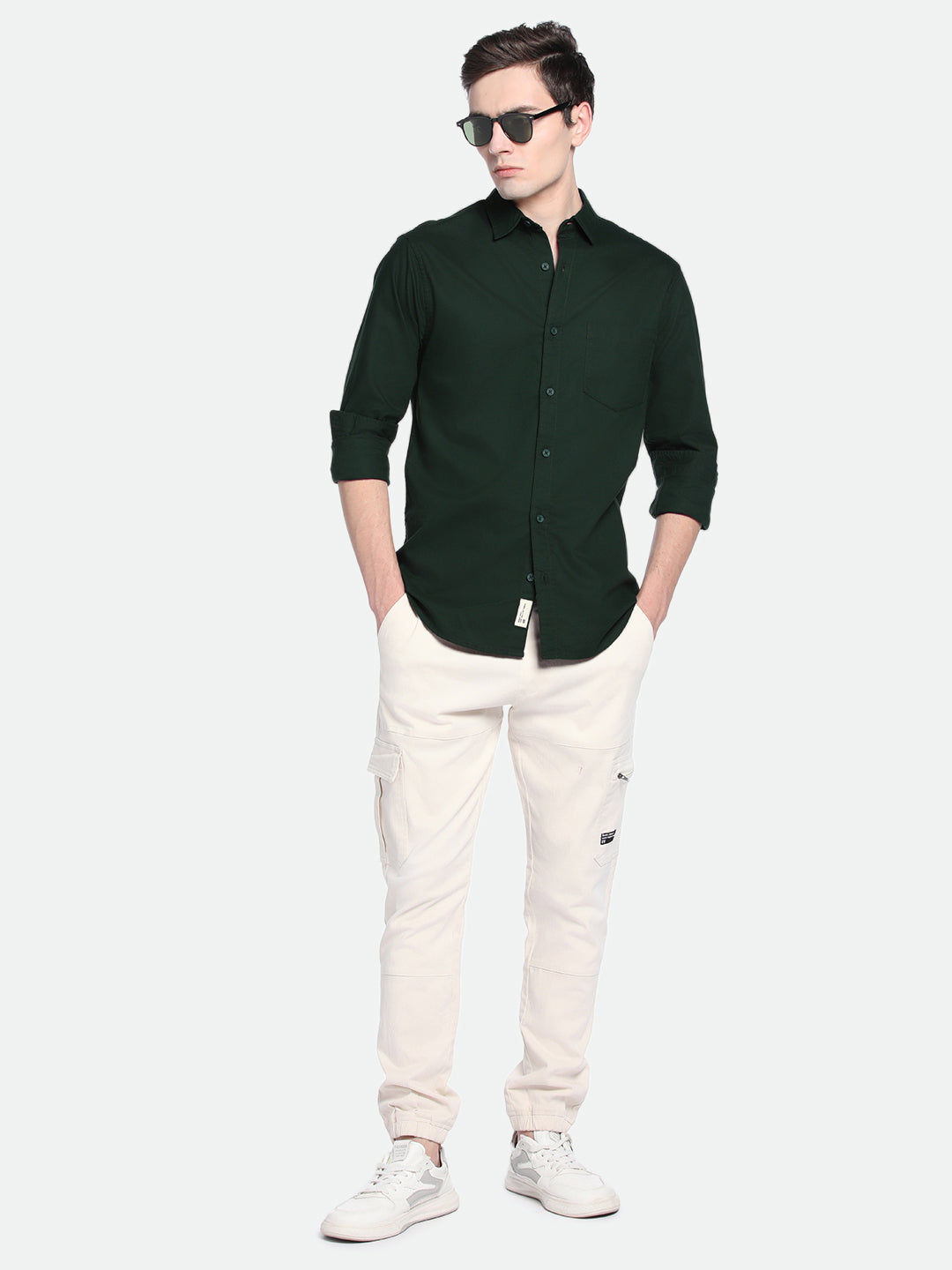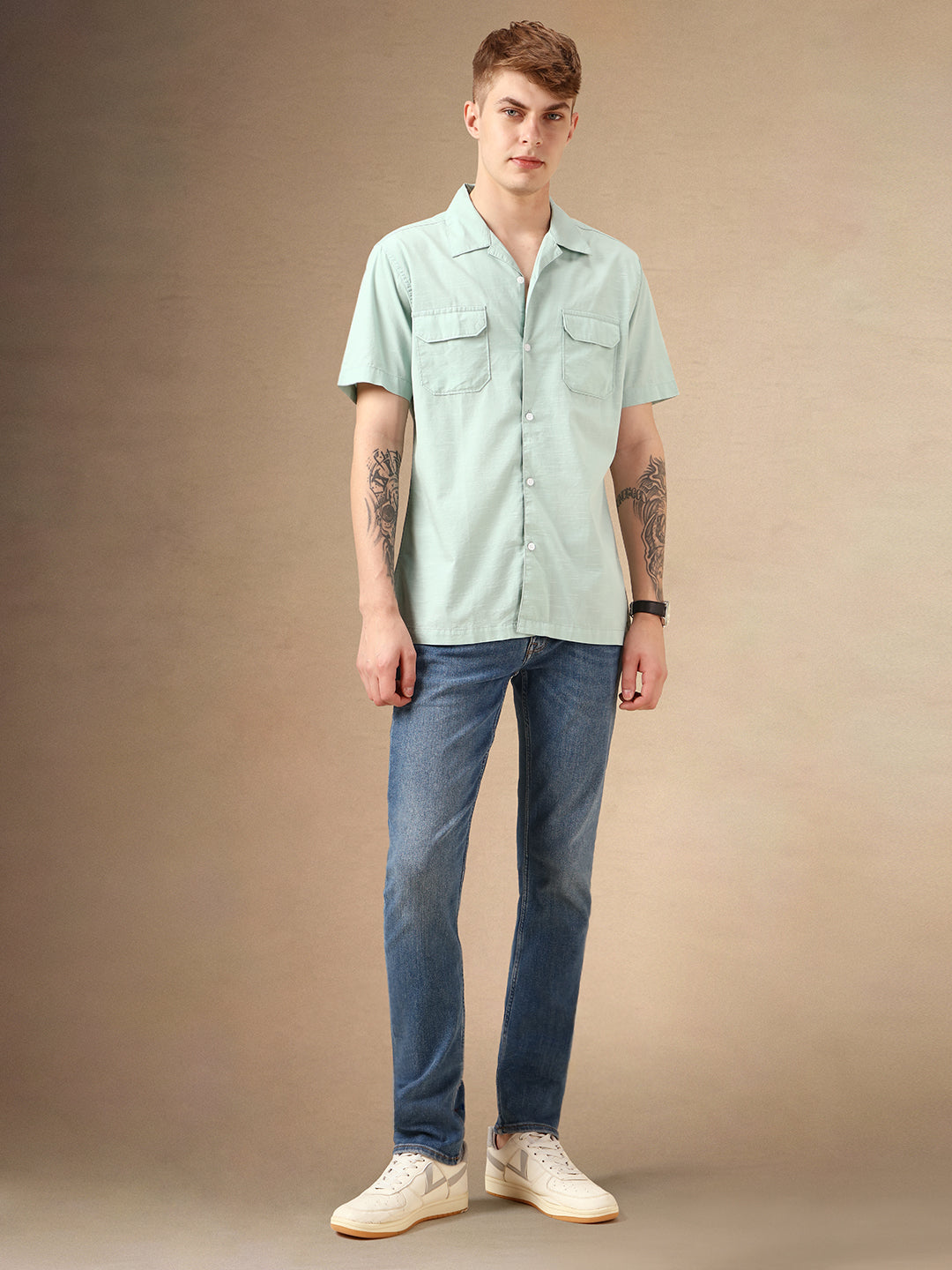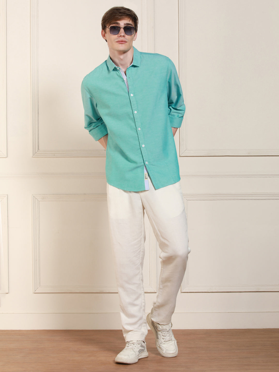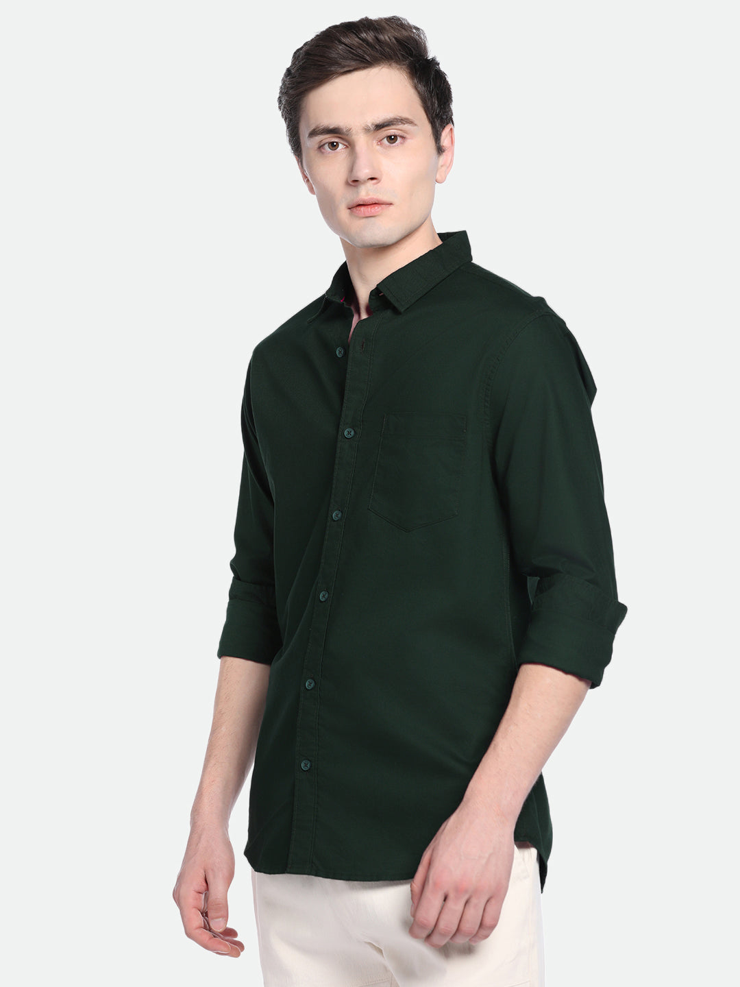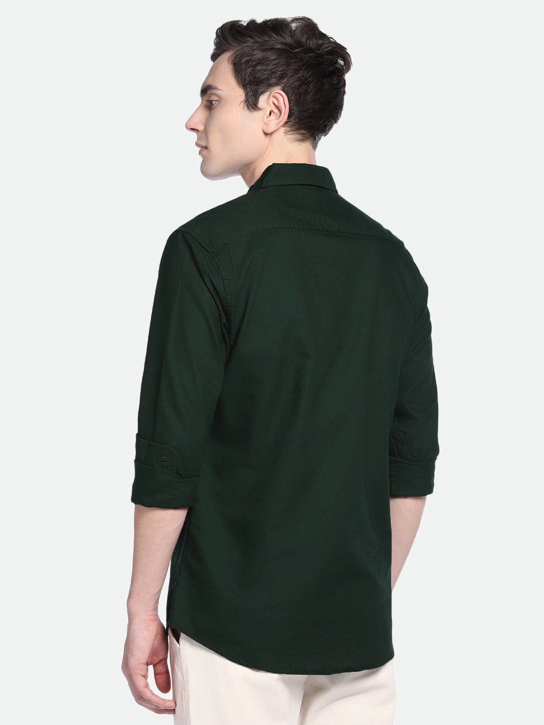 Men's Green Cotton Solid Spread Collar Casual Shirt