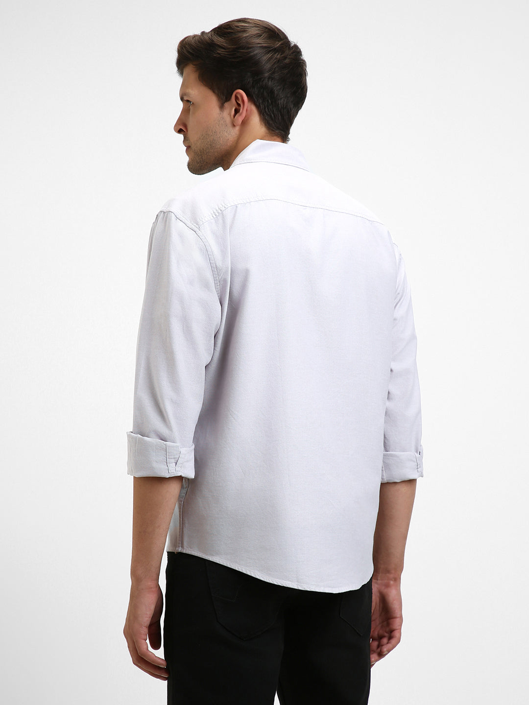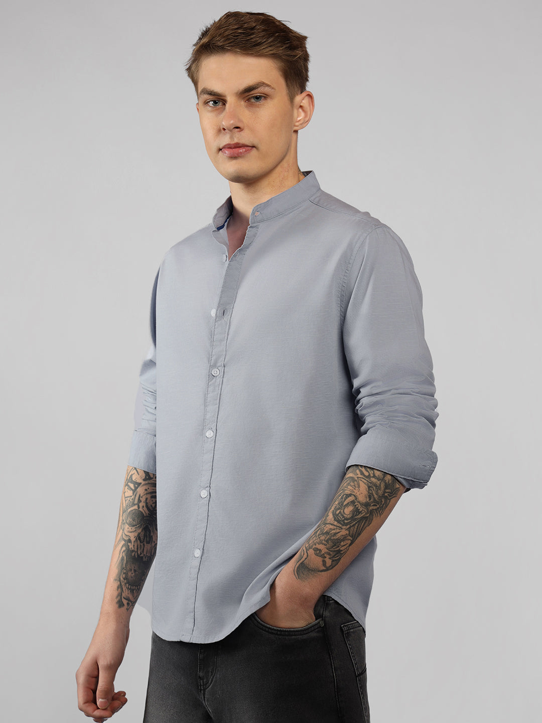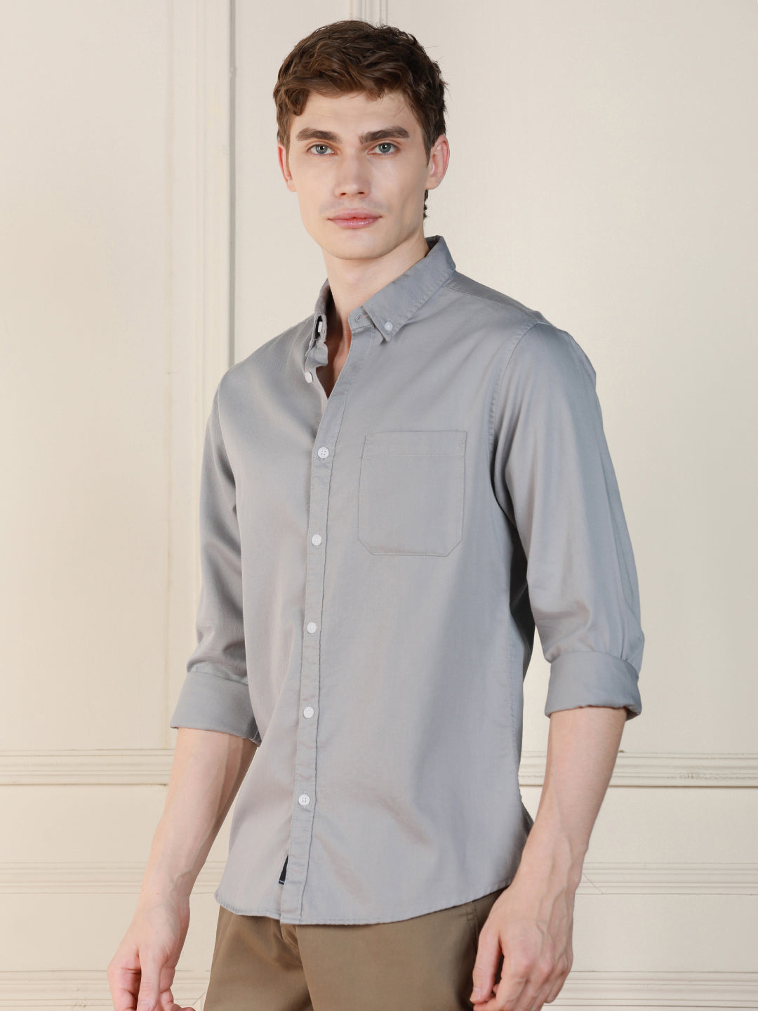 Men's Grey Solid Button-Down Collar Long Sleeves Regular Fit Casual Shirt