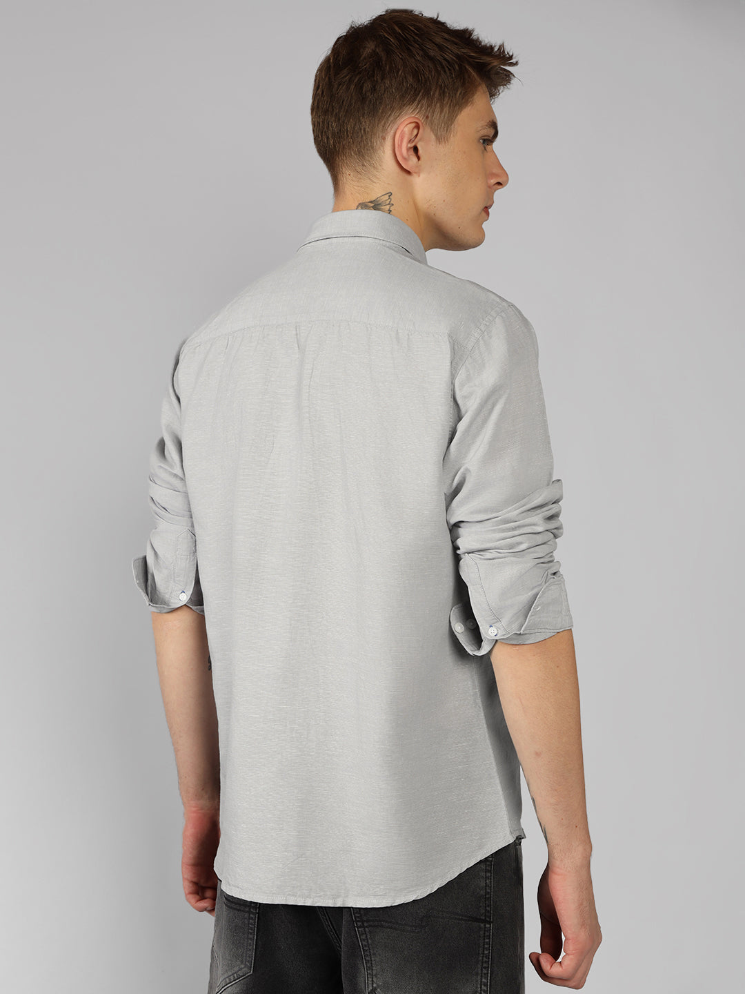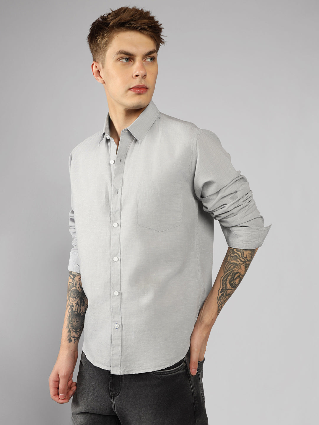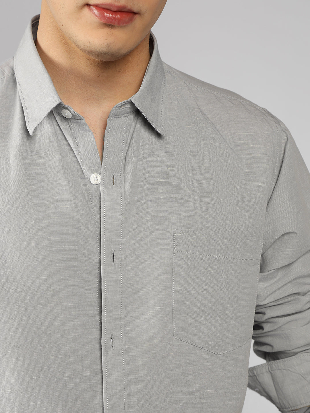 Men's Grey Solid Spread Collar Full Sleeve Regular Fit Shirt