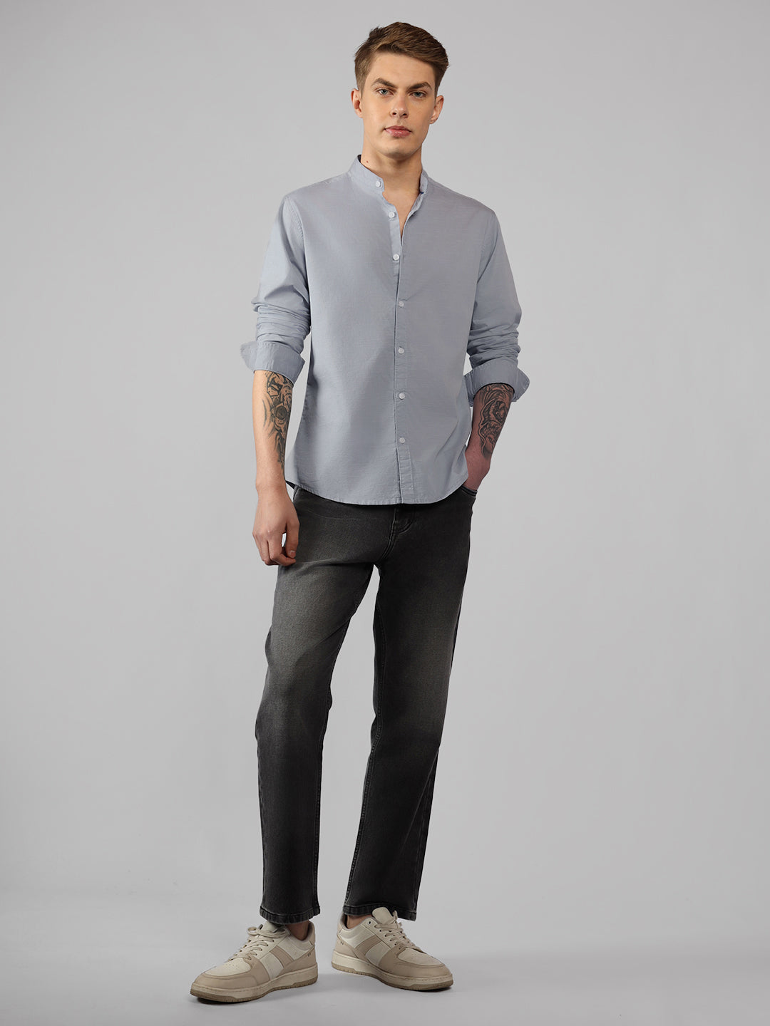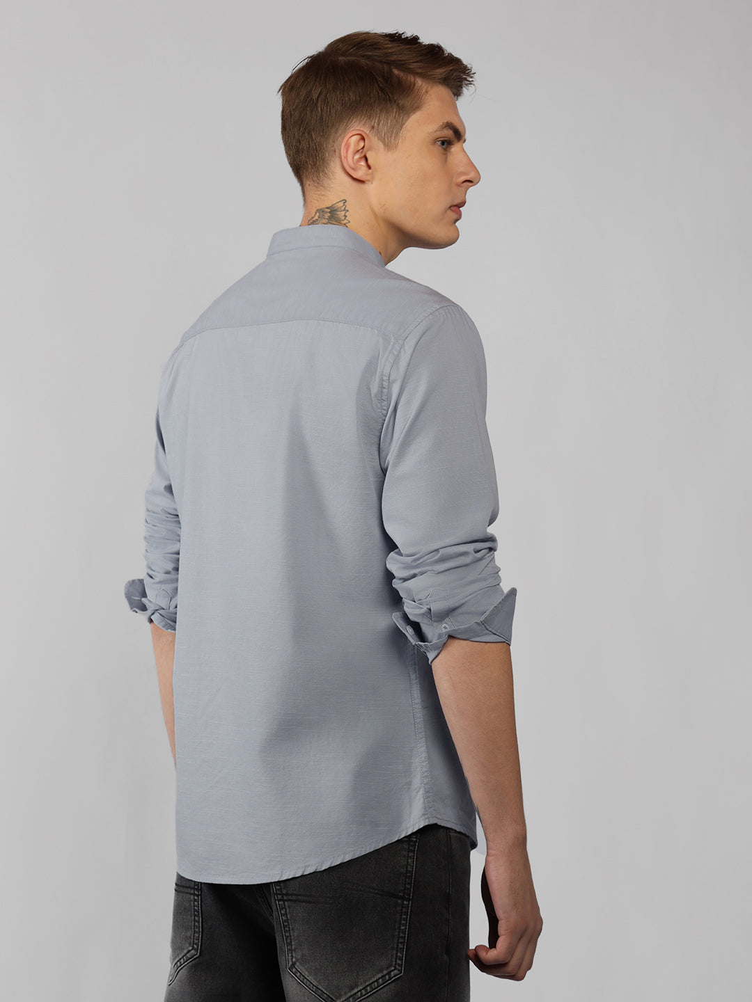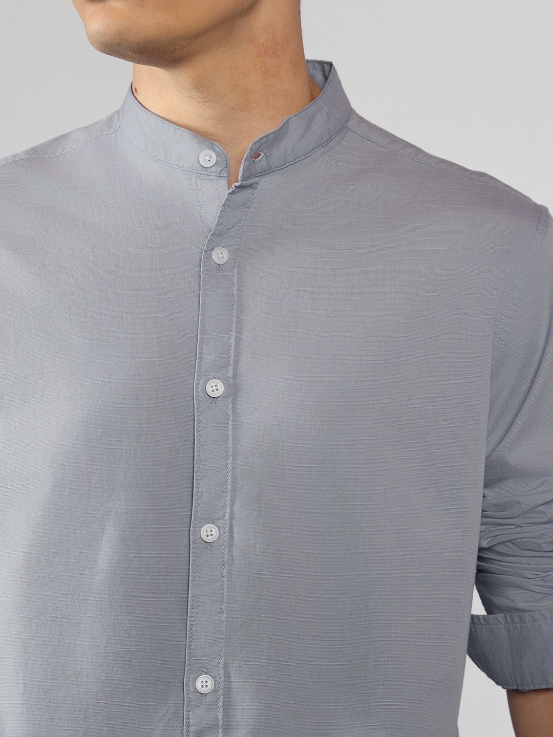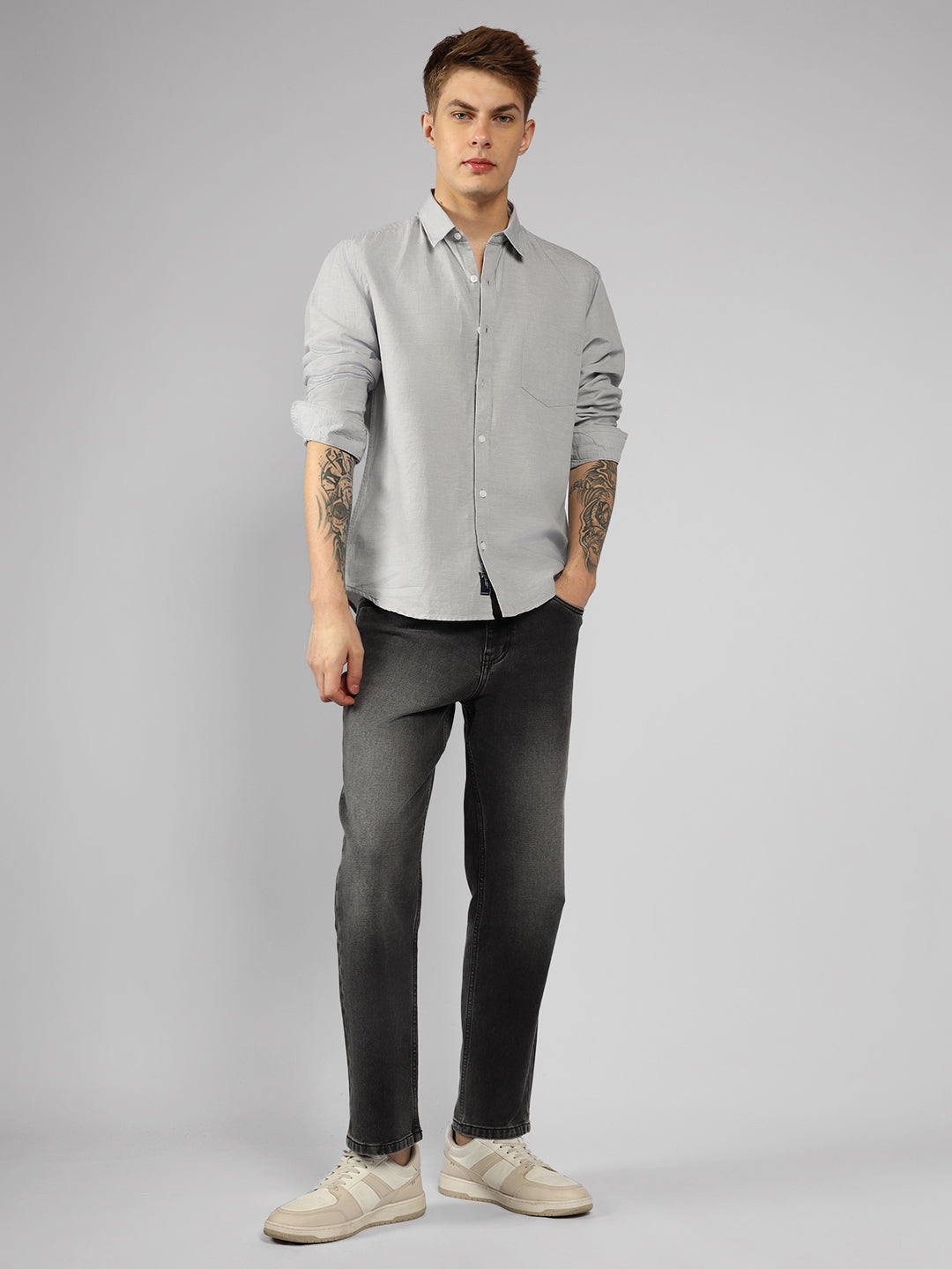 Men's Grey Solid Spread Collar Full Sleeve Regular Fit Shirt