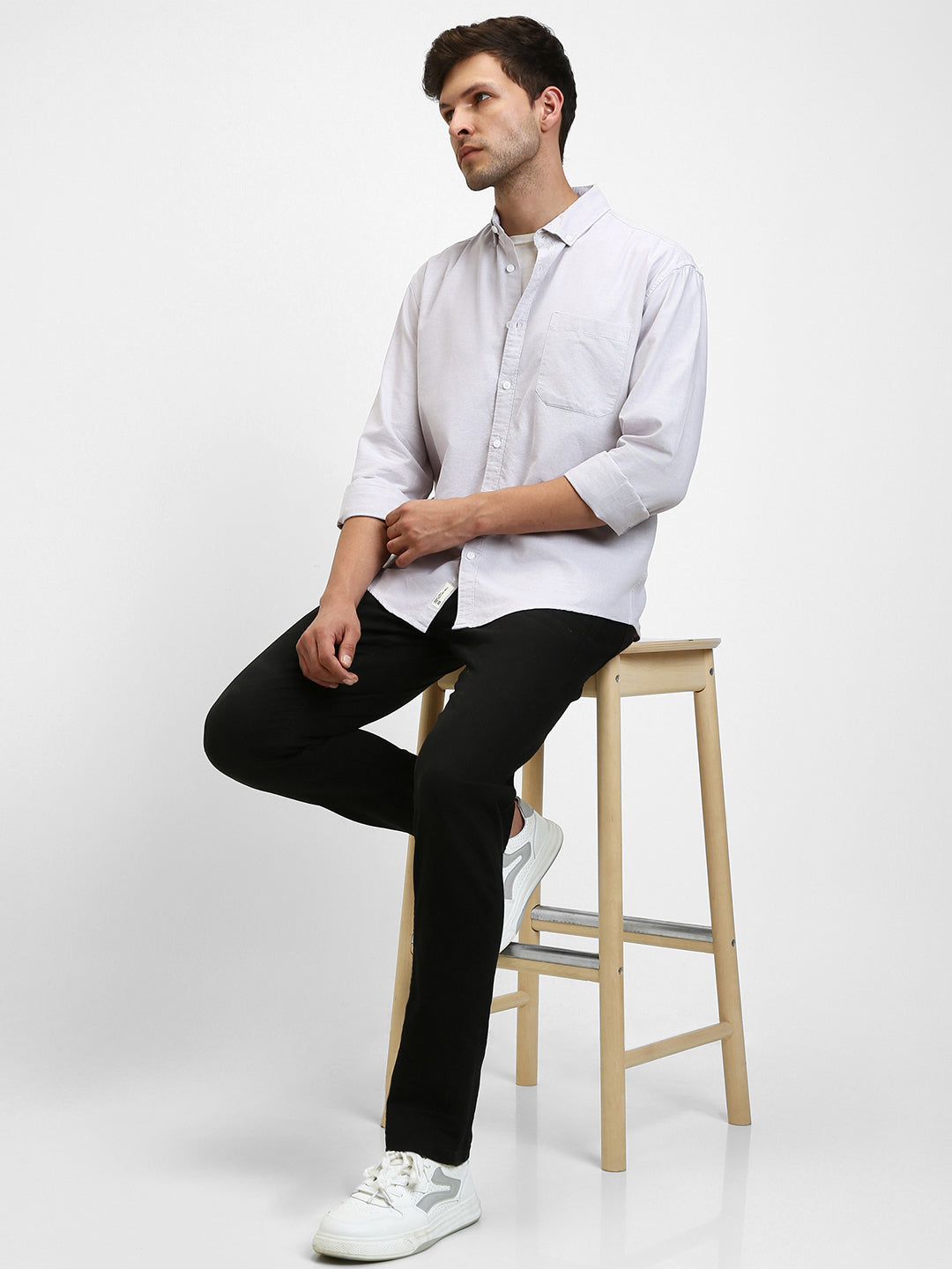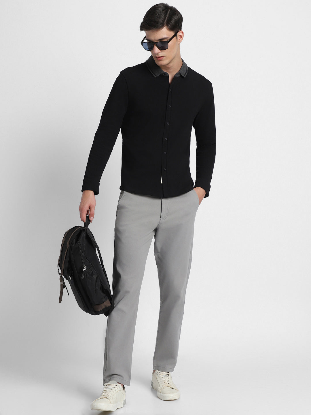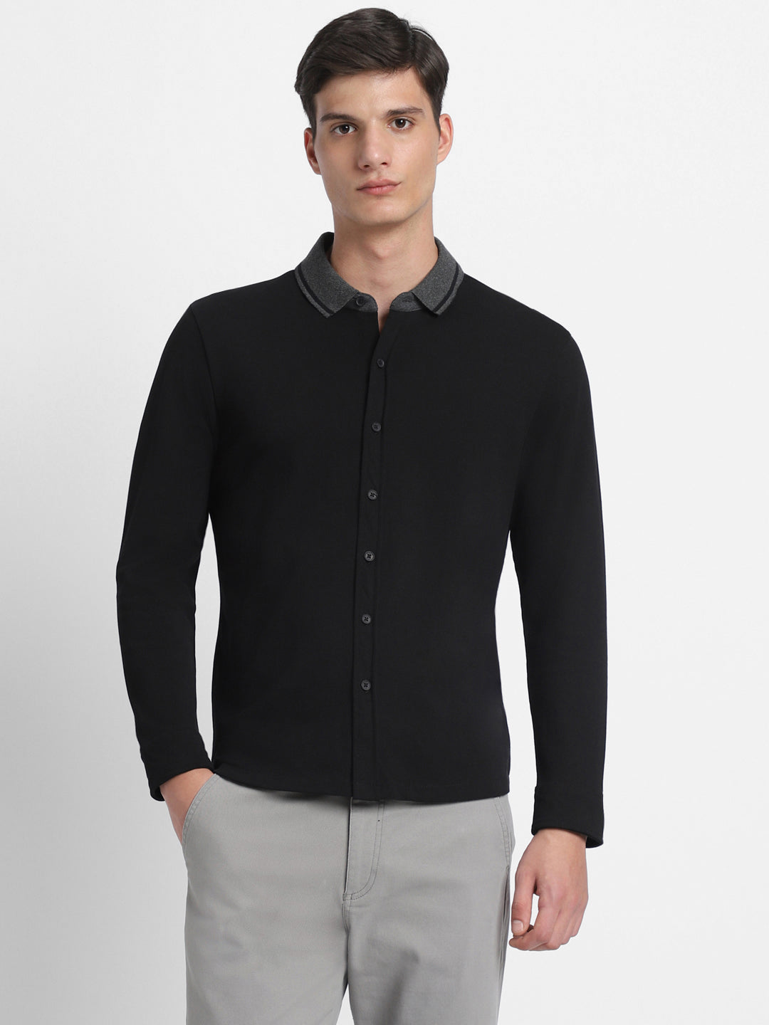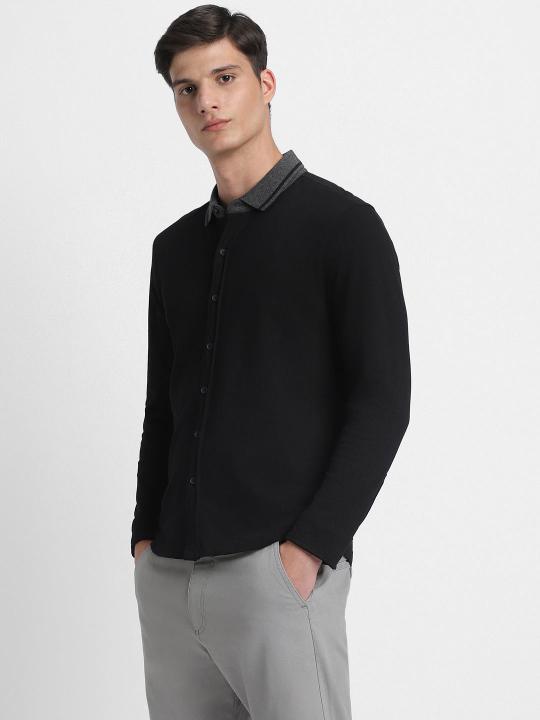 Men's Regular Collar Slim Fit Solid Black Casual Shirts