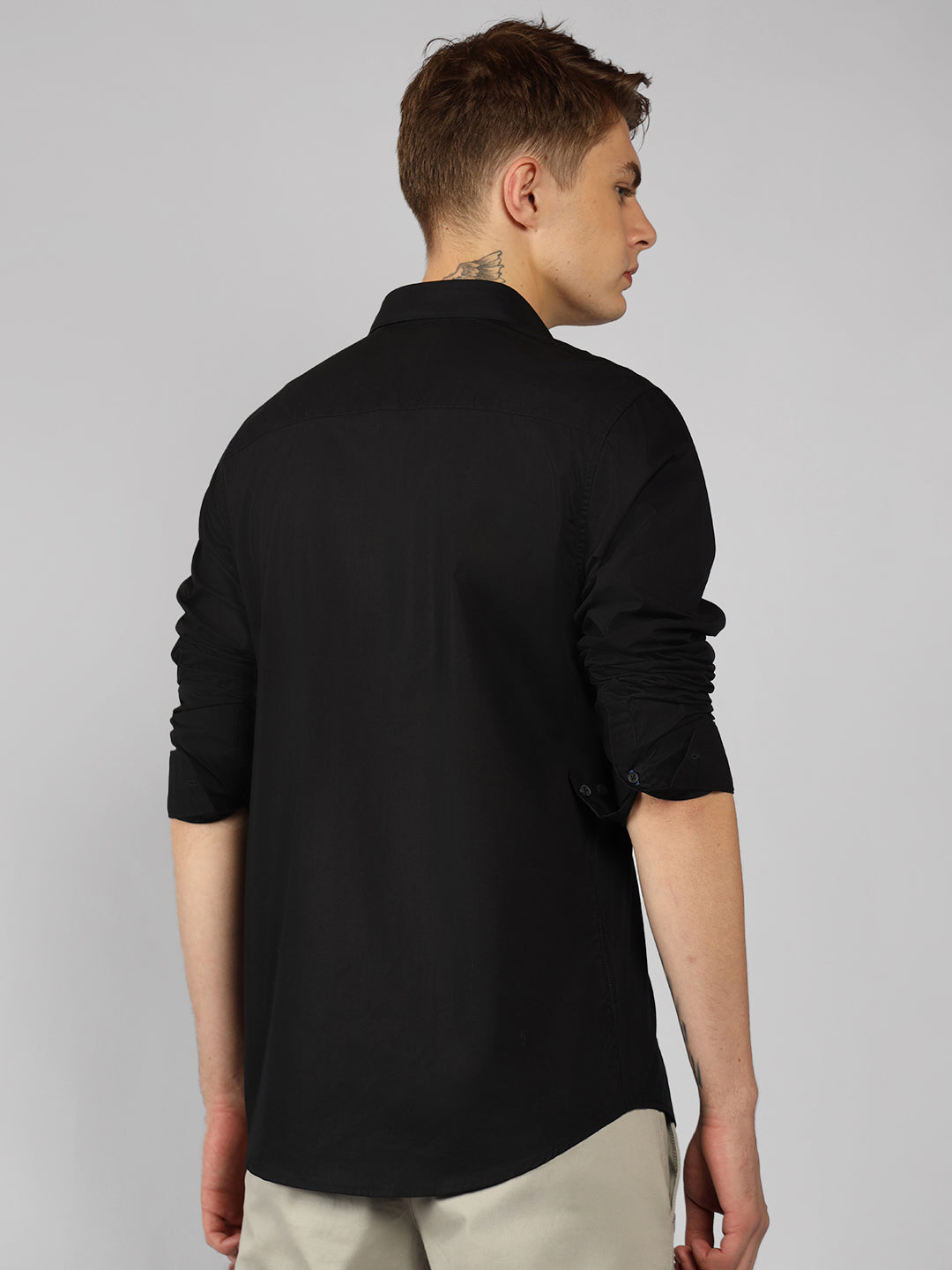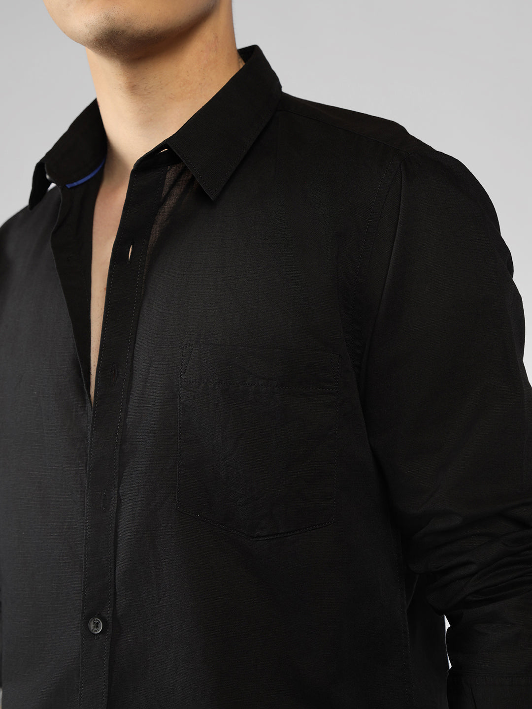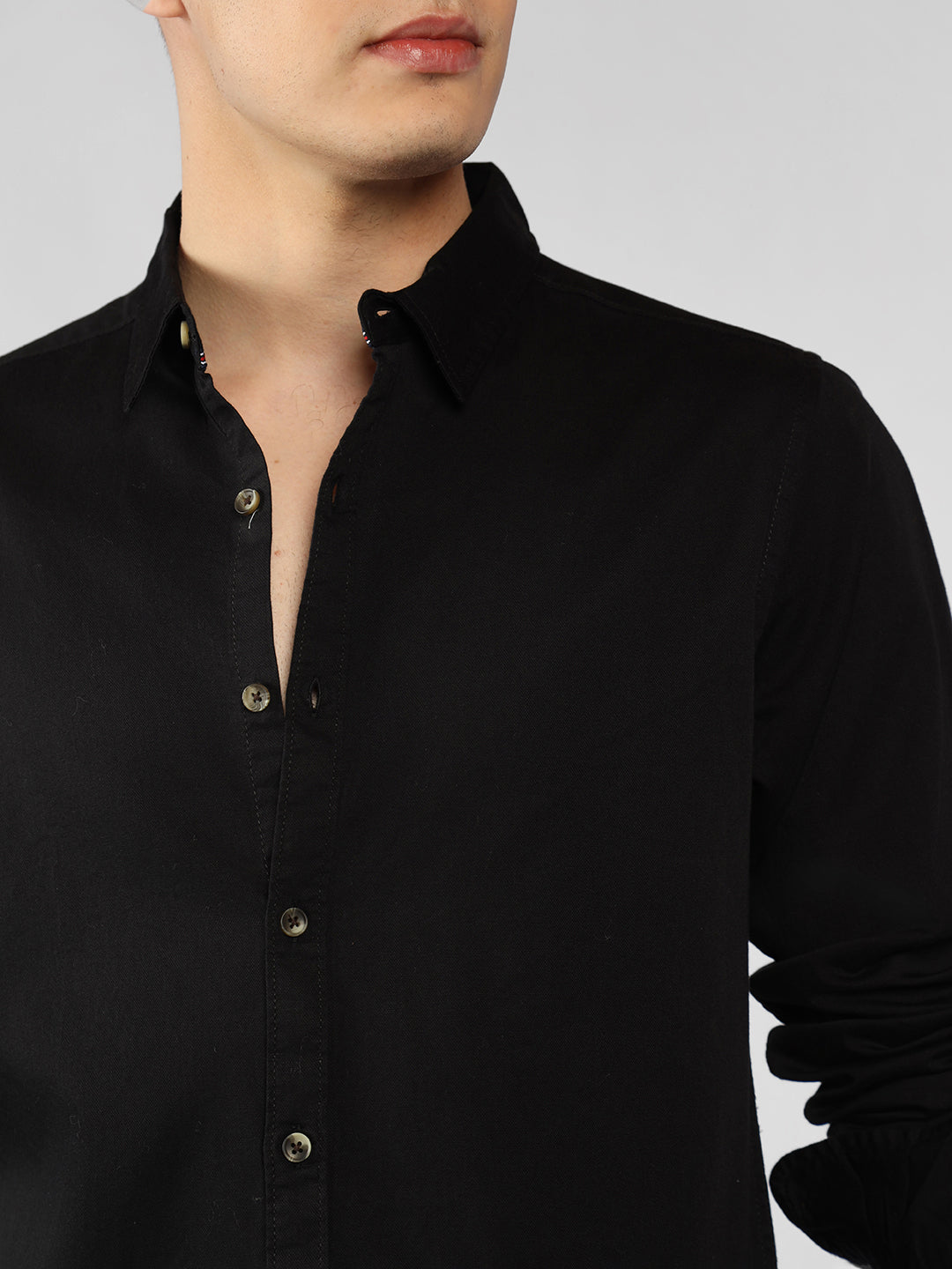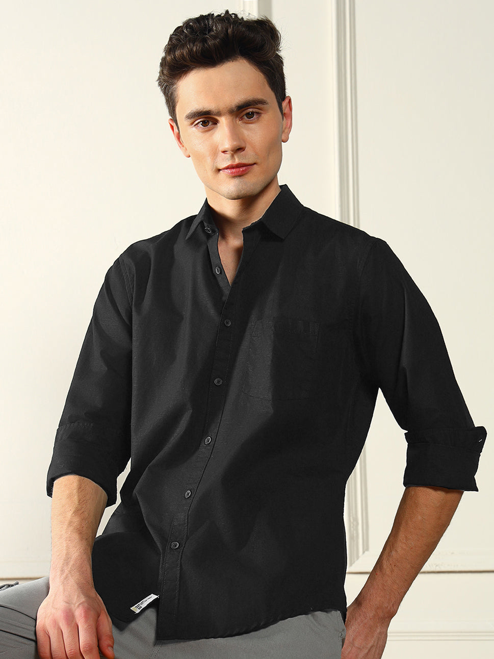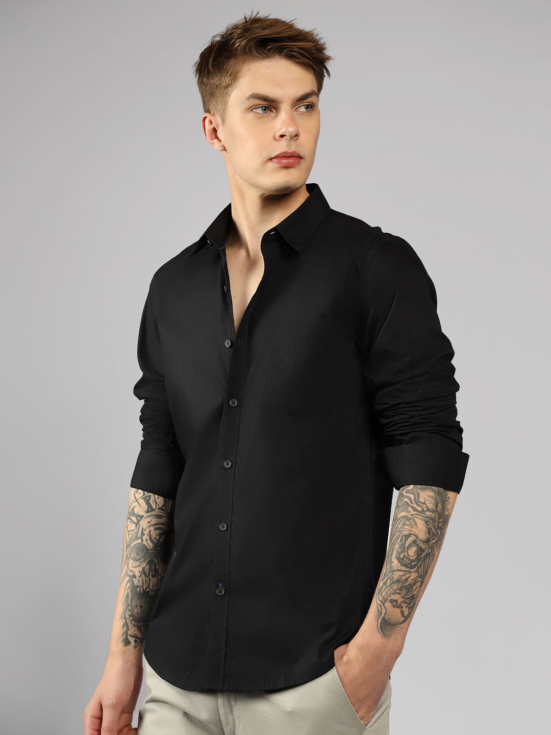 Men's Black Solid Spread Collar Full Sleeve Regular Fit Shirt