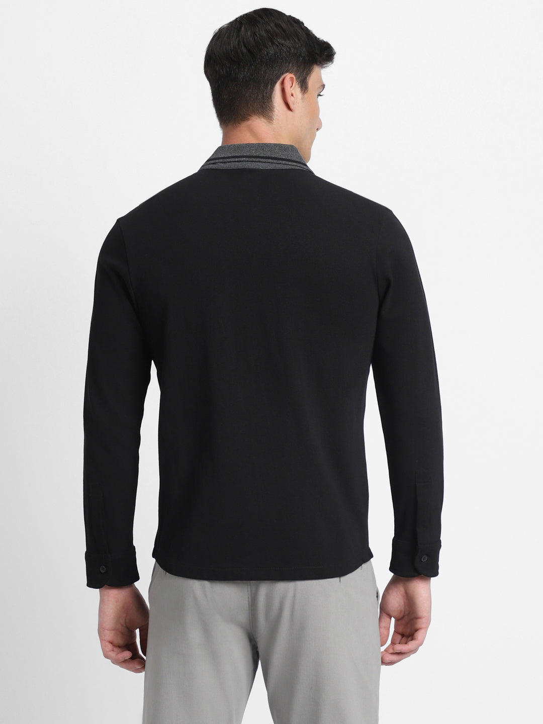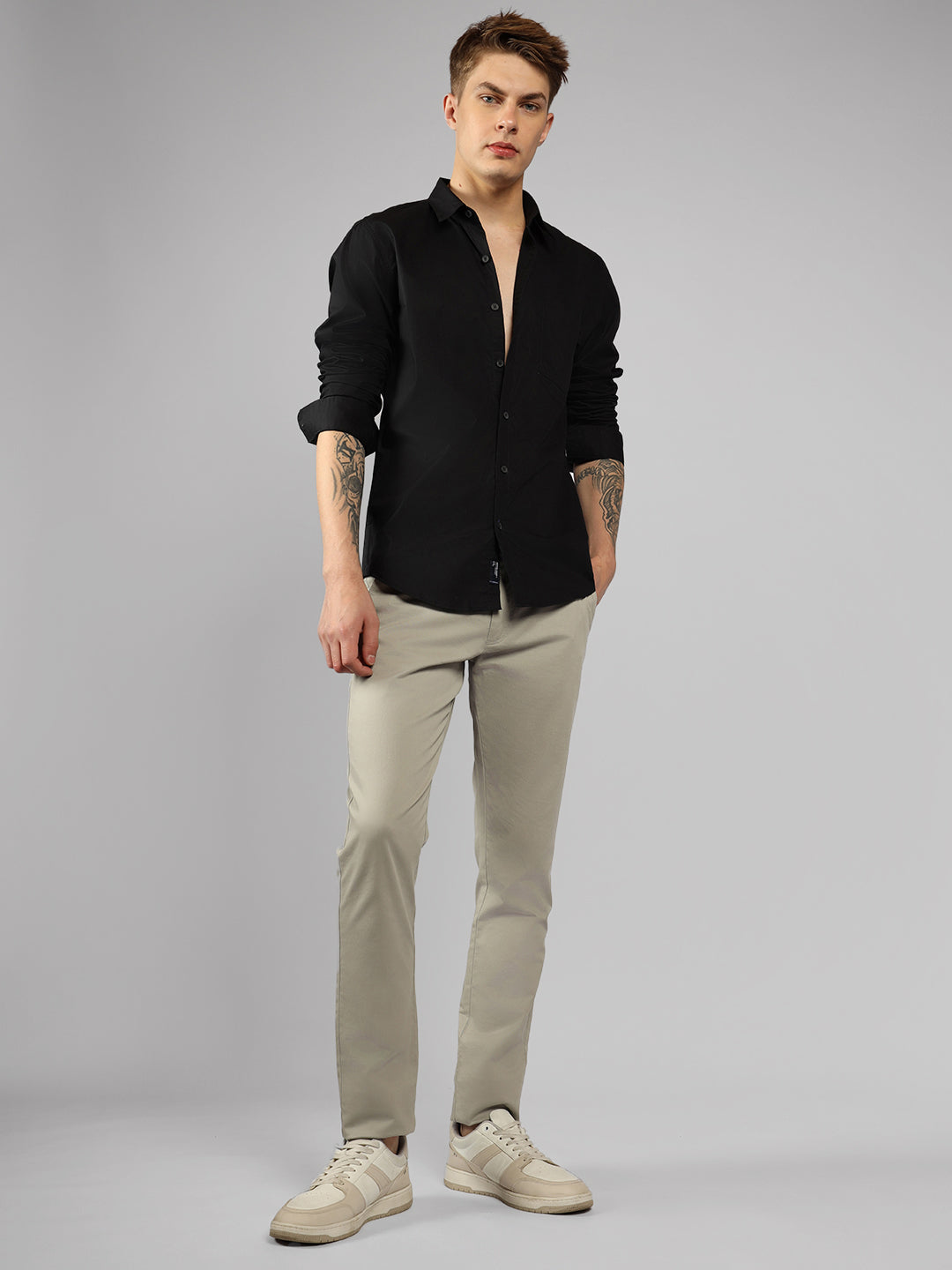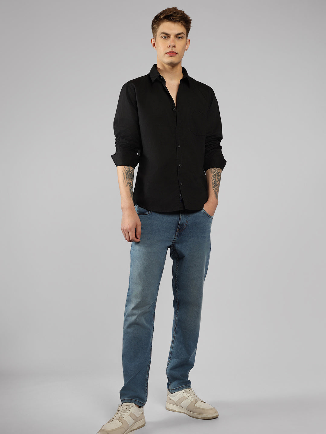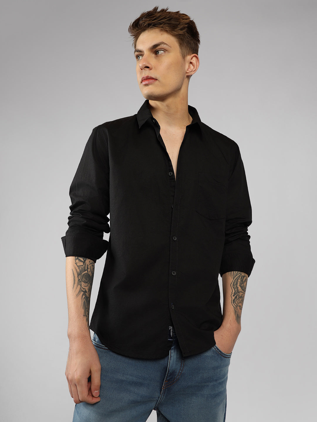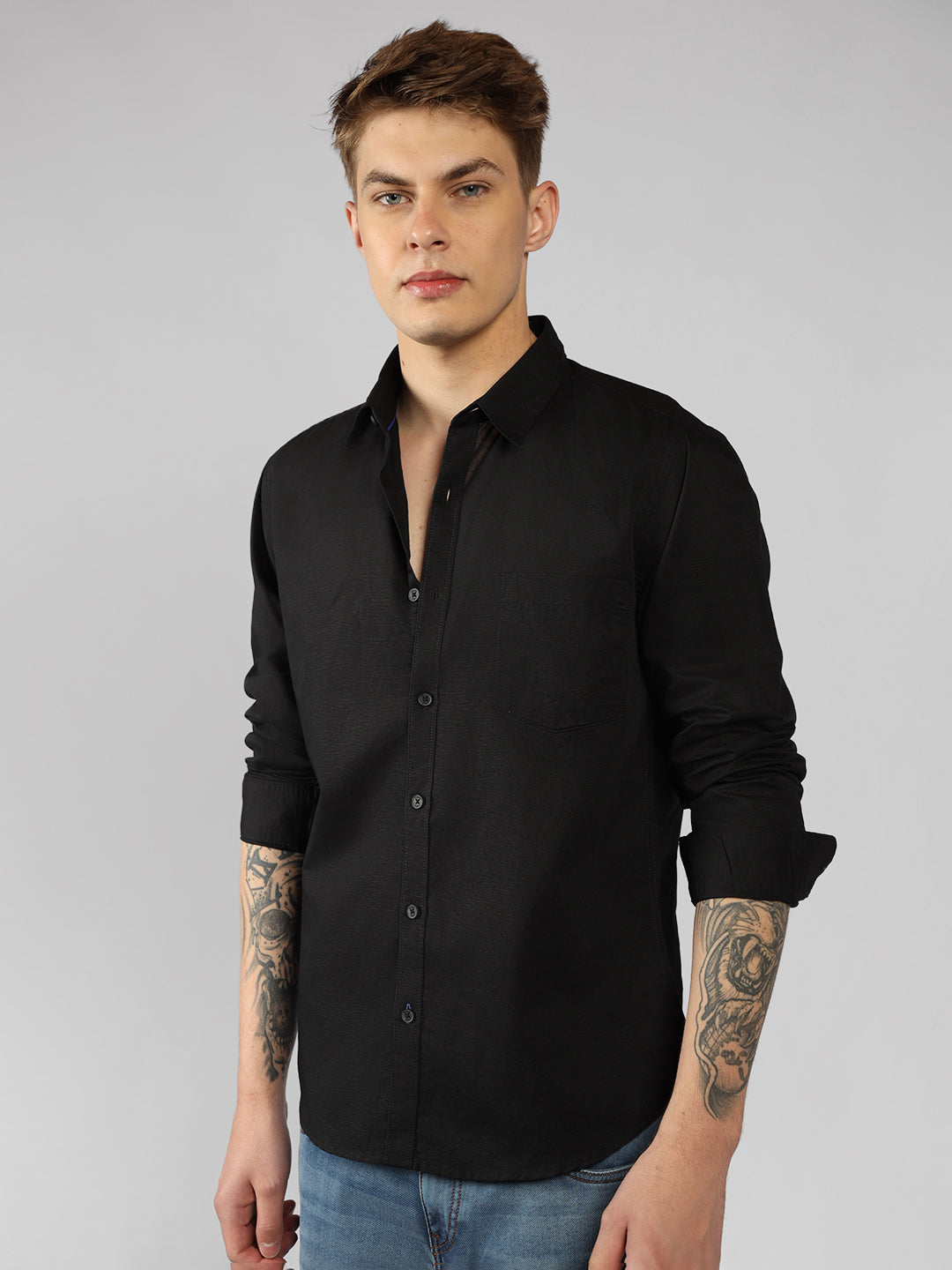 Men's Black Solid Spread Collar Full Sleeve Regular Fit Shirt