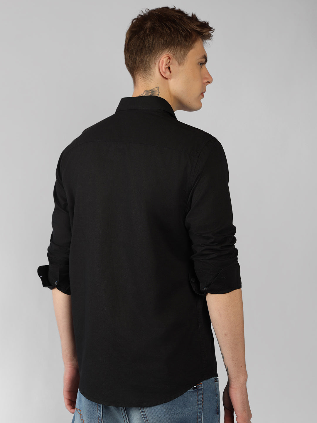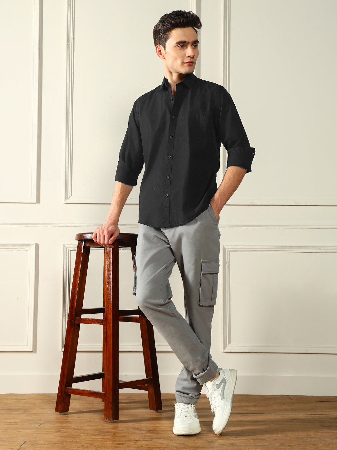 Men's Spread Collar Regular Fit Solid Black Casual Shirt
