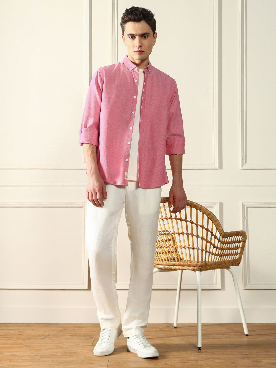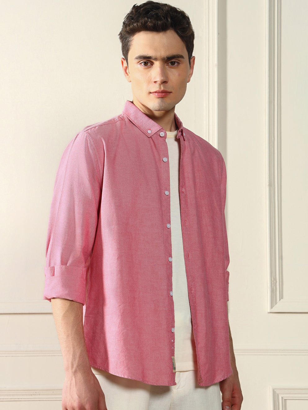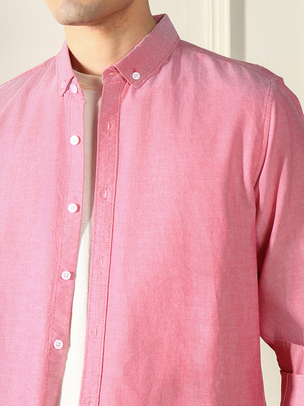 Men's Button Down Collar Regular Fit Solid Red Casual Shirt