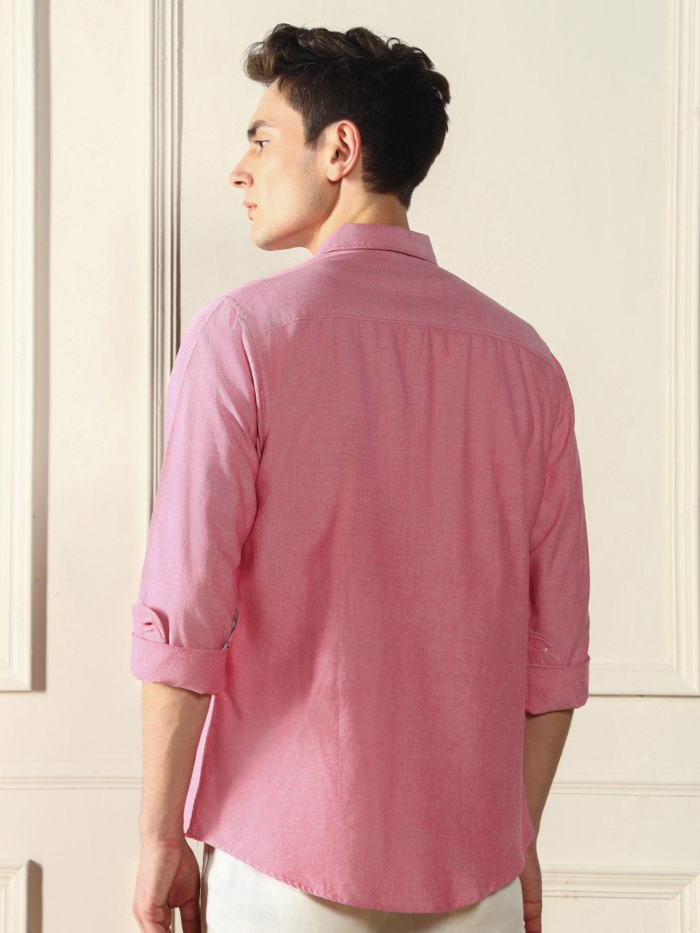 Men's Dusty Pink Solid Spread Collar Full Sleeve Regular Fit Shirt