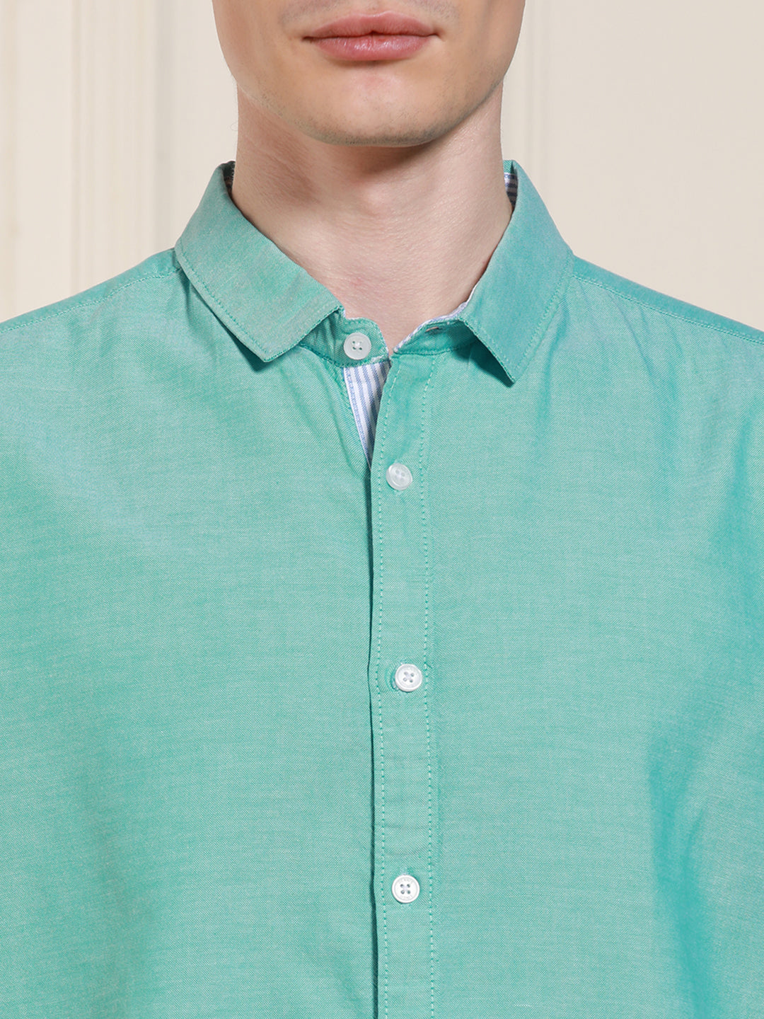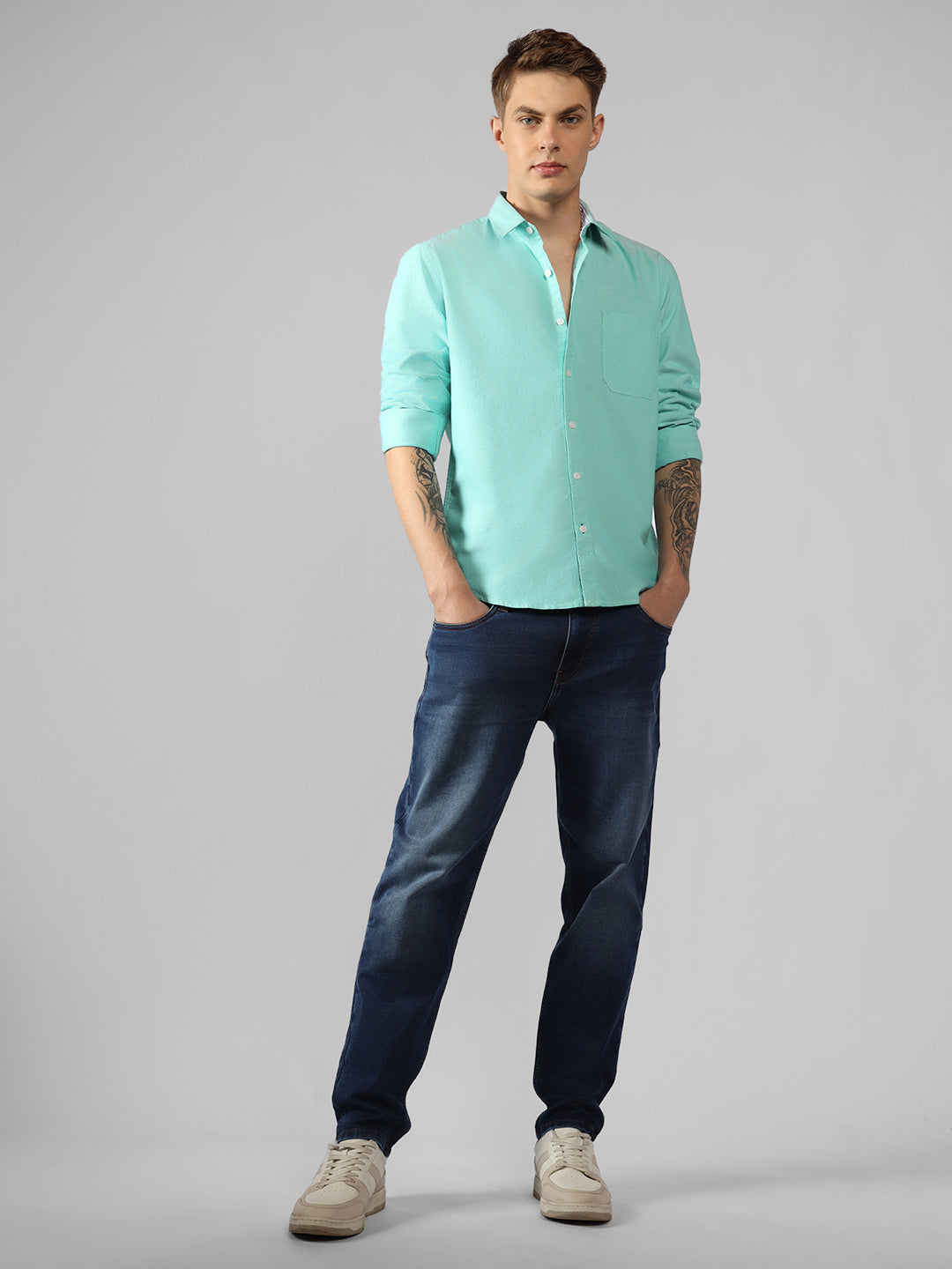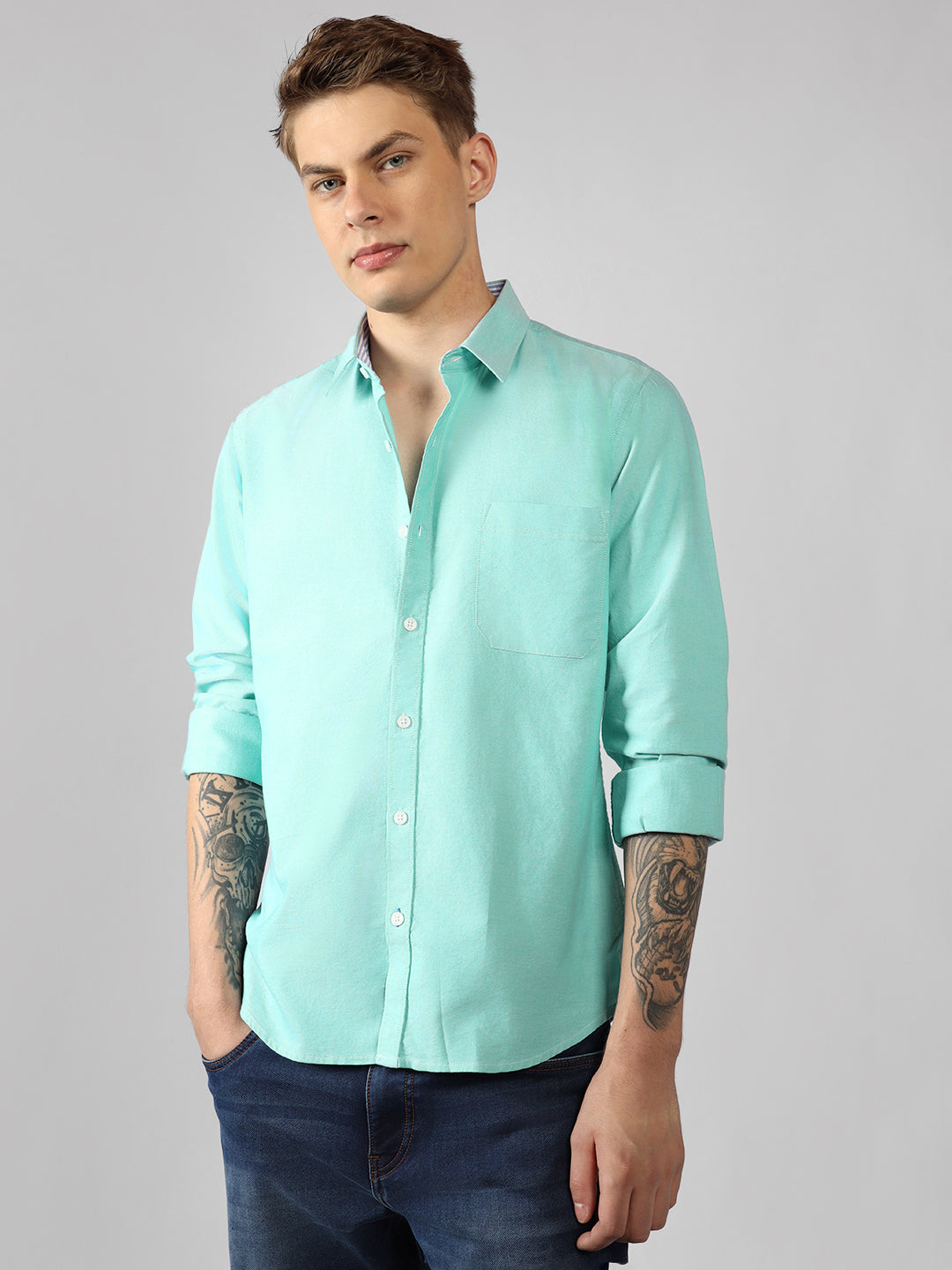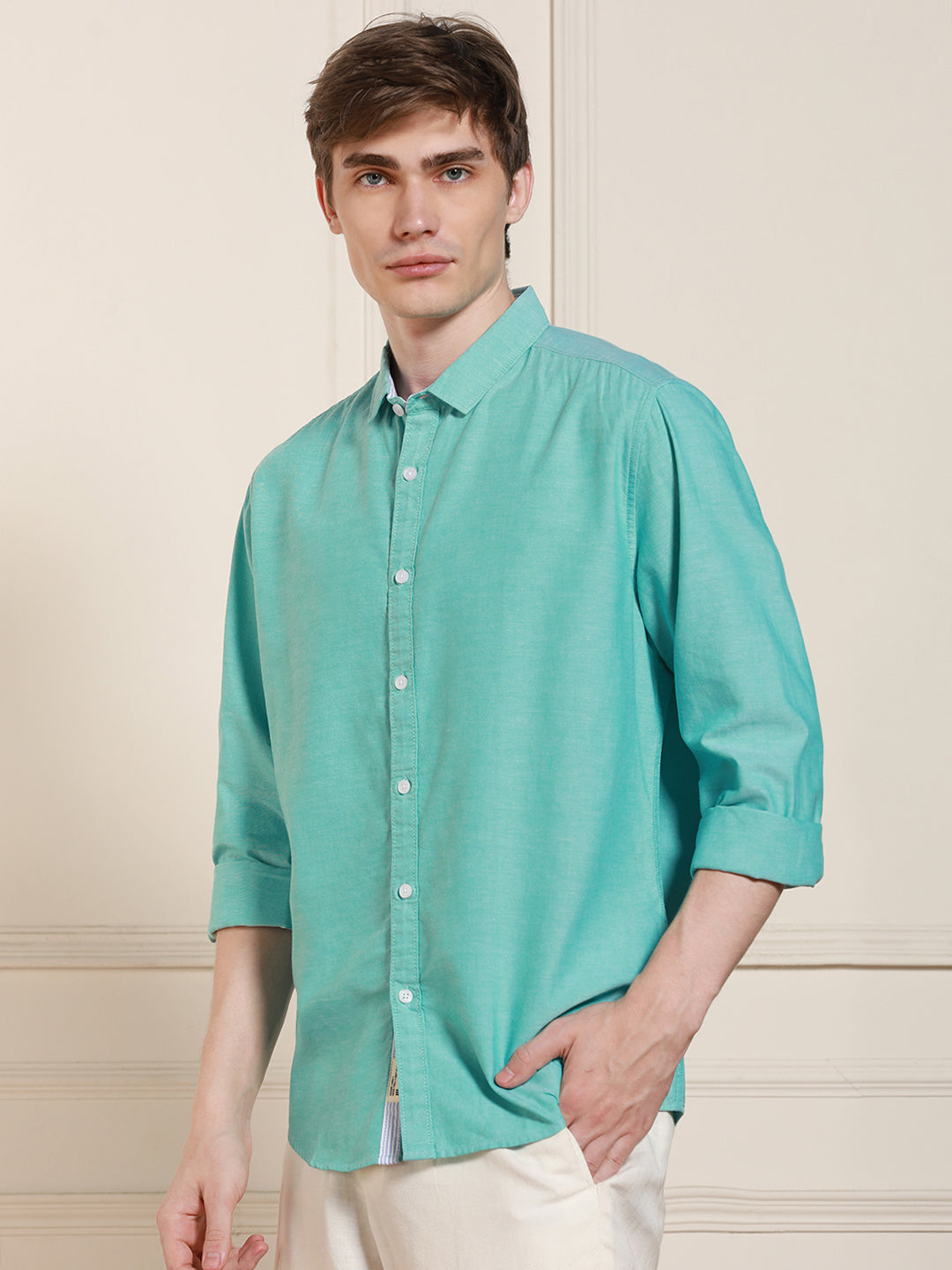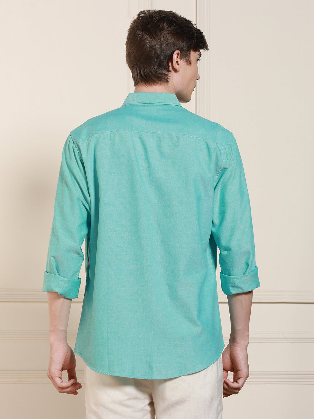 Men's Teal Solid Spread Collar Full Sleeve Regular Fit Shirt