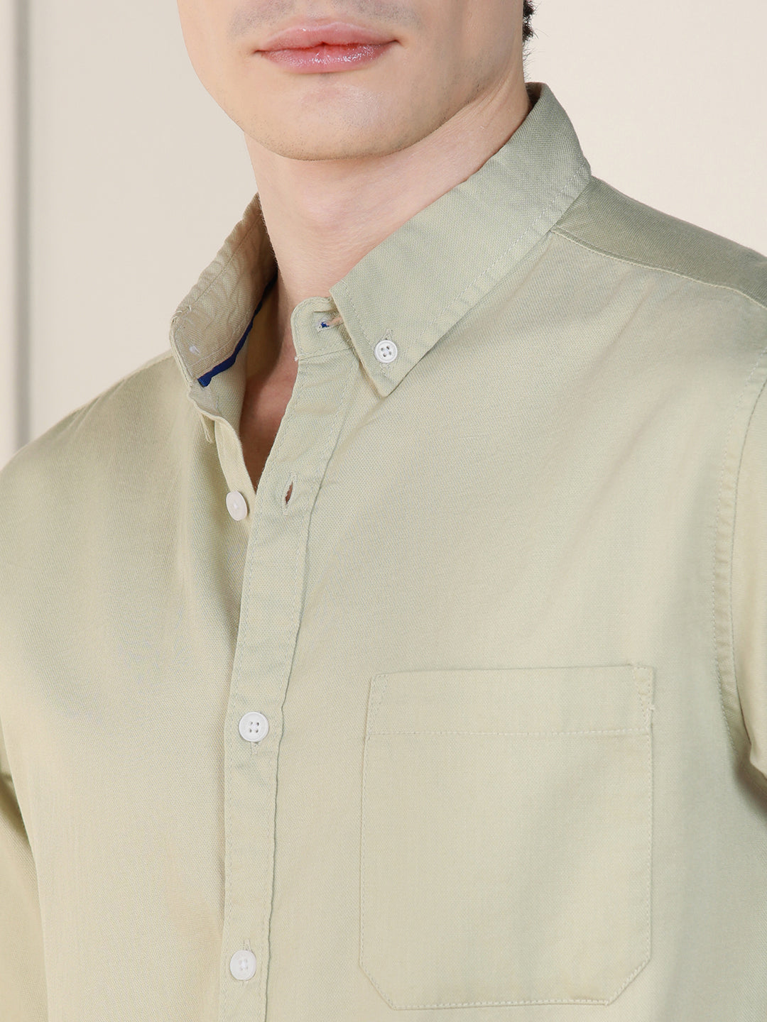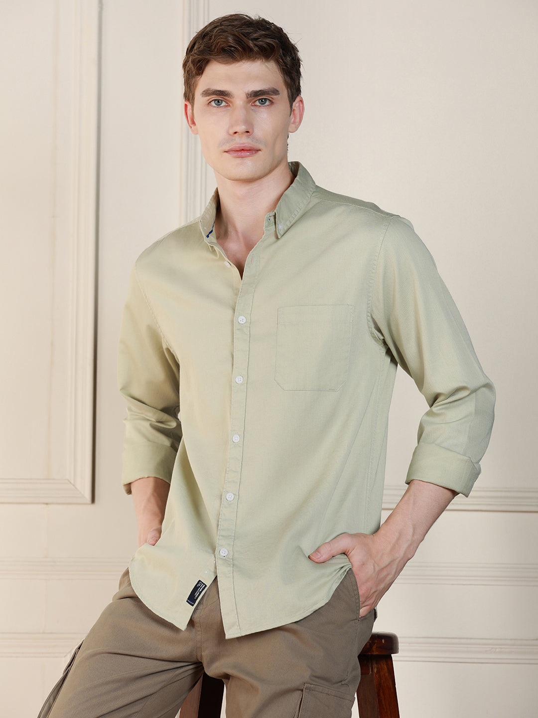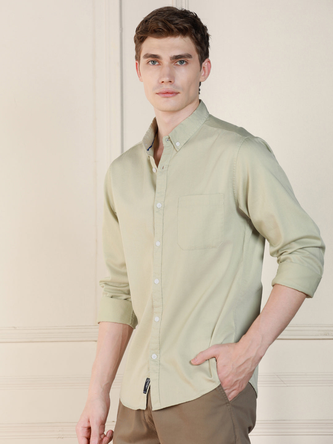 Men's Green Solid Button-Down Collar Long Sleeves Regular Fit Casual Shirt