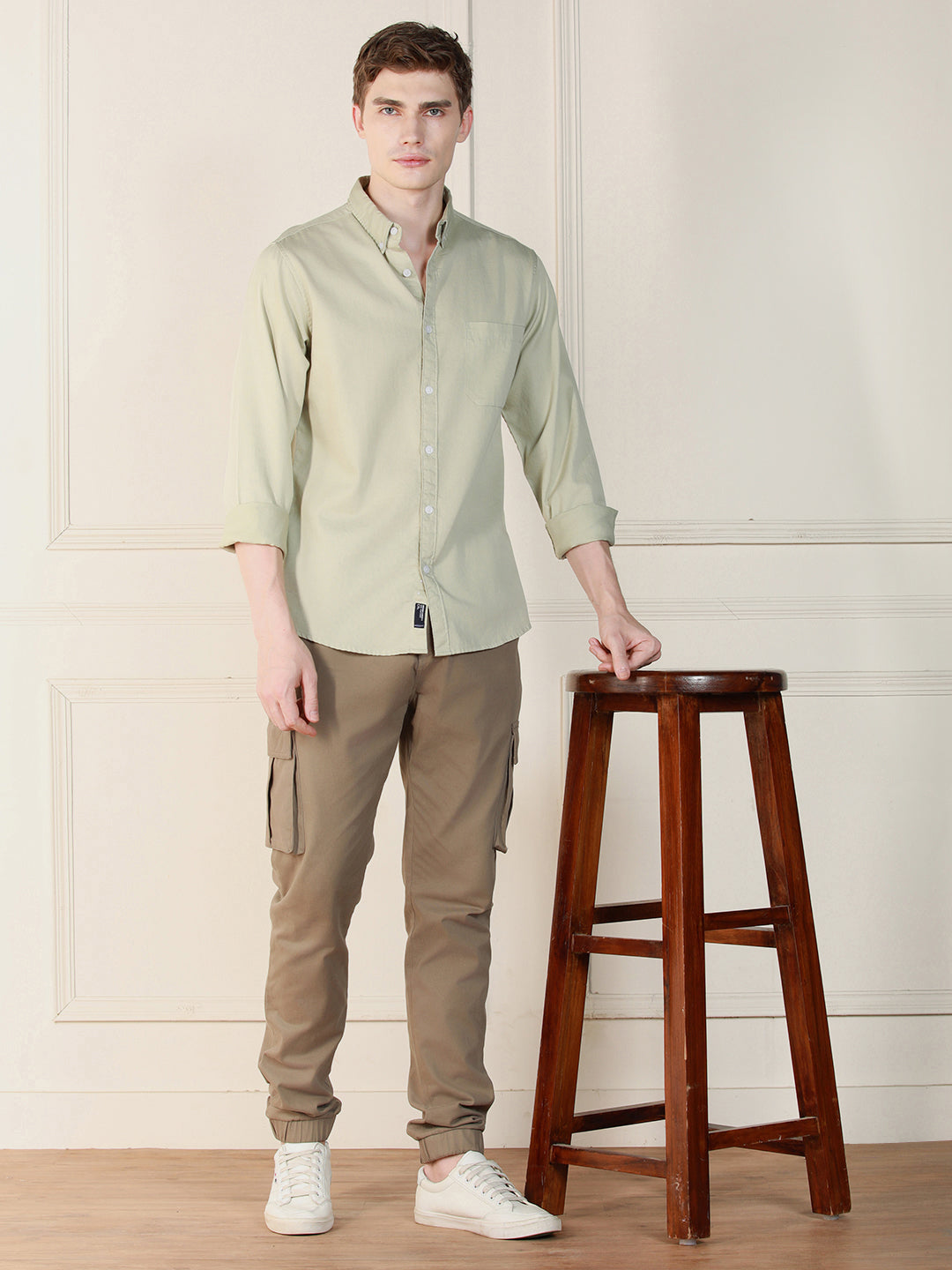 Men's Button Down Collar Regular Fit Solid Khaki Casual Shirts