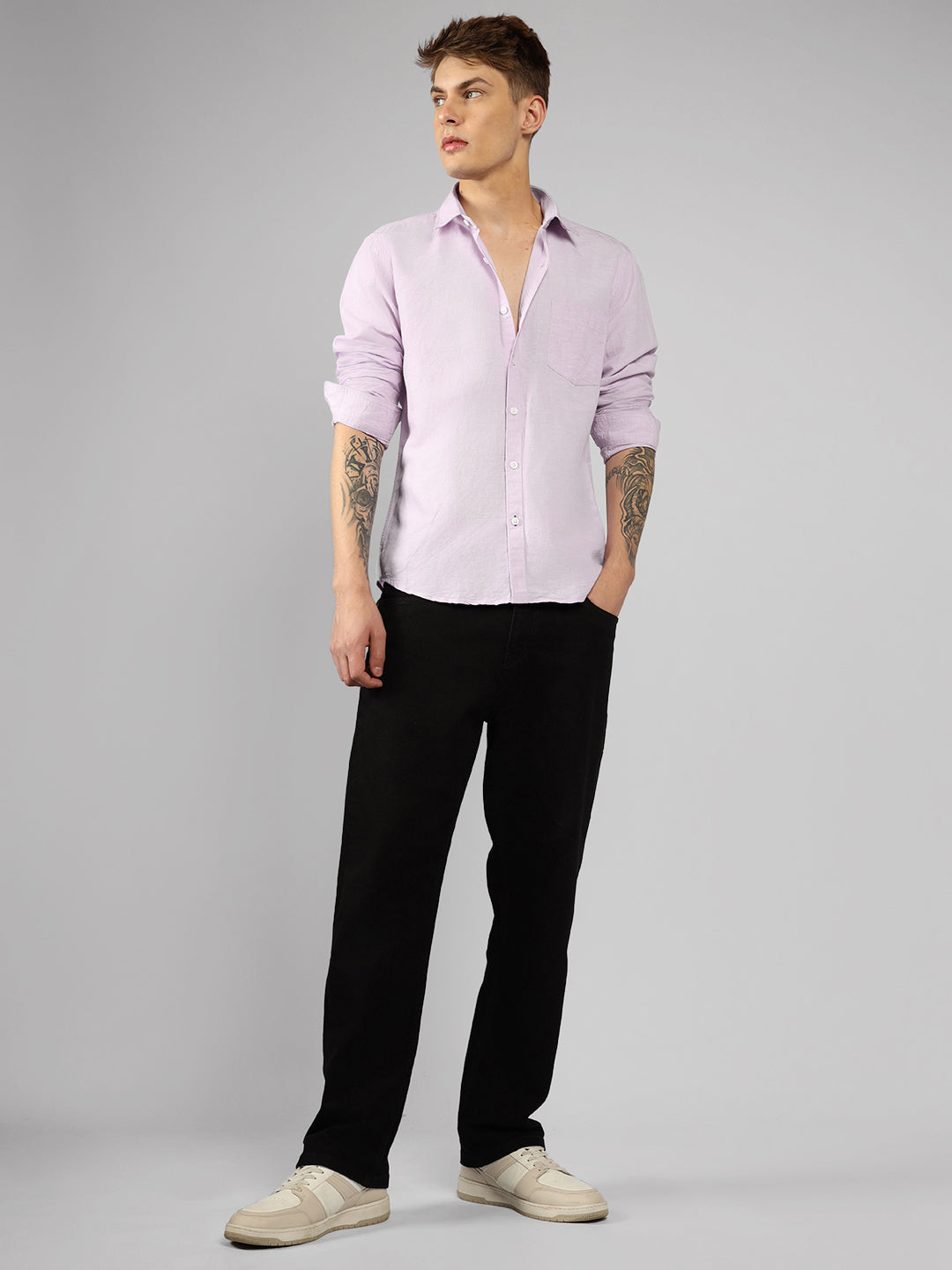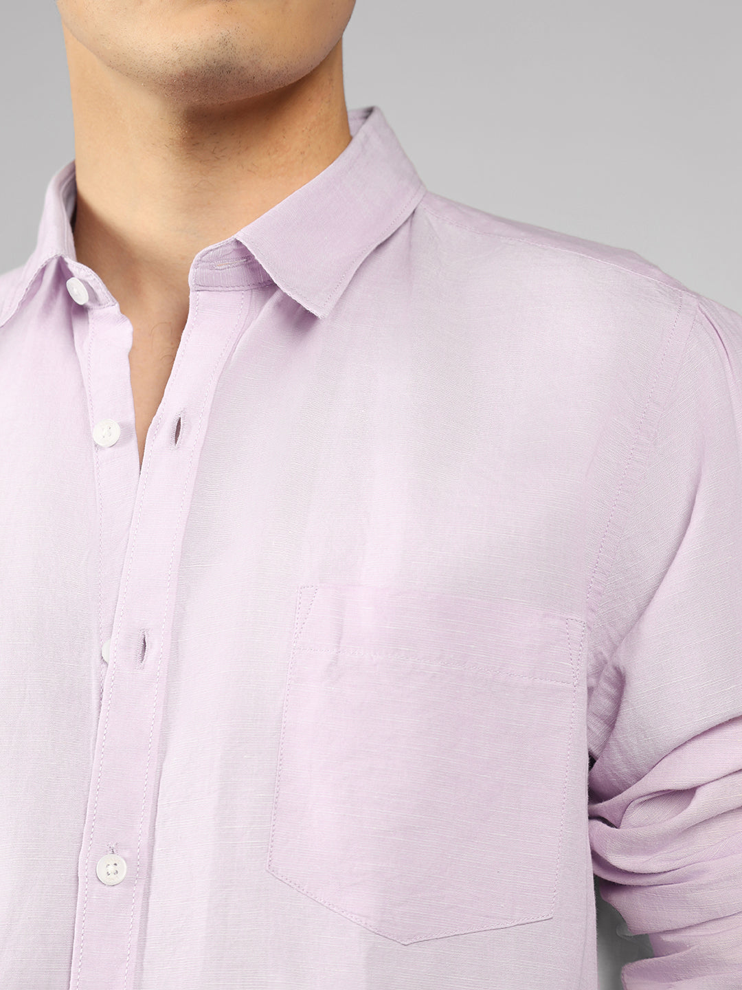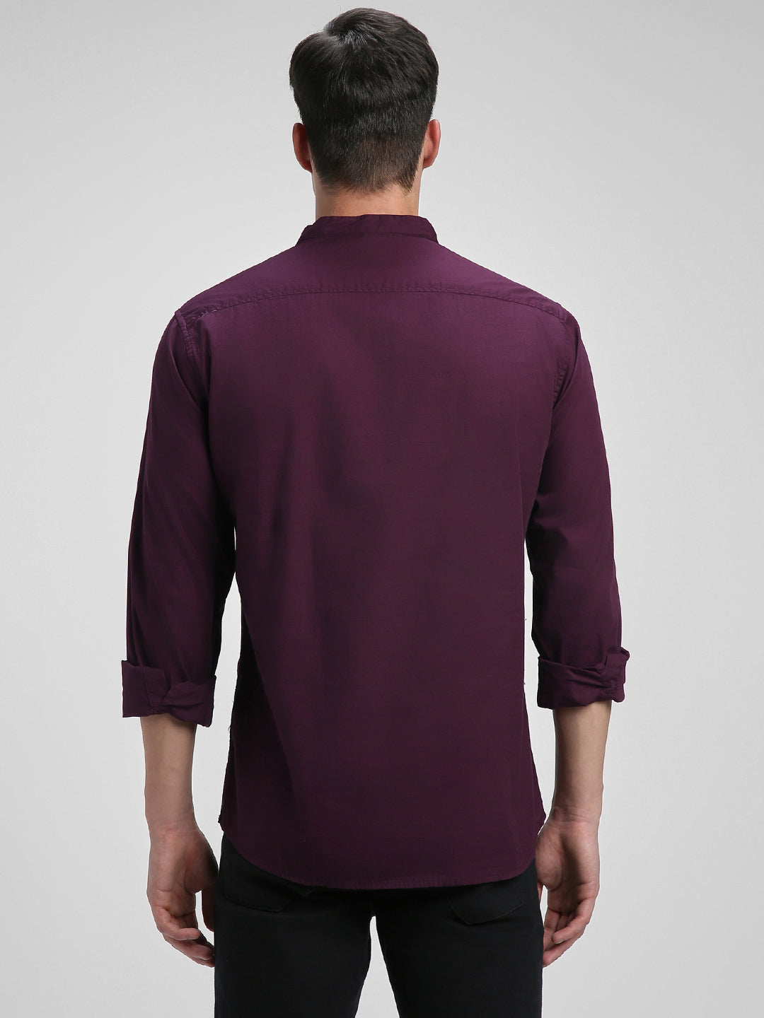 Men's Lilac Solid Mandarin Collar Long Sleeves Regular Fit Casual Shirt