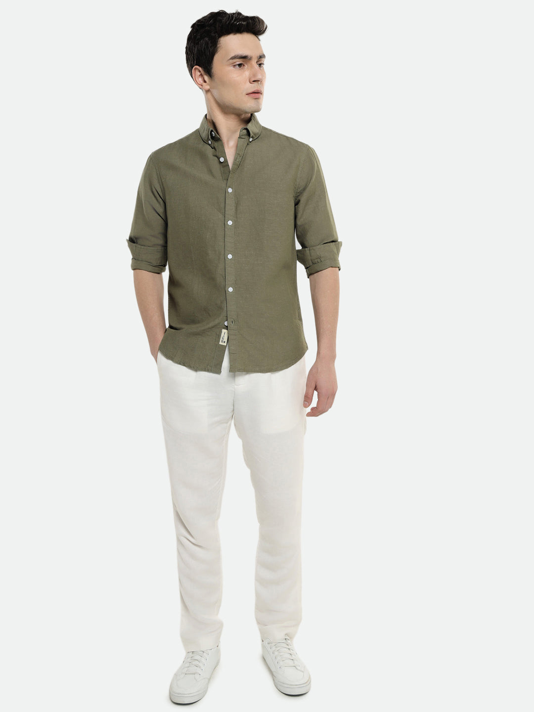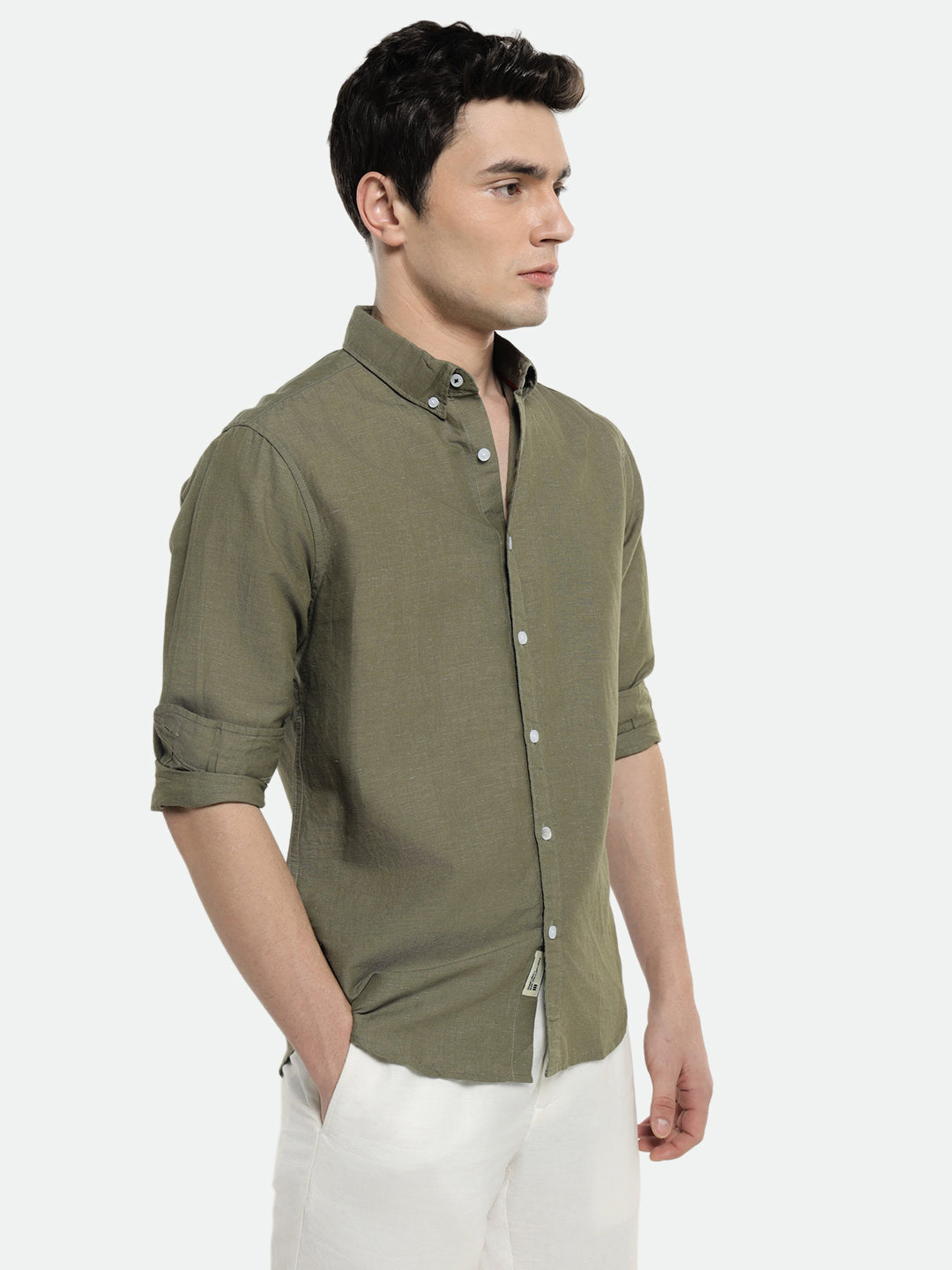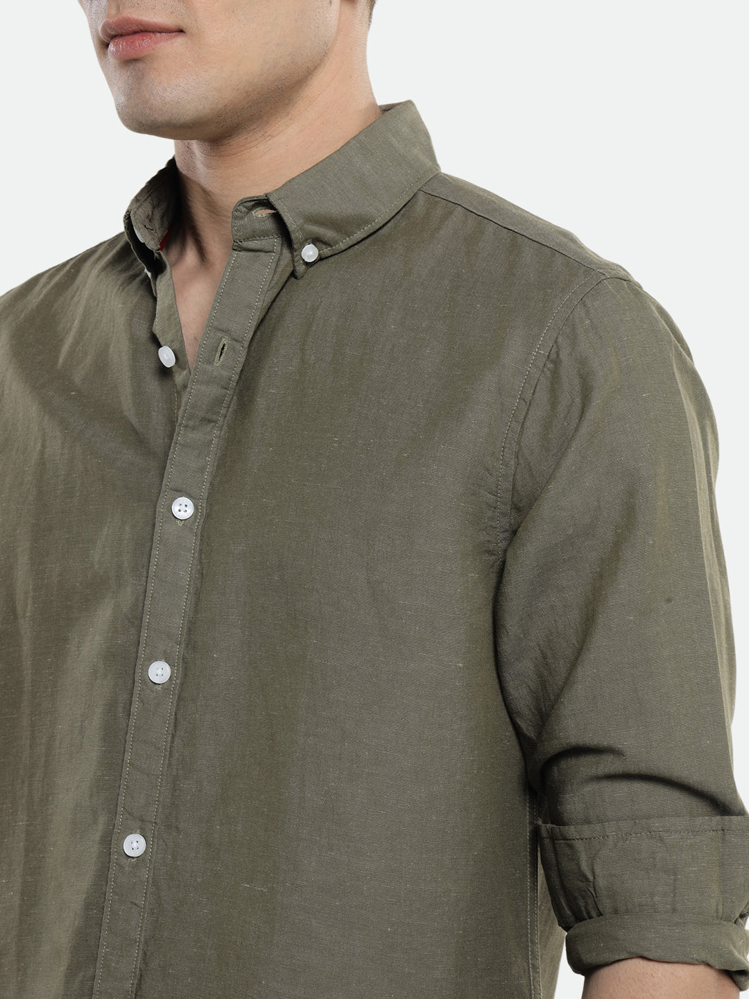 Men's Olive Solid Button down Collar Cotton Casual Shirt