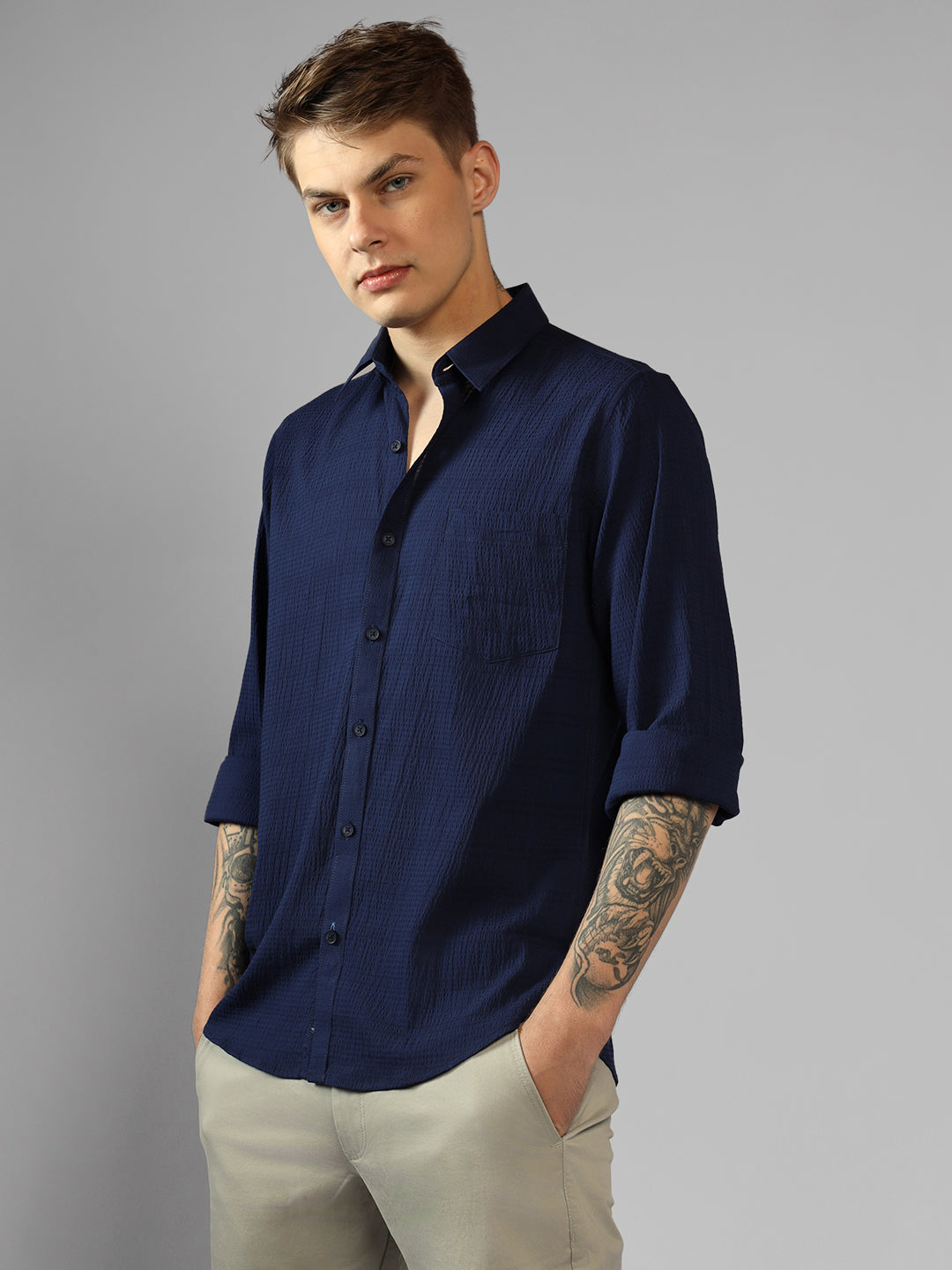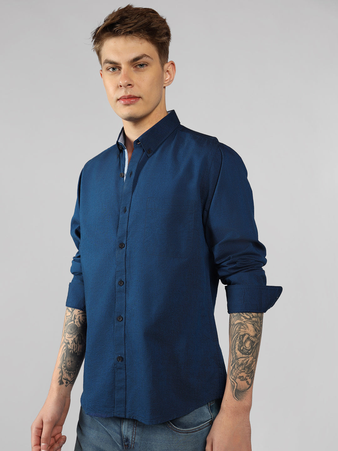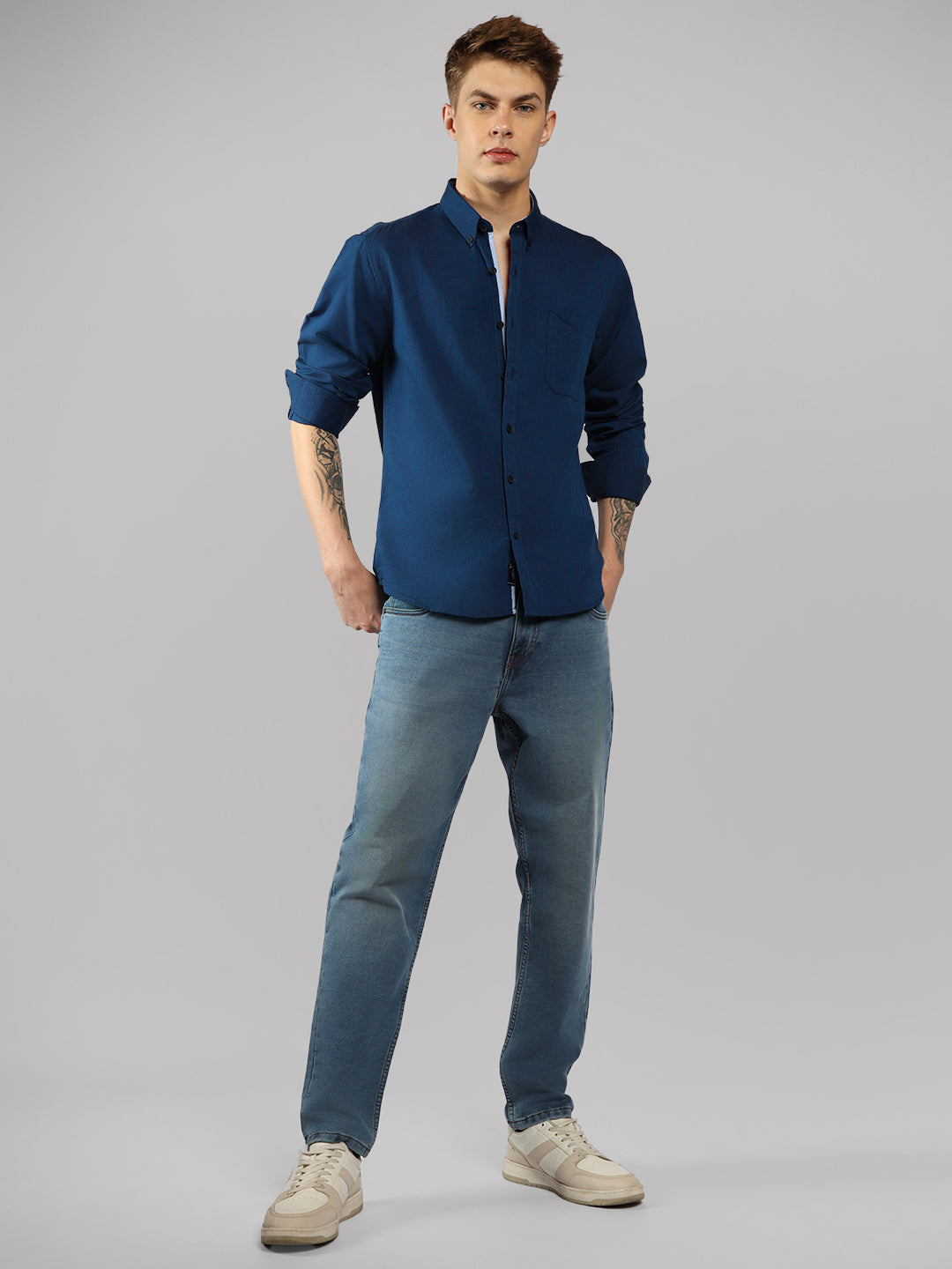 Men's Indigo Solid Spread Collar Full Sleeve Regular Fit Shirt