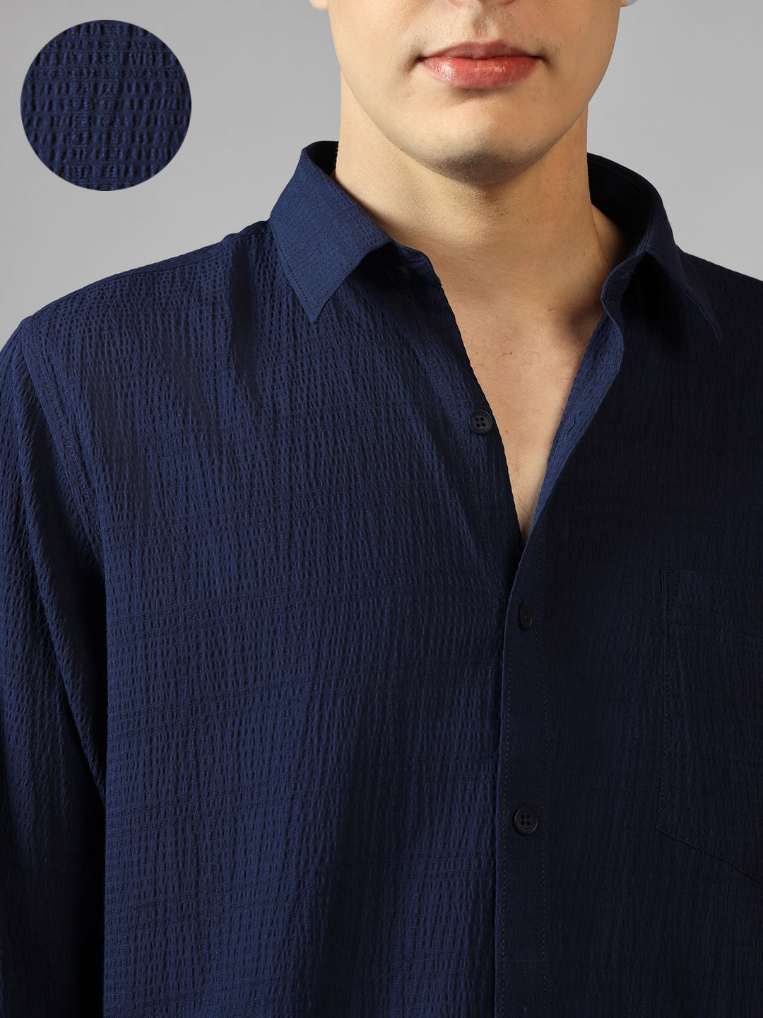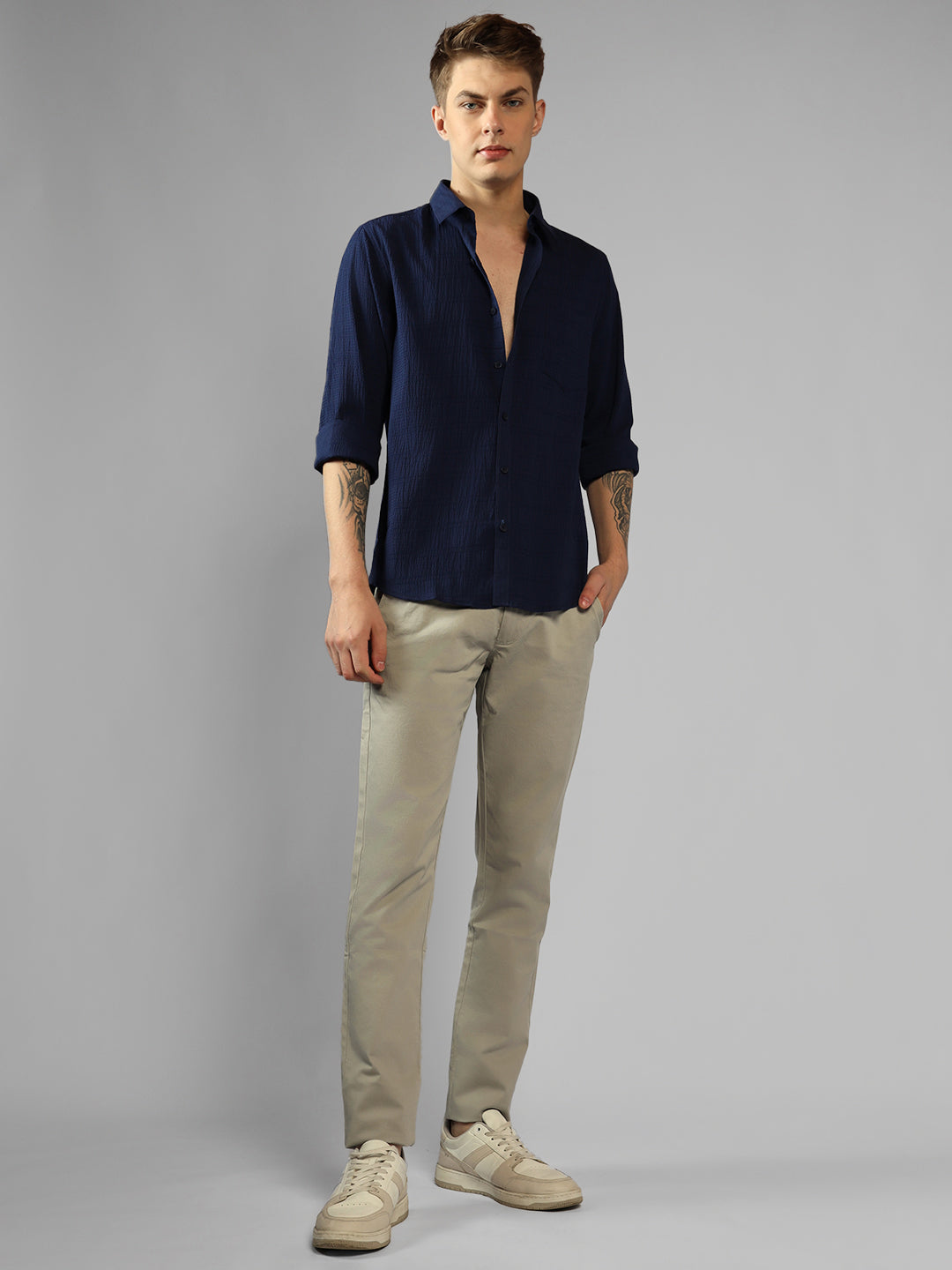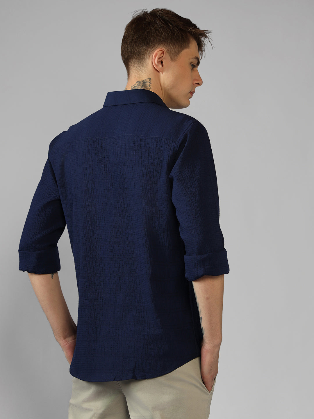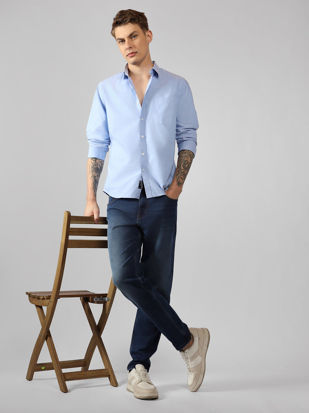 Men's Indigo Solid Spread Collar Full Sleeve Regular Fit Shirt