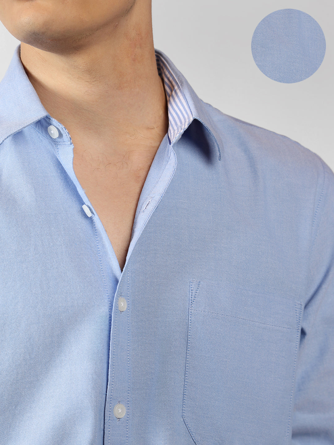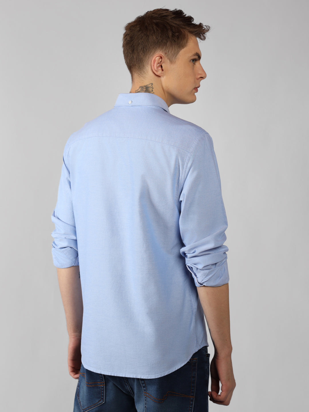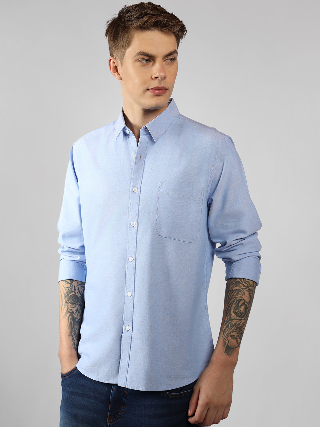 Men's Light Blue Solid Spread Collar Full Sleeve Regular Fit Shirt