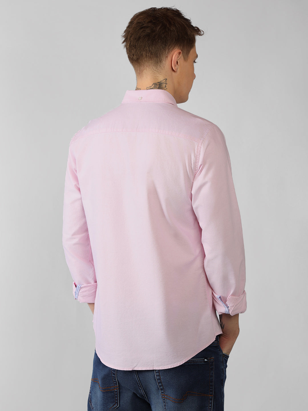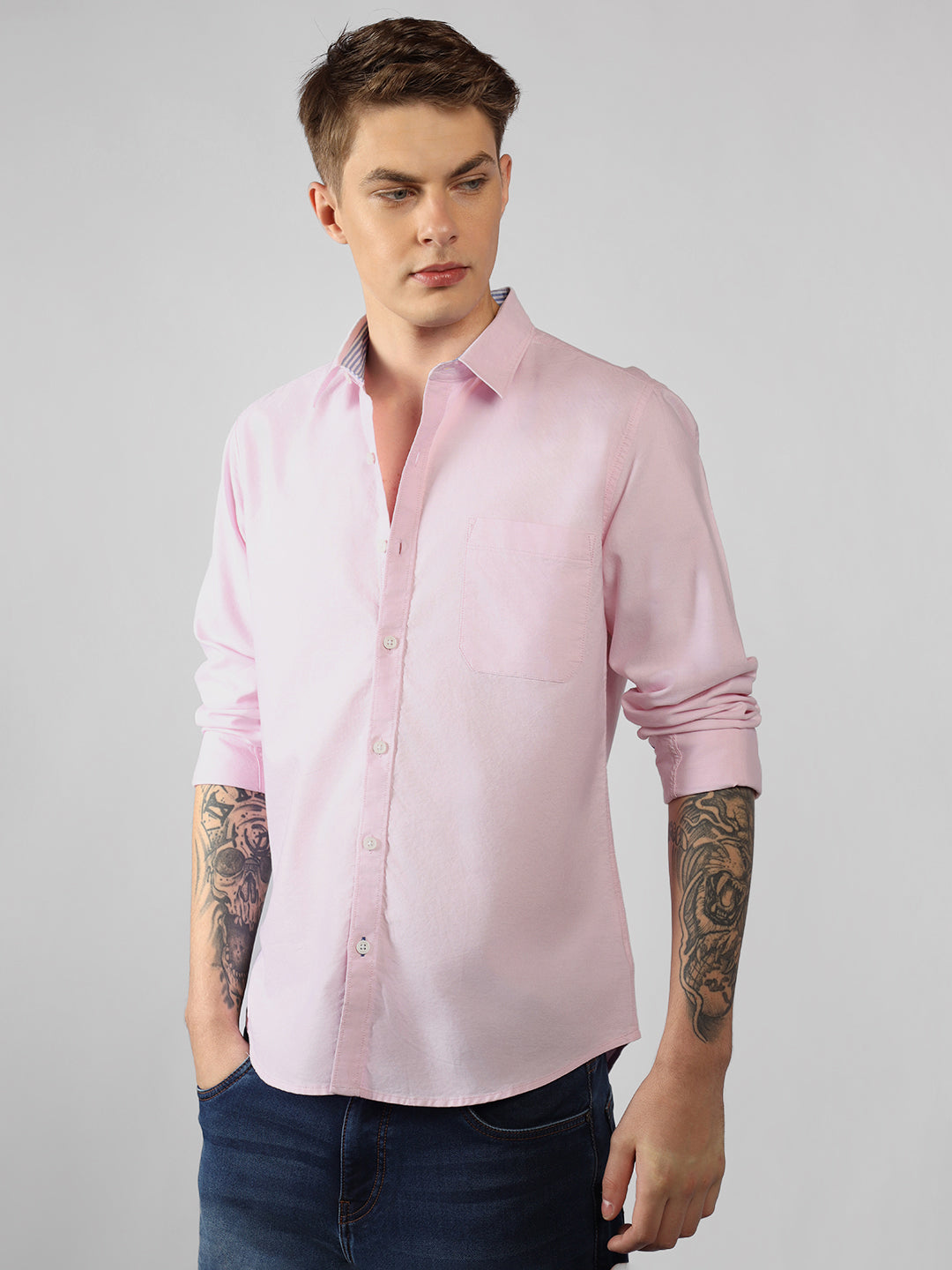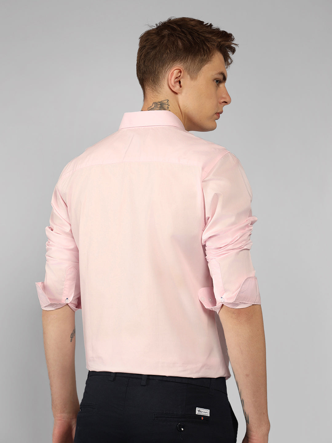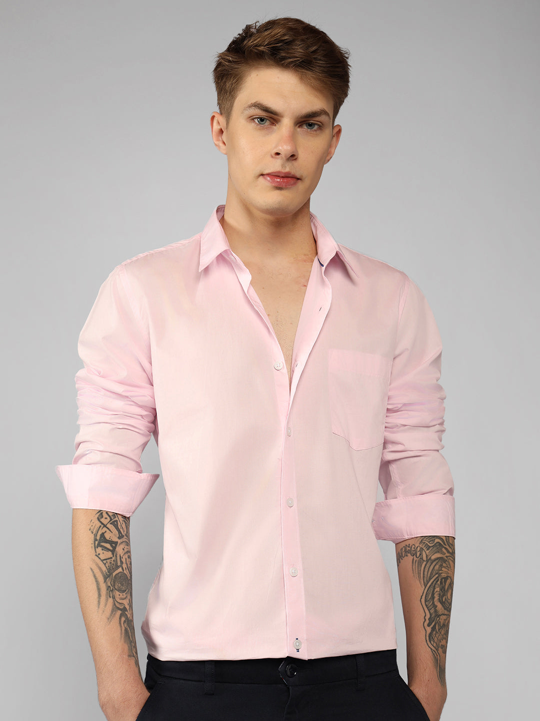 Men's Light Pink Solid Spread Collar Full Sleeve Regular Fit Shirt