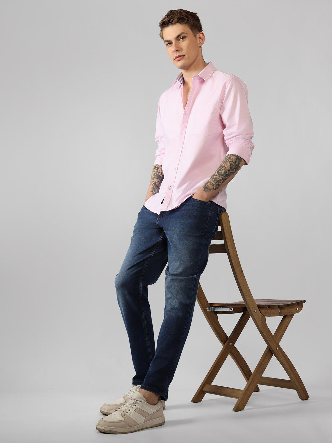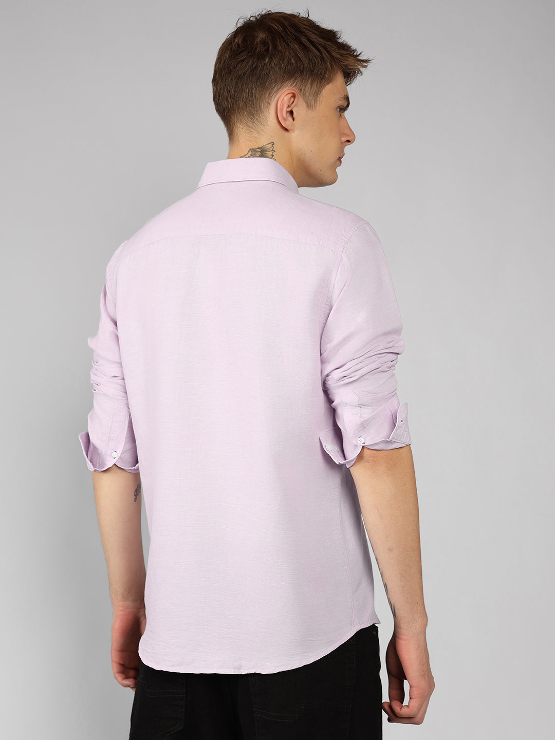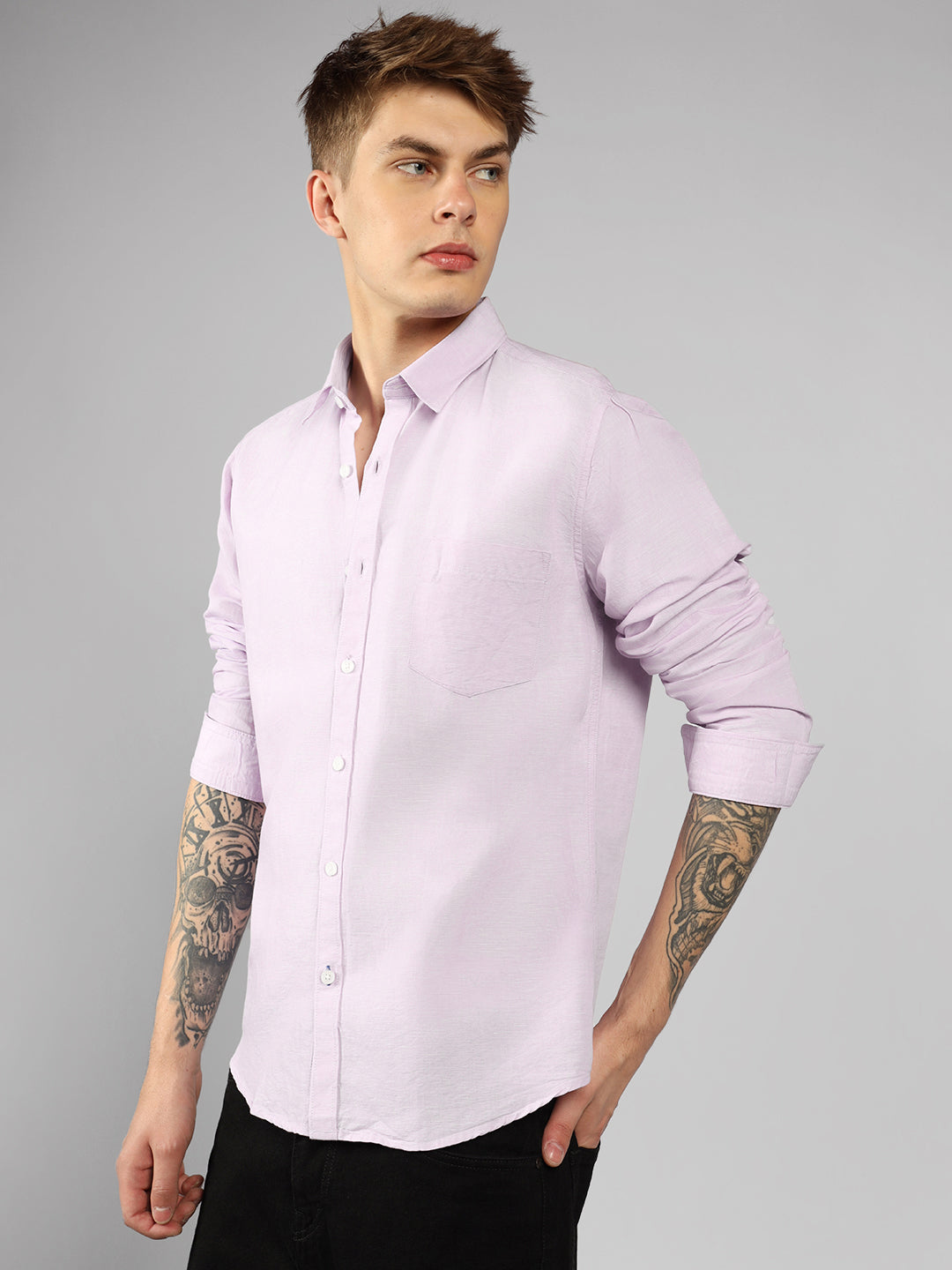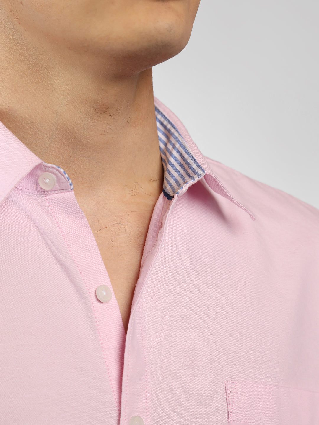Men's Light Pink Solid Spread Collar Full Sleeve Regular Fit Shirt