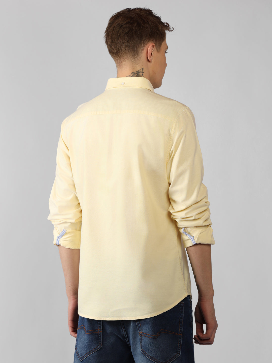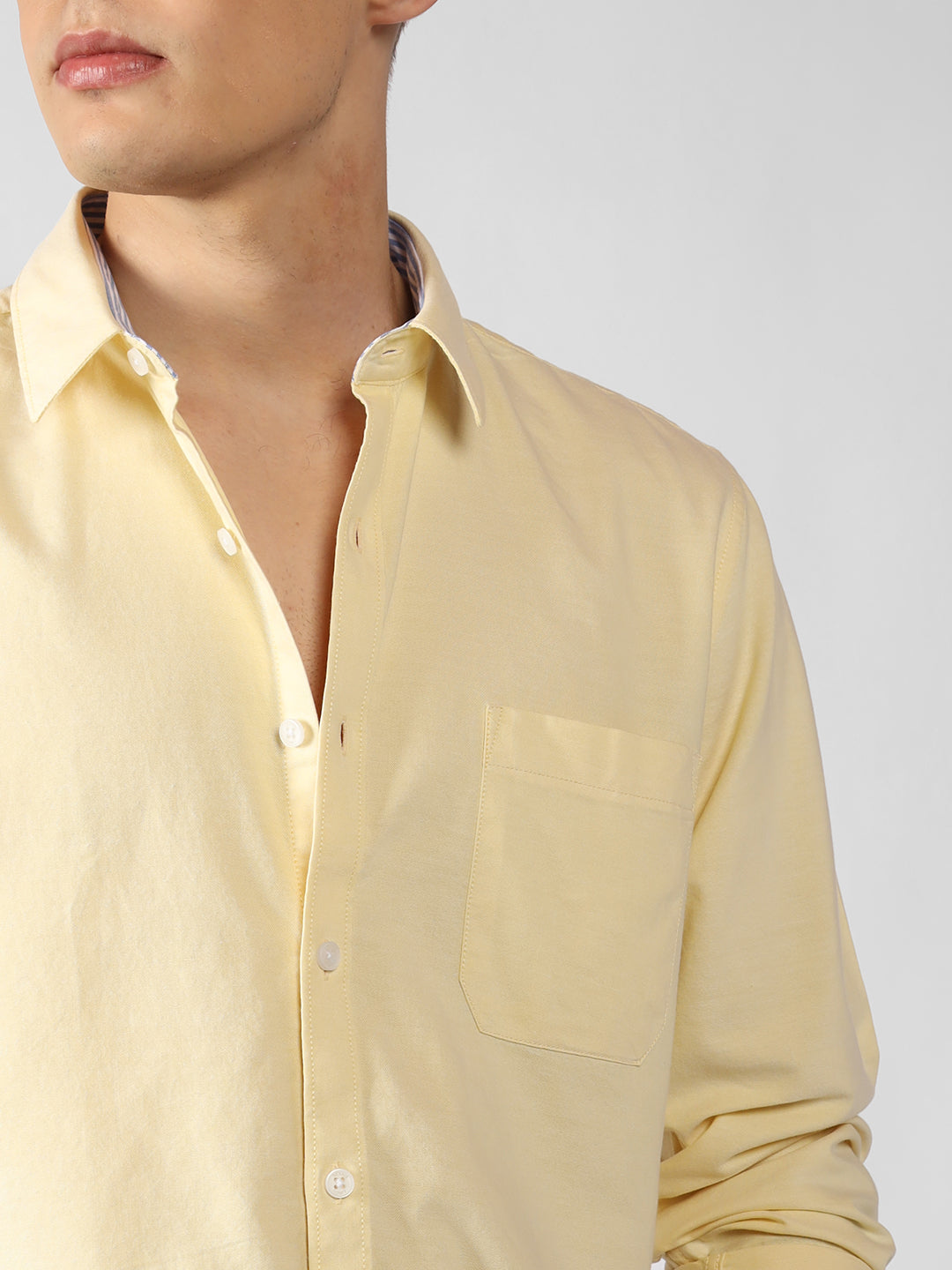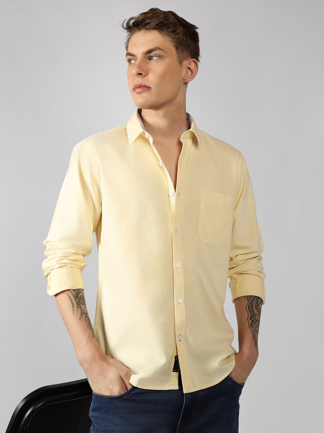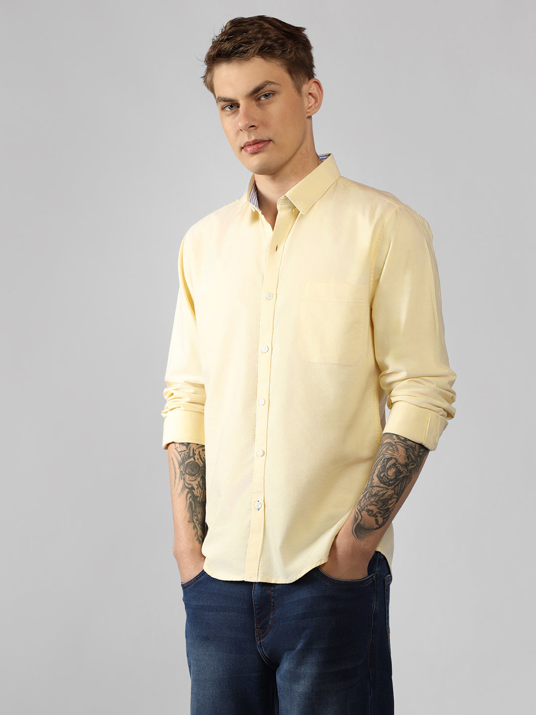 Men's Yellow Solid Spread Collar Full Sleeve Regular Fit Shirt
