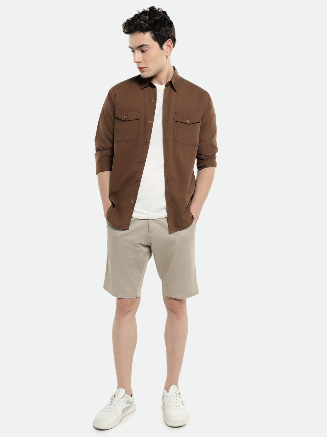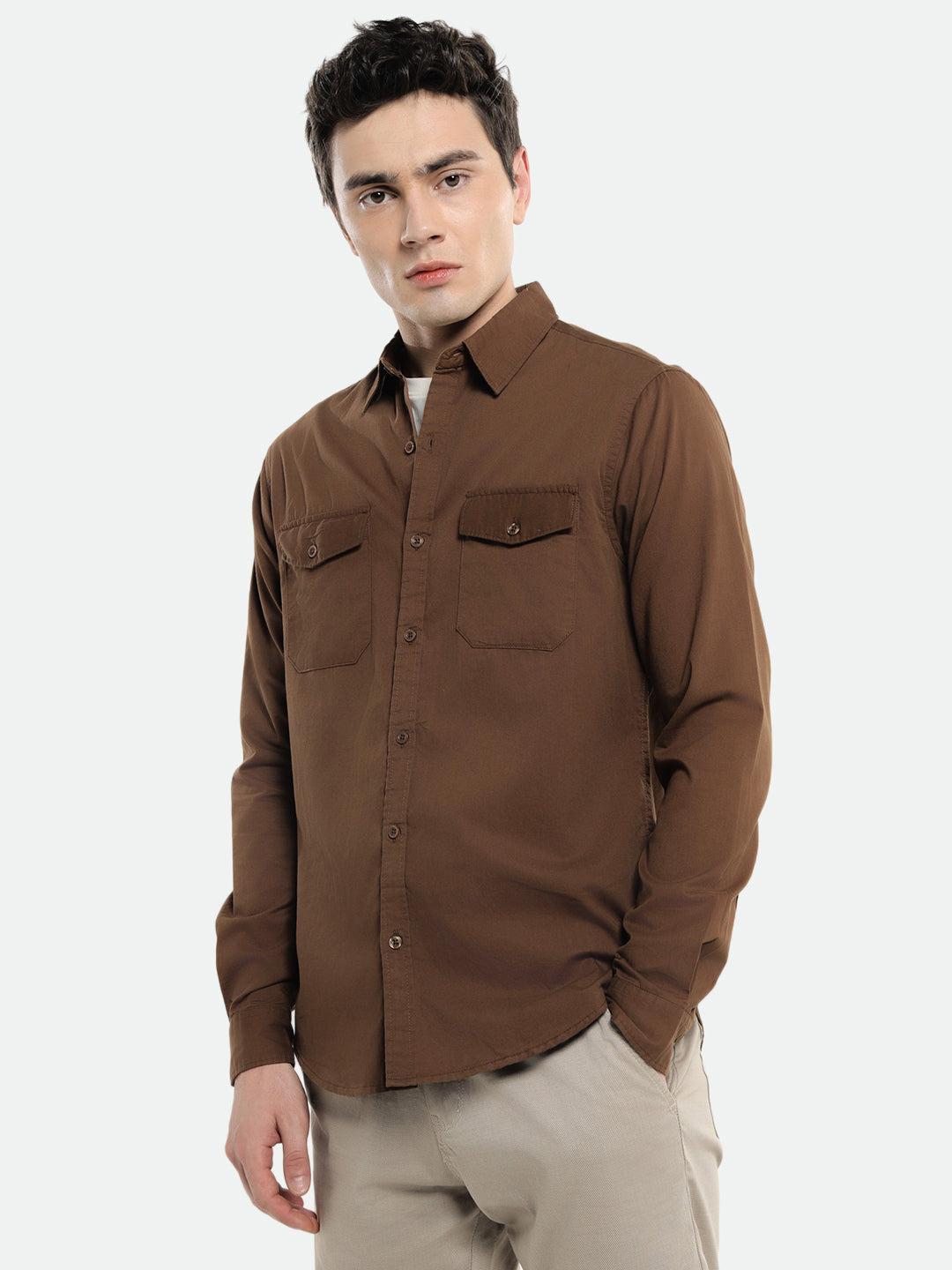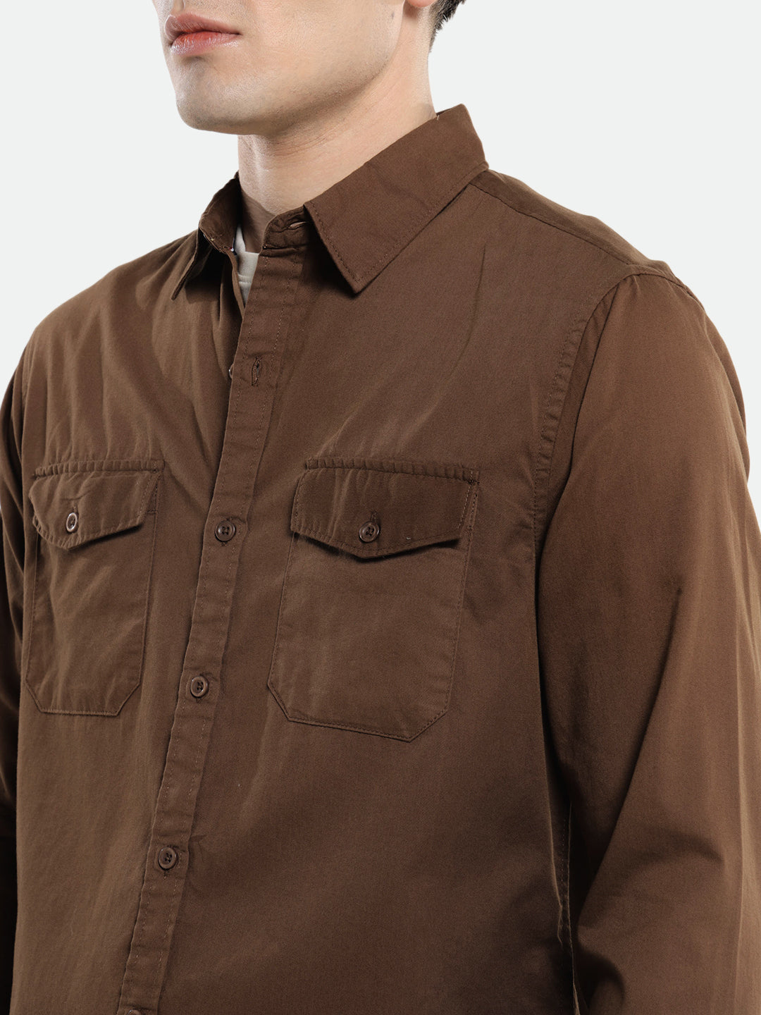 Men's Spread Collar Regular Fit Solid Brown Casual Shirt