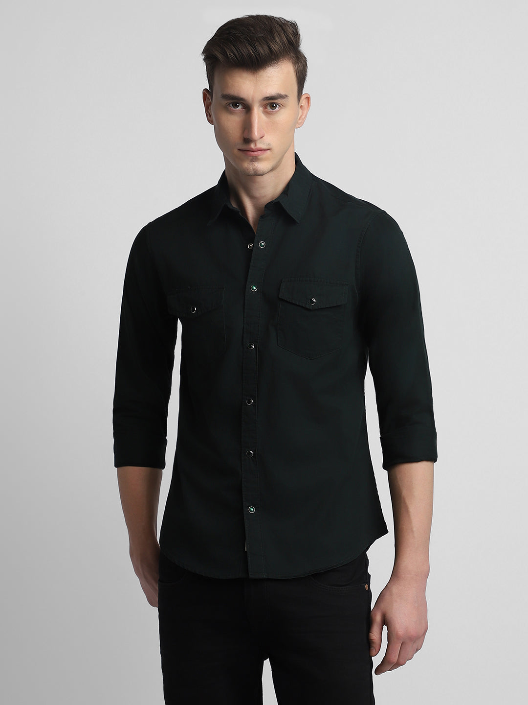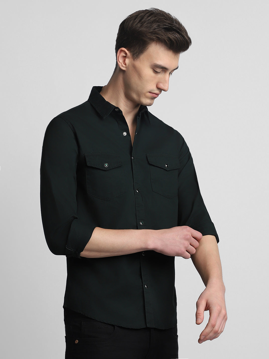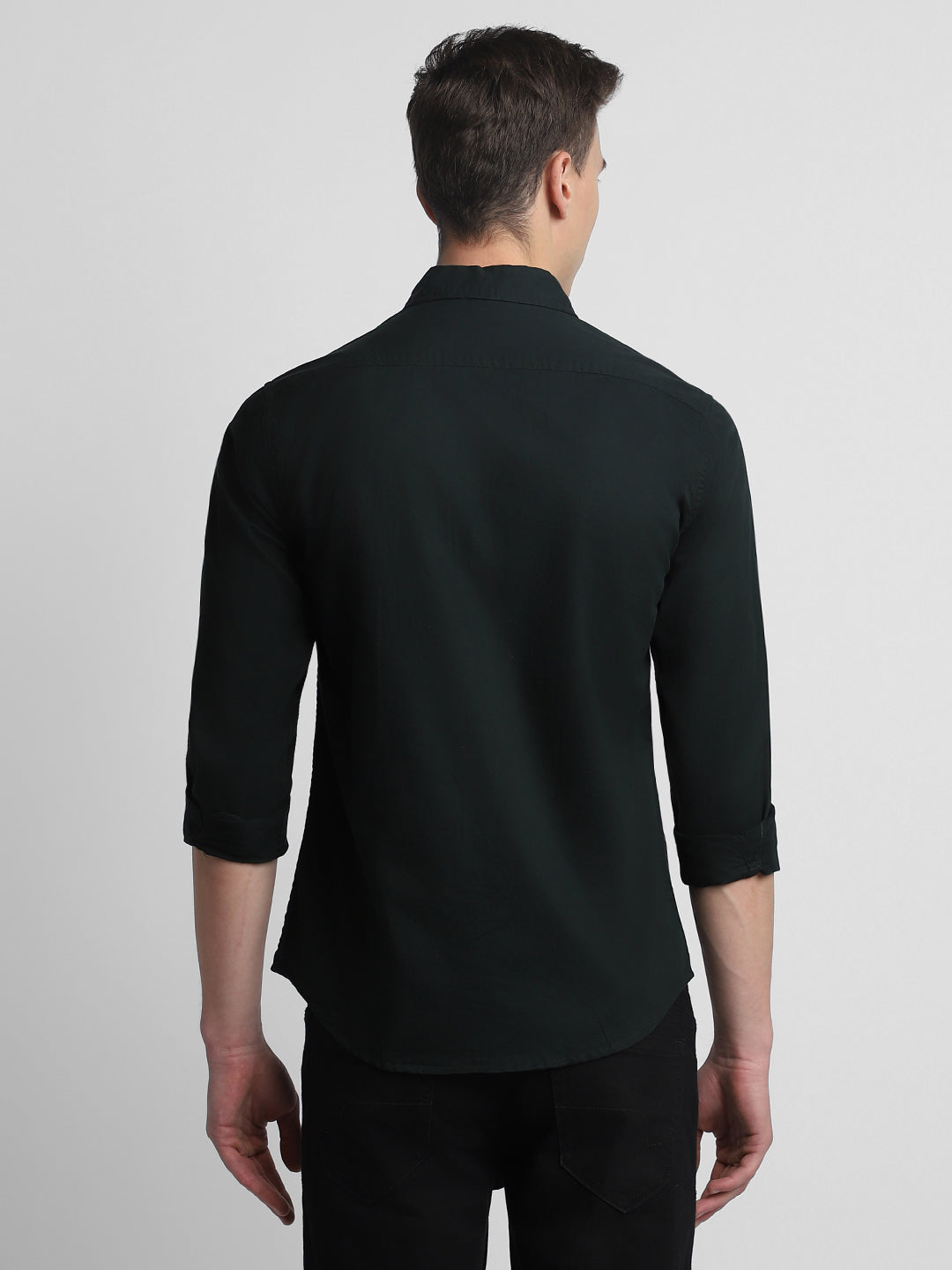 Men's Regular Collar Slim Fit Solid Green Casual Shirt