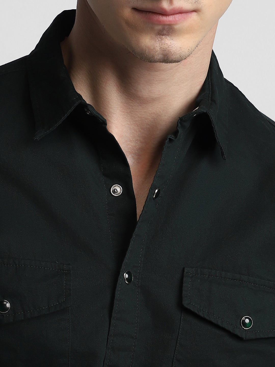 Men's Cotton Solid Black Slim Fit Casual Shirt
