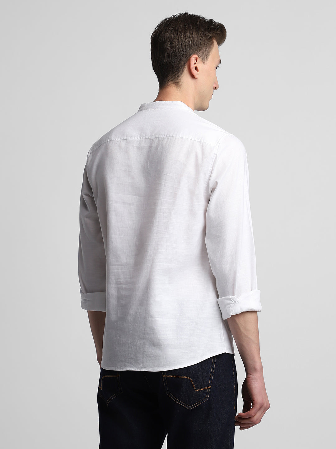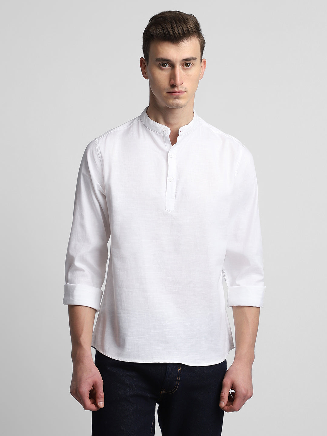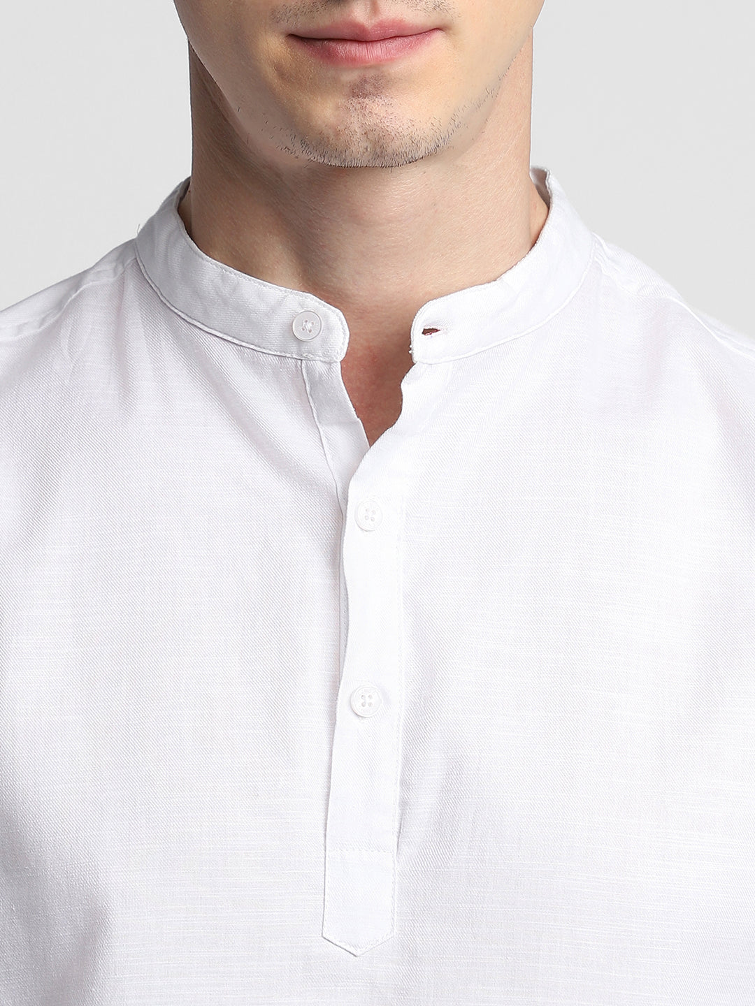Men's Pop Over Mandarin Collar Slim Fit Solid White Casual Shirts
