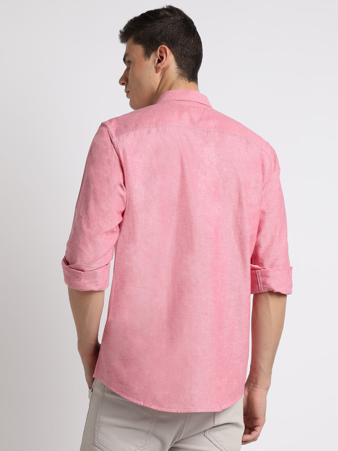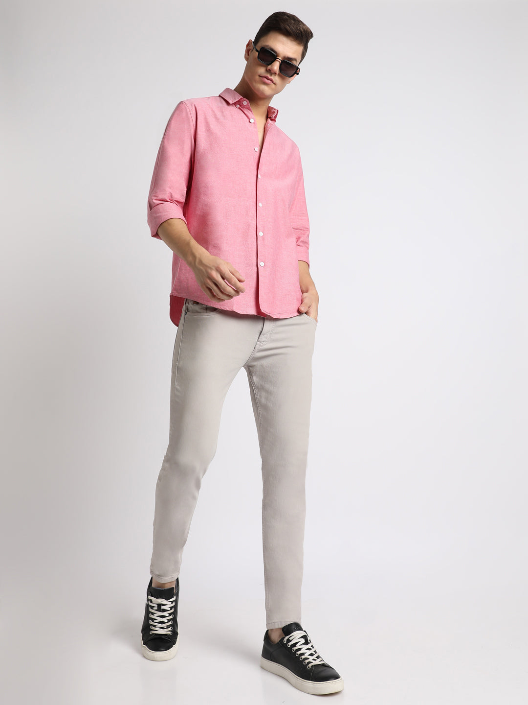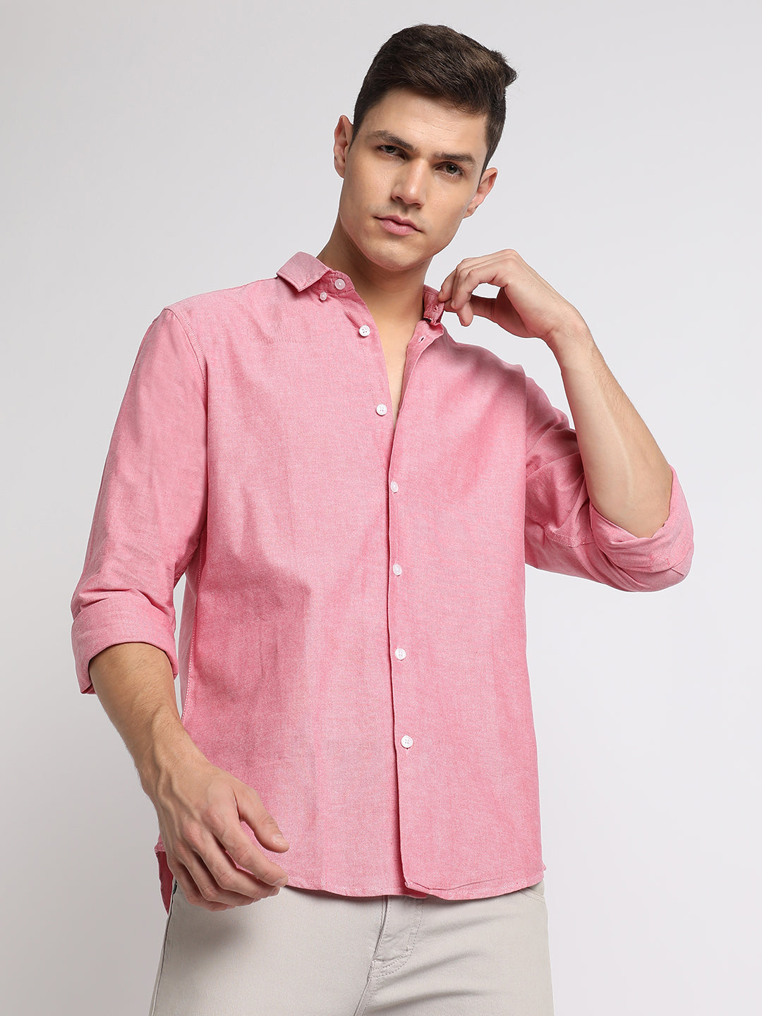 Men's Regular Collar Slim Fit Solid Pink Casual Shirts