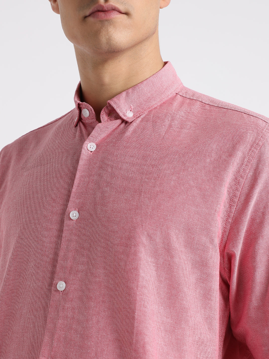 Men's Solid Slim Fit Cotton Oxford Casual Shirt With Button-Down Collar & Full Sleeves