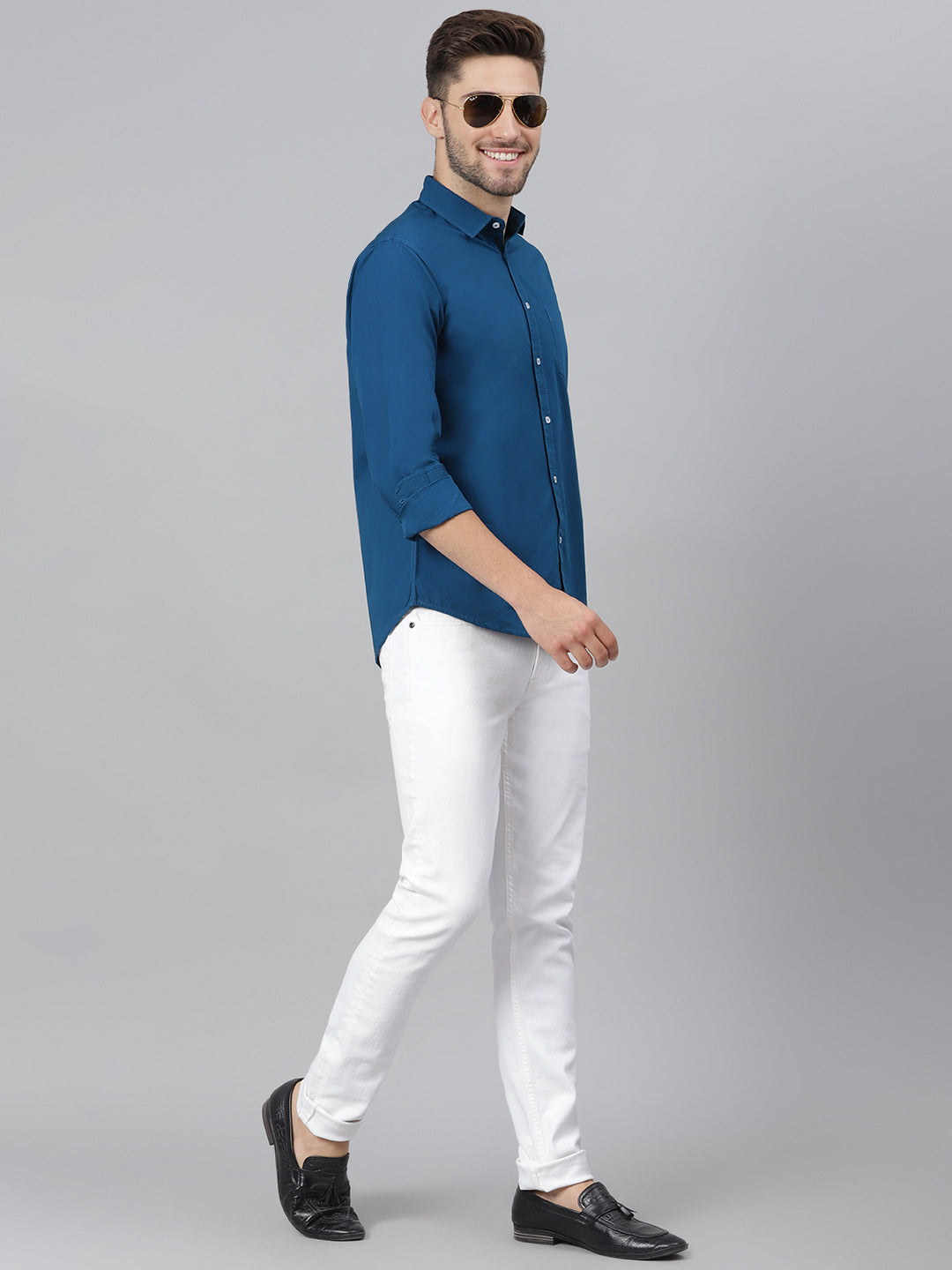 Men's Solid Peacock Slim Fit Cotton Casual Shirt
