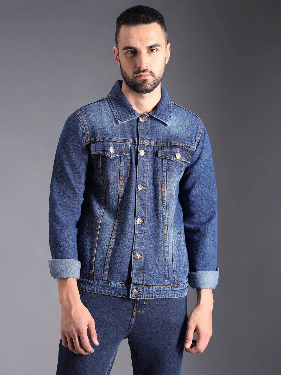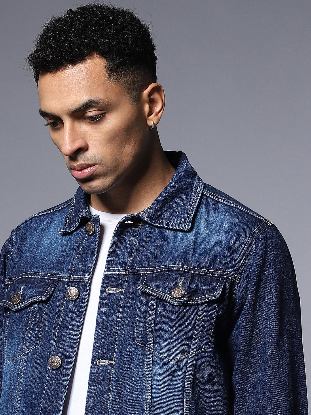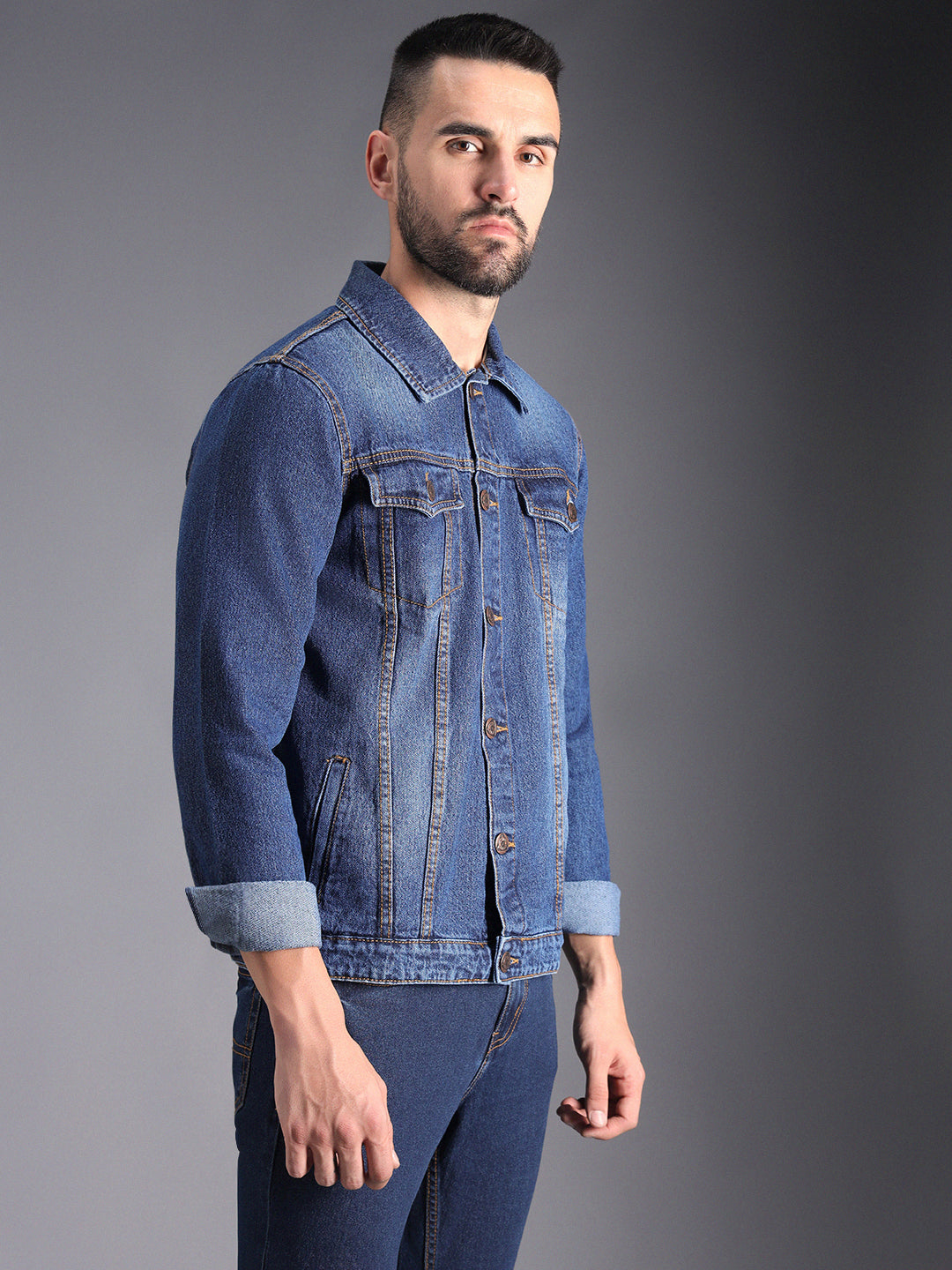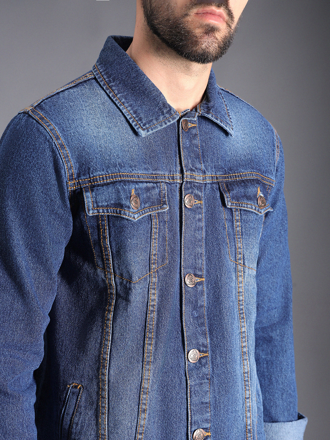 Men's Indigo Washed Regular Fit Fit Collar Full Sleeves Denim Jacket Denim Jacket